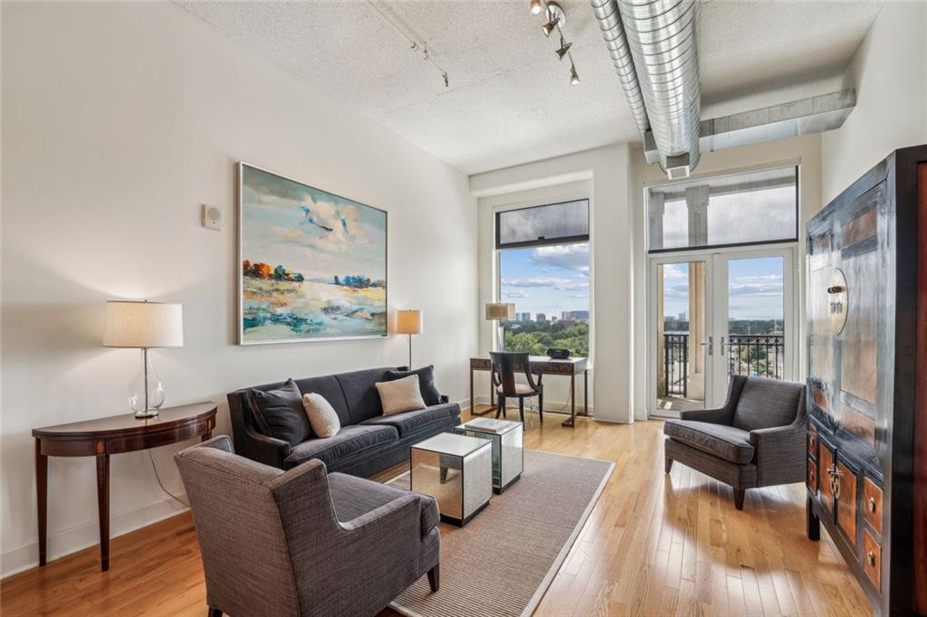 Top floor South facing unit with view of the city conveys with 2 storage units and 3 parking spots!** The storage units are located adjacent to two of the assigned parking spaces. A third parking space is located on the ground level just off the lobby. This rare 10th floor unit, which has never been lived in or rented, has hardwood floors, high ceilings and a large balcony with skyline views of Buckhead and the city. In this floor plan, the kitchen with a brand new Bosch dishwasher and separate large pantry, opens to the living and dining areas. All appliances including refrigerator, oven, cooktop vent hood and washer and dryer remain. The bedroom has new carpet and bathroom has double vanities, garden soaking tub and separate shower. The guest powder room can be closed off from the primary bath. The View at Chastain has amenities including: 24-hour concierge and gated parking garage for safely, grand lobby and community room with media and catering area, fully equipped fitness center, sauna, pool and grilling area. Guest parking is located along the north side of the building. This building is FHA approved and investors are welcomed. The View at Chastain is just steps away from restaurants, bars and shops and has Chastain Park just around the corner. See this stunning unit today! **Parking spaces are #43G, off the main lobby and #52 and #65 on level P1. Storage units are #106A and #106D also located on level P1. As these parking spaces and storage units are considered limited common areas/elements, once Buyer owns property, Buyer may sell one or more parking spaces or storage units to other unit owners.