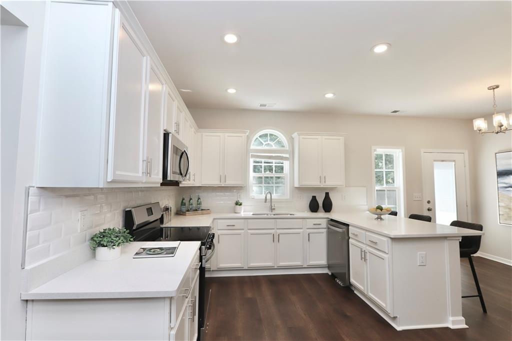 - KitchenBreakfast Bar, Breakfast Room, Cabinets White, Eat-in Kitchen, Kitchen Island, Pantry, Pantry Walk-In, Stone Counters