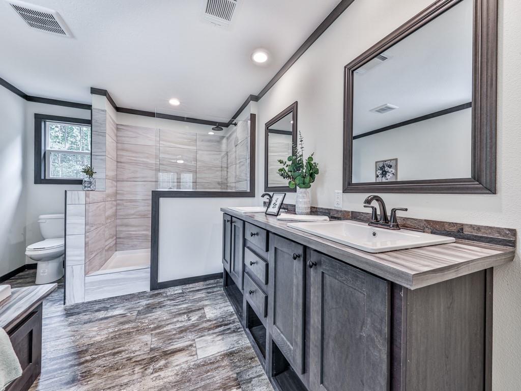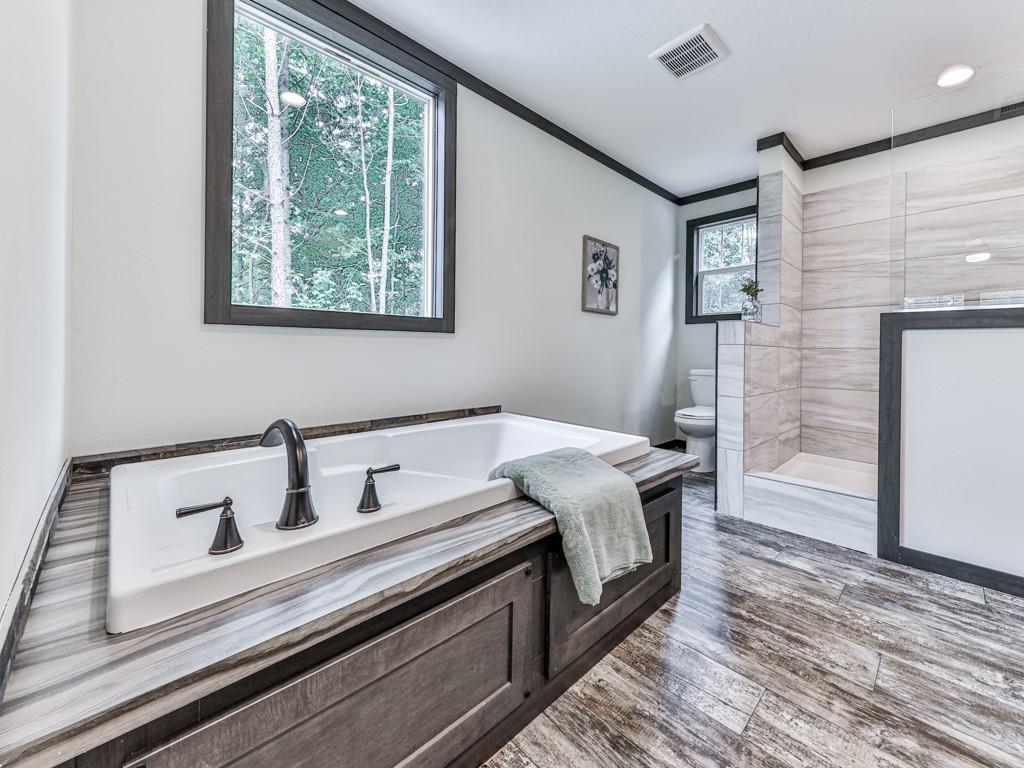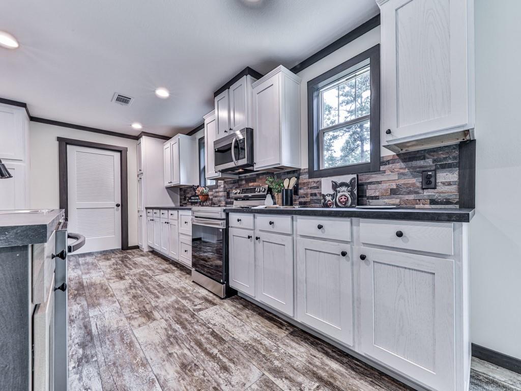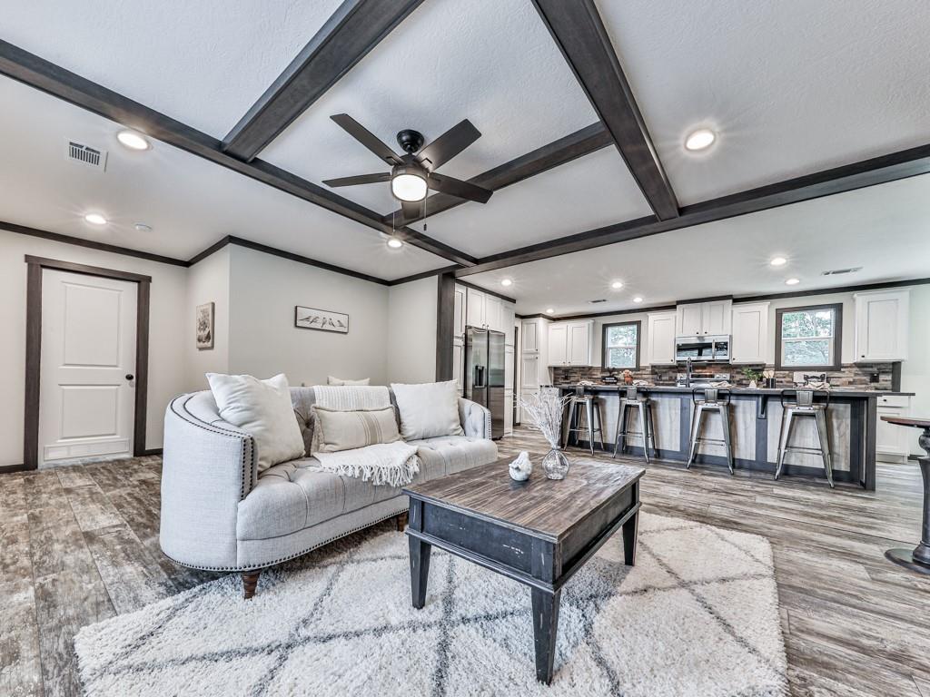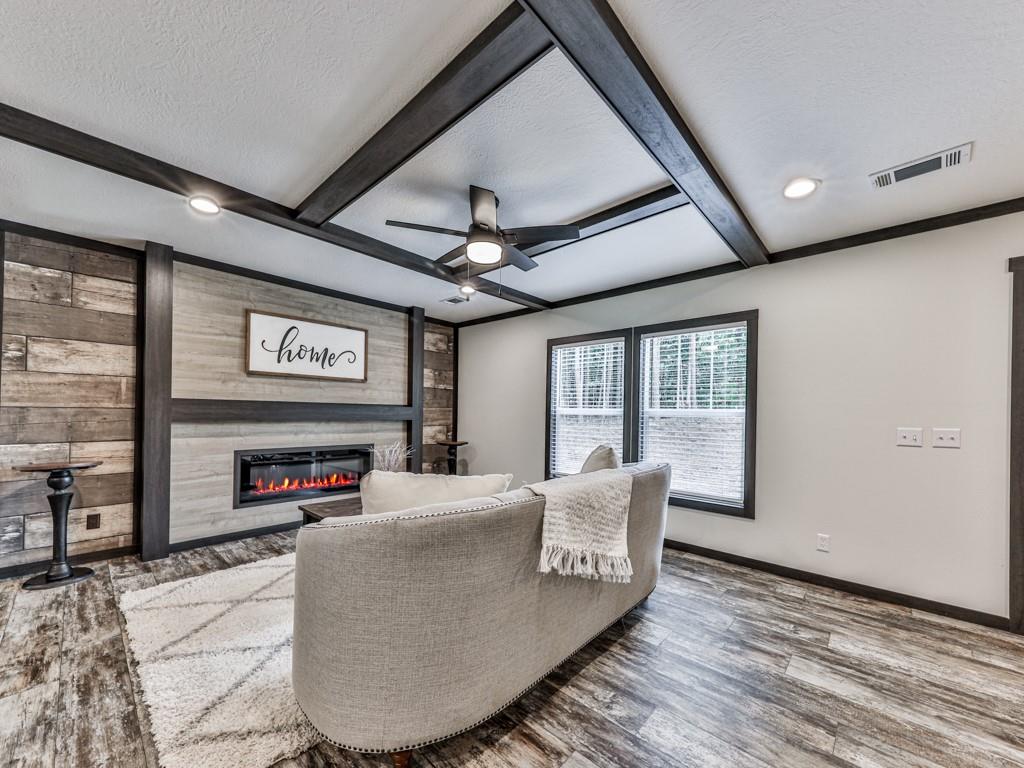 Brand new 2025 3-bedroom, 2-bath home on 1.5 acres—move-in ready! This manufactured home offers the quality and comfort of a stick-built home at an affordable price. Open layout with beamed ceiling, fireplace, and spacious kitchen/living/dining area. Primary suite features soaking tub, tiled shower, and dual vanities. Stainless steel appliances, thermal pane windows, 2x6 walls, and crown molding throughout. Built on a full foundation with retired title—qualifies for traditional financing and taxed as real estate. Just 3 miles from Hwy 515 in Jasper. No HOA!