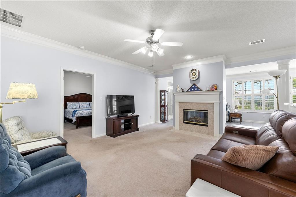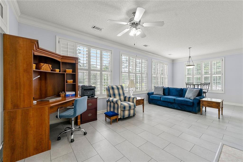 Discover this exceptional home in the prestigious 55+ community of Reflections at Mirror Lake, perfectly situated on the 14th hole of the lake course. Enjoy a spacious open floor plan with captivating golf course views from the sunroom. The HOA meticulously maintains the property with services including landscaping, pruning, grass cutting, pine straw, fertilizing and annual pressure washing. This home features 3 bedrooms, 2 full baths, an office, an open living area flowing into the kitchen, a dining room and a sunroom spanning the rear of the home. Additional features include a built in microwave, pantry, walk in closet and a split bedroom plan. Homes in this highly sought after community are rarely available. Don't miss out- schedule your showing today.