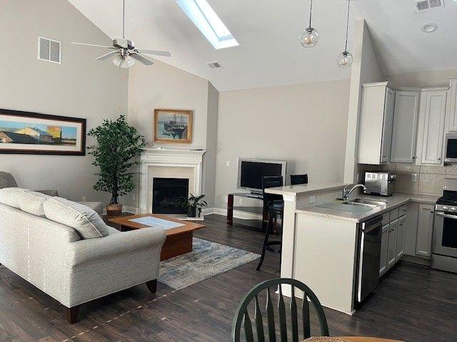 - AppliancesDishwasher, Disposal, Dryer, Refrigerator, Microwave, Self Cleaning Oven, Washer, Gas Range