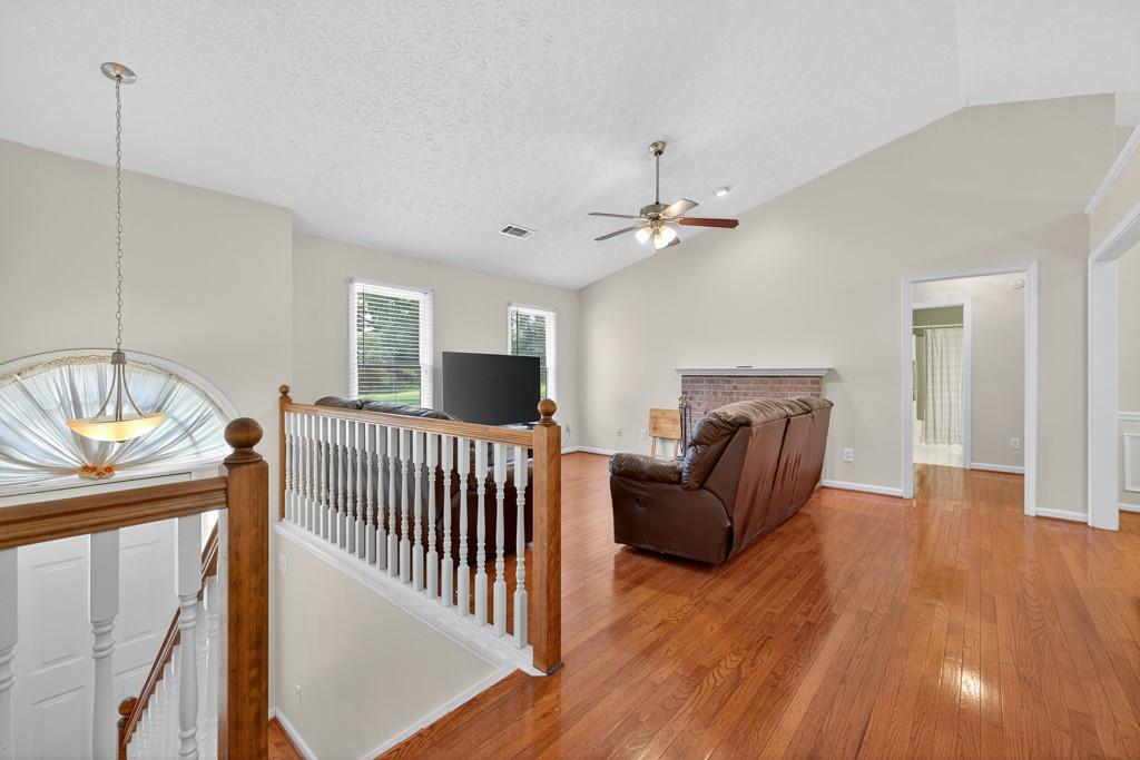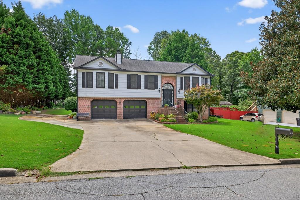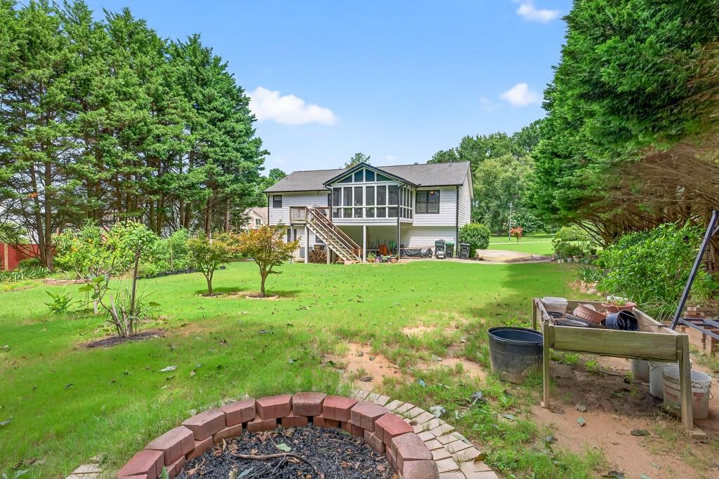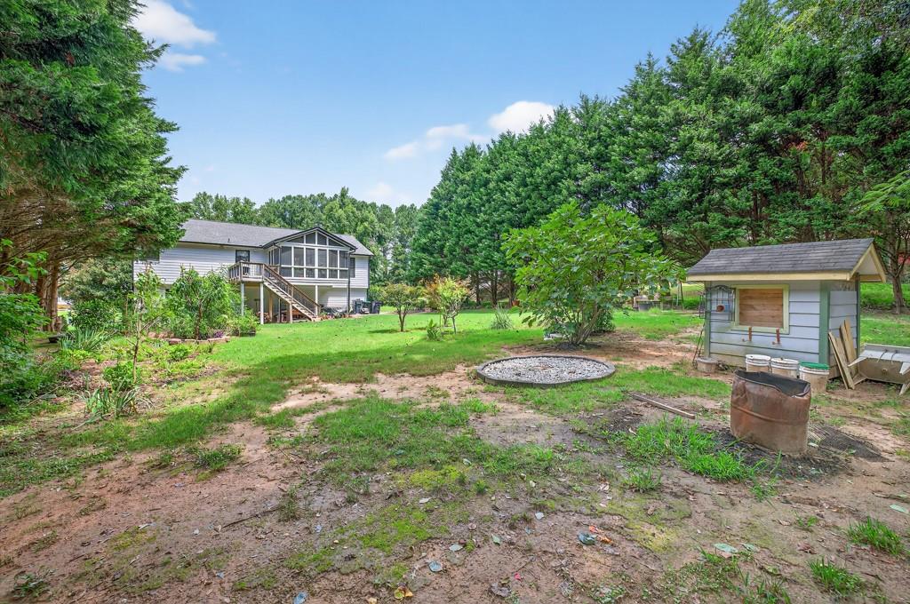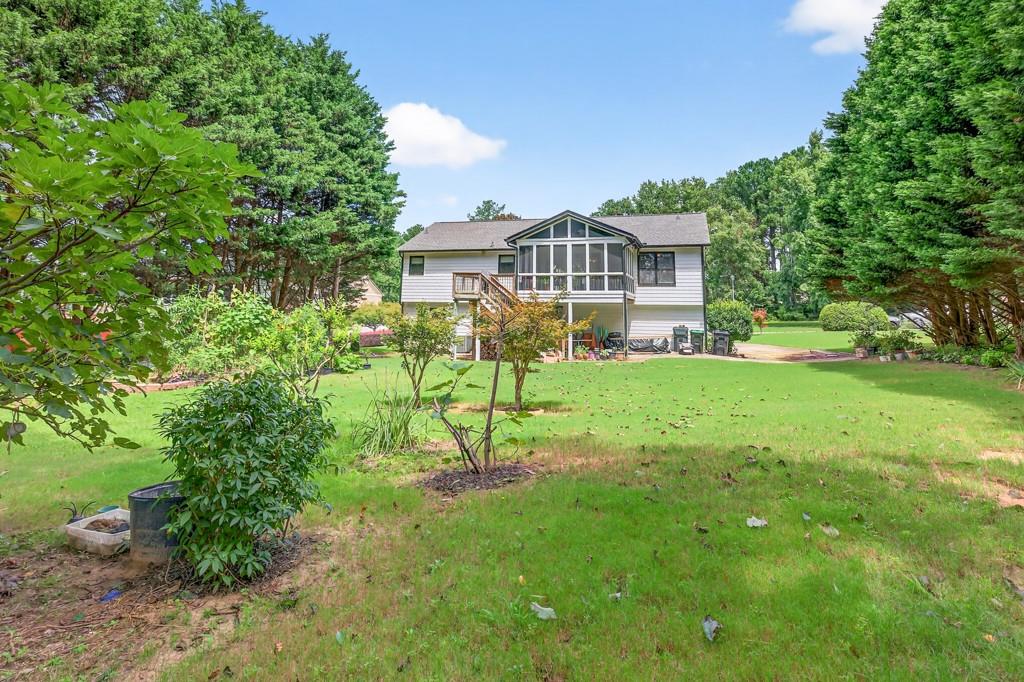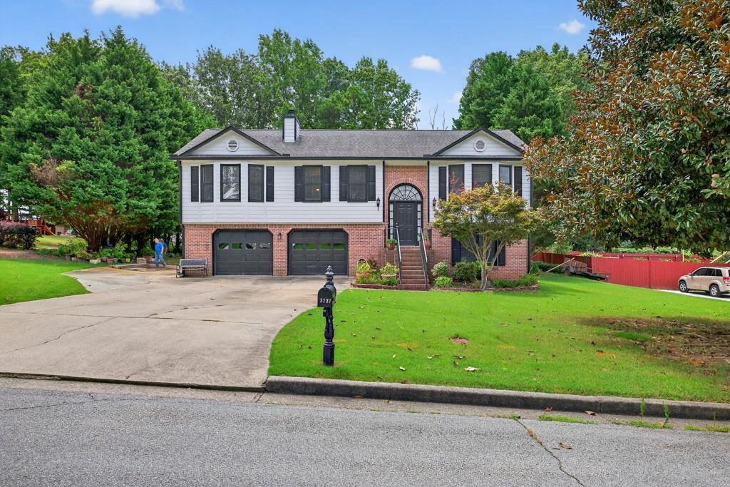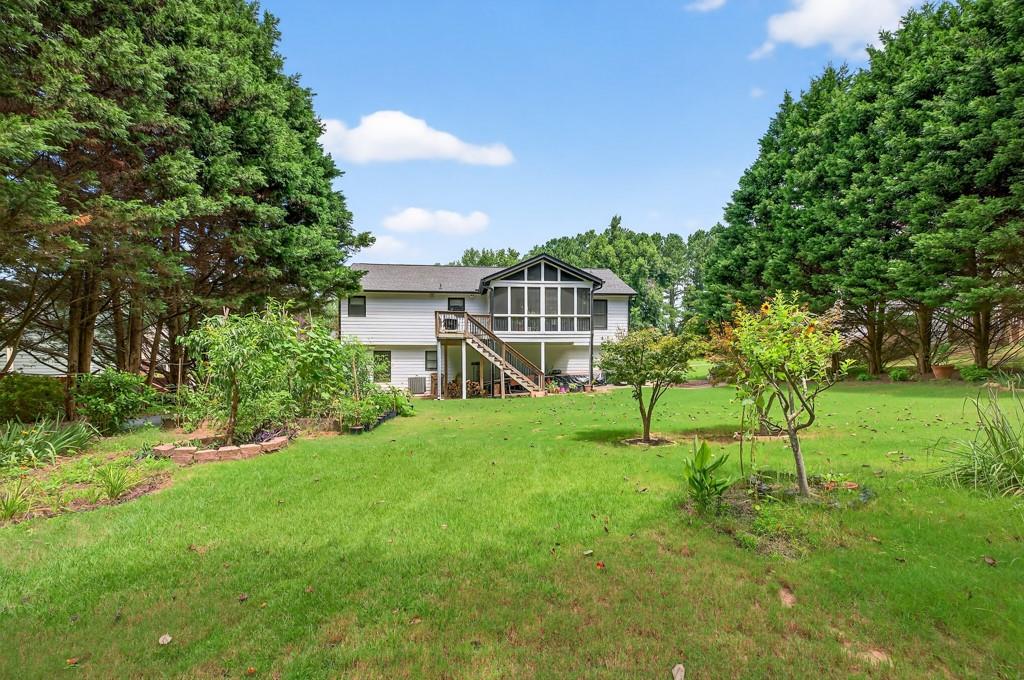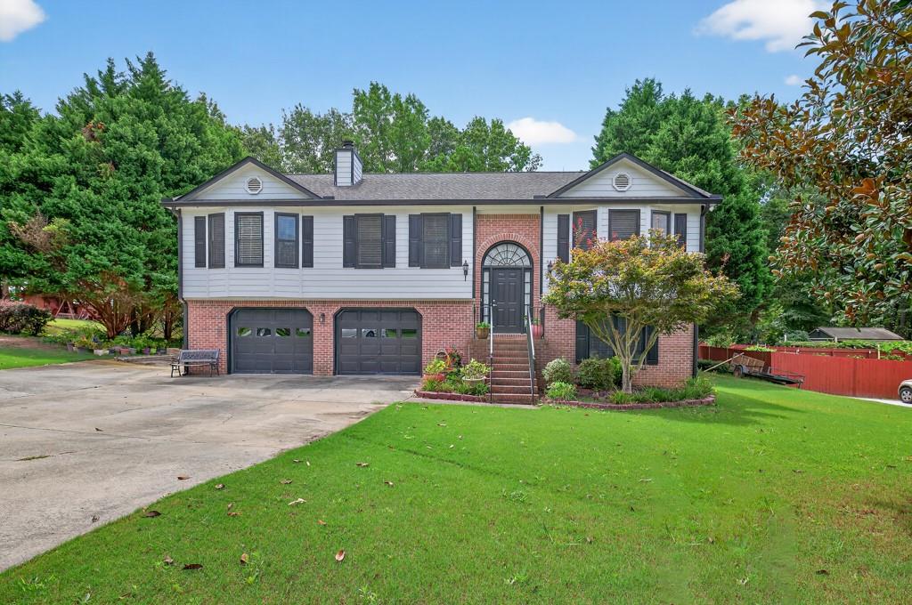 100% financing available. Just 4 minutes to 85. 4 bedroom, 3 bath split-level on almost a half acre in Seckinger High School district, Ivy Creek elementary. Hardwoods upstairs and downstairs. Split bedroom plan upstairs with bedroom, bath and bonus room downstairs. Kitchen with Granite countertops, breakfast bar, pantry. The kitchen cabinets are Shaker with a lazy susan and self-closing drawers. 12 x 16 screened porch. refrigerator, washer and dryer all convey with the property. Oversized laundry room with sink, oversized garage with double doors and garage door openers. there is a parking pad for your RV or extra vehicle. Homeowner has loved this home. The interior is well maintained and the exterior is amazing, check out the photos. Beautiful tree in front yard and the back yard looks like a park with a fire pit area and garden areas. Large amount of Oak Firewood remains with the home.
