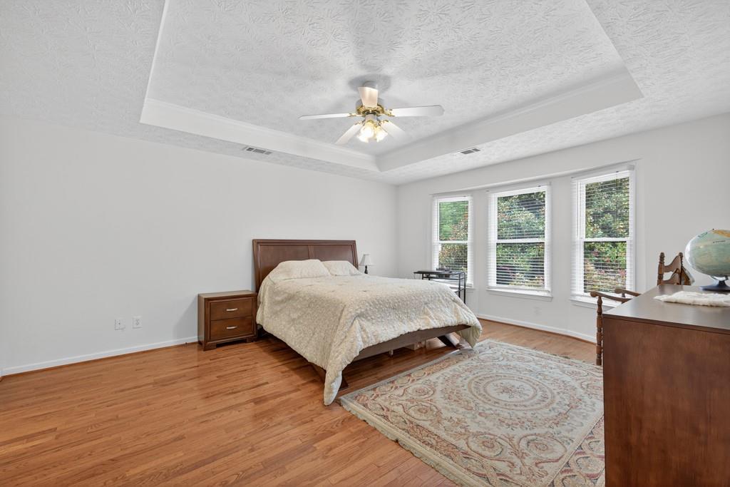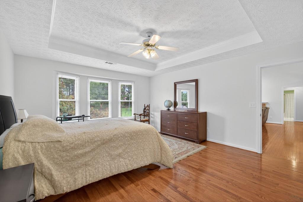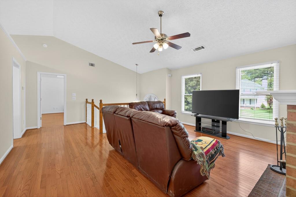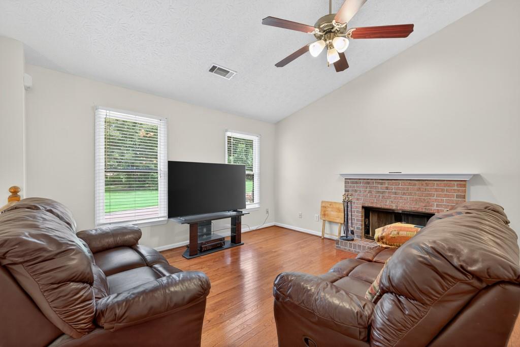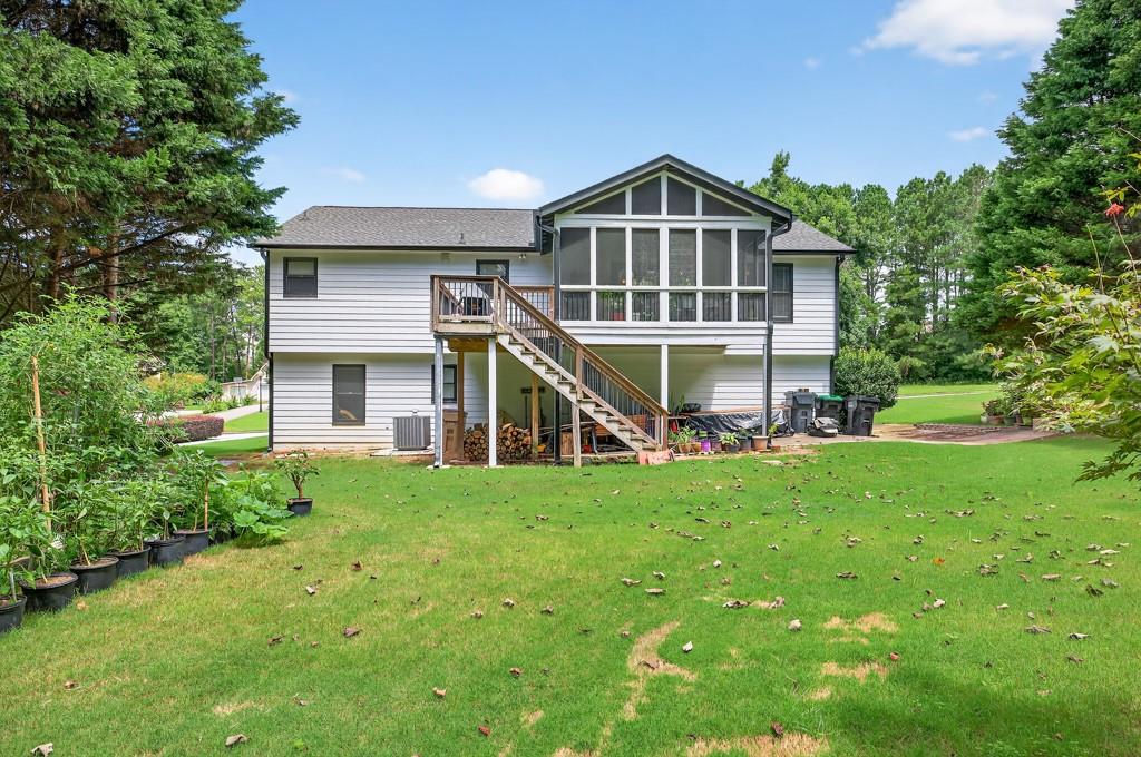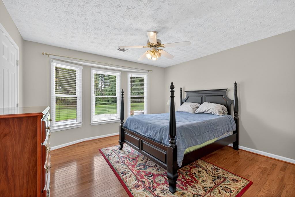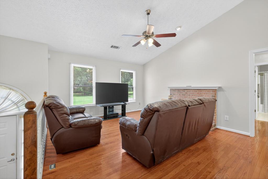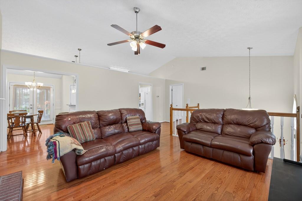 100% financing available. Just 4 minutes to 85. 4 bedroom, 3 bath split-level on almost a half acre in Seckinger High School district, Ivy Creek elementary. Hardwoods upstairs and downstairs. Split bedroom plan upstairs with bedroom, bath and bonus room downstairs. Kitchen with Granite countertops, breakfast bar, pantry. The kitchen cabinets are Shaker with a lazy susan and self-closing drawers. 12 x 16 screened porch. refrigerator, washer and dryer all convey with the property. Oversized laundry room with sink, oversized garage with double doors and garage door openers. there is a parking pad for your RV or extra vehicle. Homeowner has loved this home. The interior is well maintained and the exterior is amazing, check out the photos. Beautiful tree in front yard and the back yard looks like a park with a fire pit area and garden areas. Large amount of Oak Firewood remains with the home.