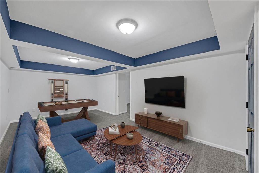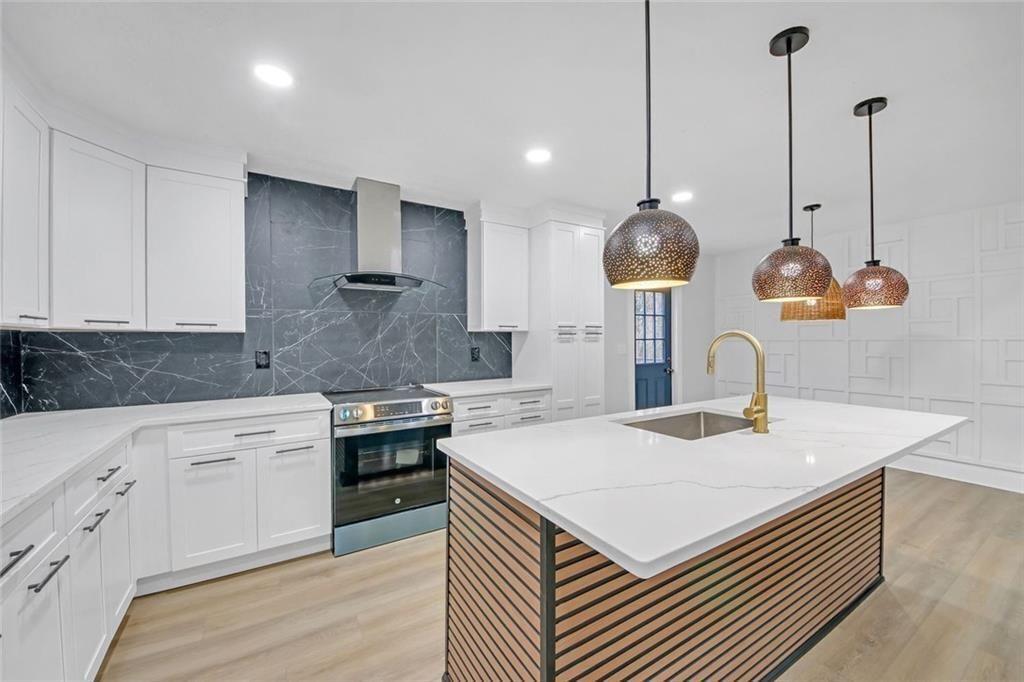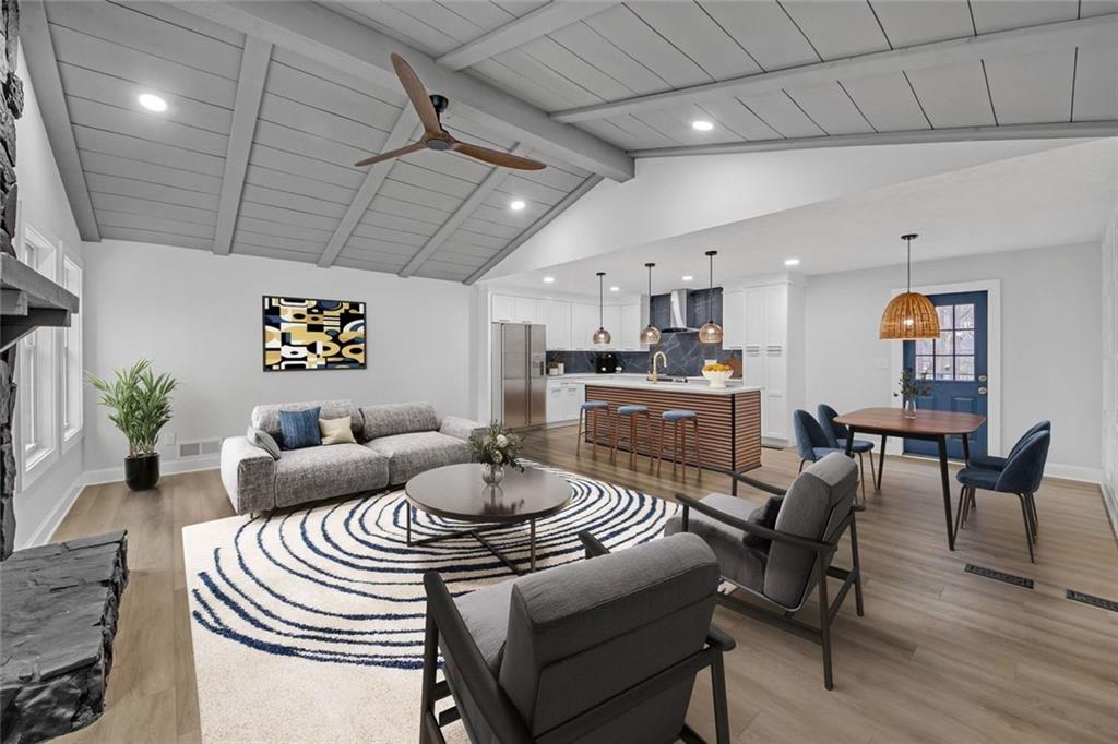 Stunning Renovated 3-Bedroom Home with Finished Basement & Many Upgrades Welcome to this beautifully renovated 3-bedroom, 2-bathroom home, where modern elegance meets comfort. Step onto the expansive new front deck and enter the inviting great room, featuring a cathedral-beamed ceiling and an open layout that seamlessly connects to the bright, newly designed kitchen. The kitchen is a chef’s dream, boasting new white cabinetry, quartz countertops, a stylish backsplash, a large island, and an eat-in dining area with access to the spacious back deck overlooking the back yard —perfect for gatherings and entertaining. Thoughtful upgrades throughout include custom wall trim and new wood flooring, adding warmth and character to the home. The primary suite offers a finished walk-in closet an en-suite bathroom with dual vanities and a walk-in shower with dual shower heads. Two additional spacious bedrooms share a newly updated bathroom featuring double vanities and a quartz shower/tub combo. The finished lower level provides extra living space, including a family room and an additional room with a closet, ideal for a home office, gym, or guest quarters. Easy access to the two car garage with extra storage. Many upgrades include new roof, windows, front deck with supports, flooring, light fixtures and more. This move-in-ready home is a must-see—schedule your showing today!
