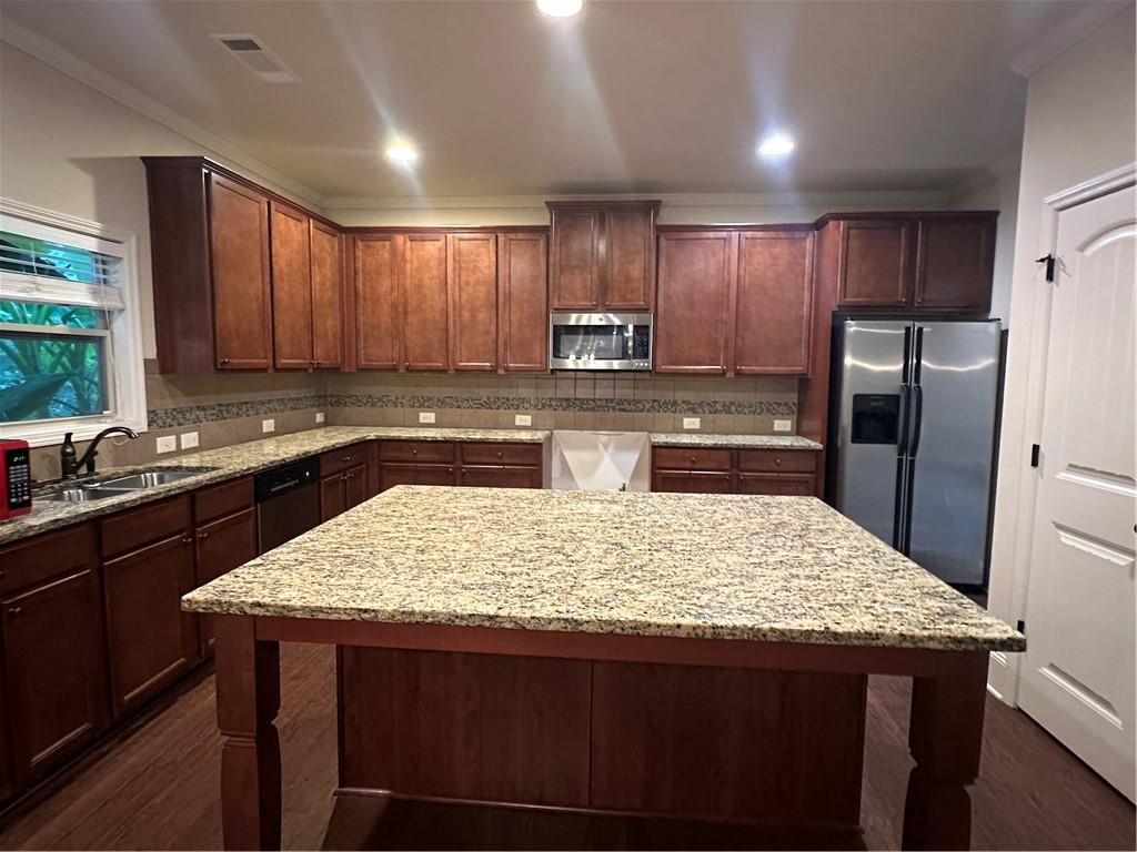 - KitchenBreakfast Bar, Cabinets Stain, Kitchen Island, Other Surface Counters, Pantry, Solid Surface Counters