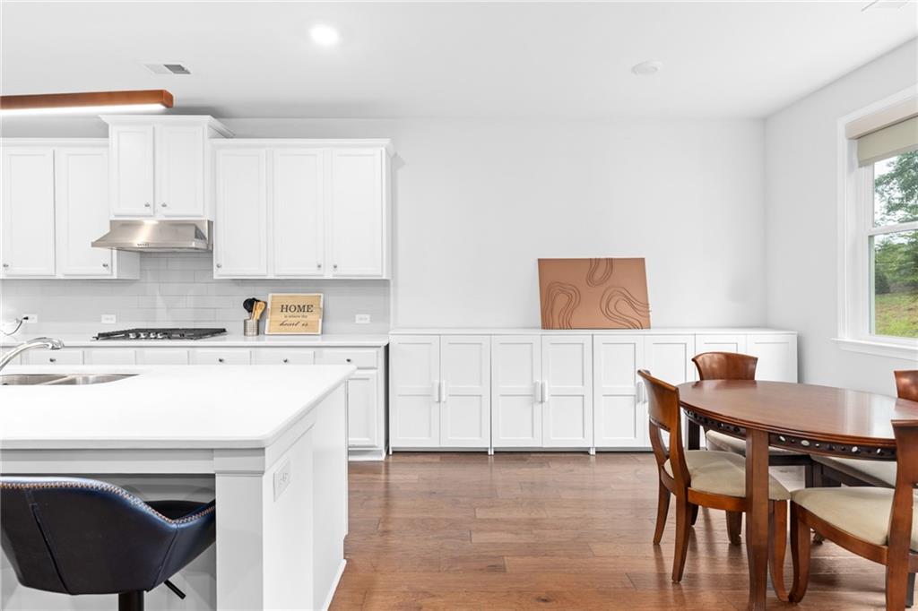 - KitchenBreakfast Bar, Cabinets White, Country Kitchen, Eat-in Kitchen, Kitchen Island, Pantry Walk-In, View to Family Room