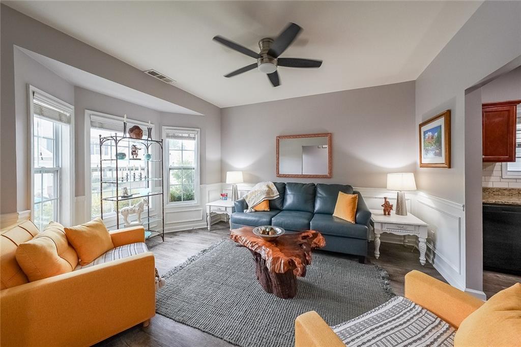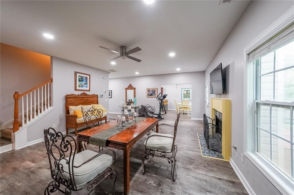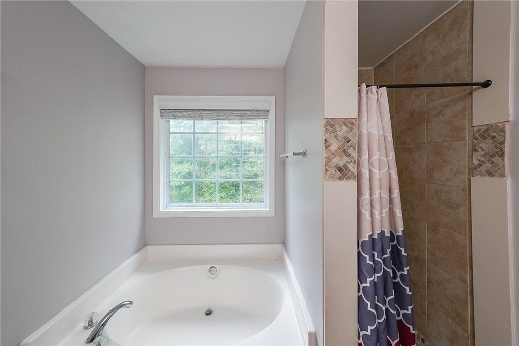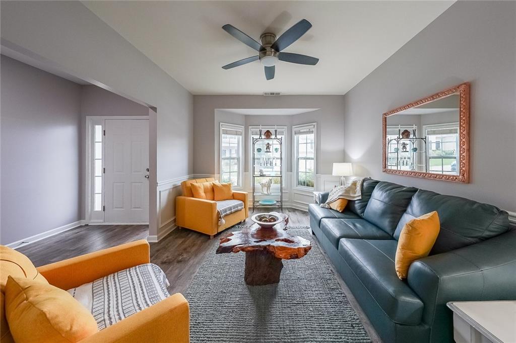 Welcome home to your very spacious, two story traditional with great curb appeal! From the second you walk in you're greeted with light-filled spaces, updated appointments and pride in ownership! The formal living room is on the left upon entry and features bay windows and beautiful wall wainscoting. You'll love the very modern and durable LVP flooring on the first level! Large eat-in kitchen, granite countertops, subway tile backsplash and breakfast bar. All appliances included. Refrigerator new 2023. Gas range/oven new 2025. Huge family room with high ceilings and updated gas/ wood burning fireplace. Half bath on main floor. Huge master suite with tray ceiling and large, separate sitting area. Master bath with separate tub and shower and large master walk-in closet. Spacious secondary bedrooms, one with a sitting area and charming partial dormer ceiling. Separate full bath with tub/shower combination and linen closet. Laundry room with washer and dryer new 2023. Backyard lined with full backdrop of lush trees provide natural privacy and beauty. New patio door 2025. HVAC and fully replaced roof with upgraded shingles 2025, both with transferrable warranties. Put this one at the top of your list!