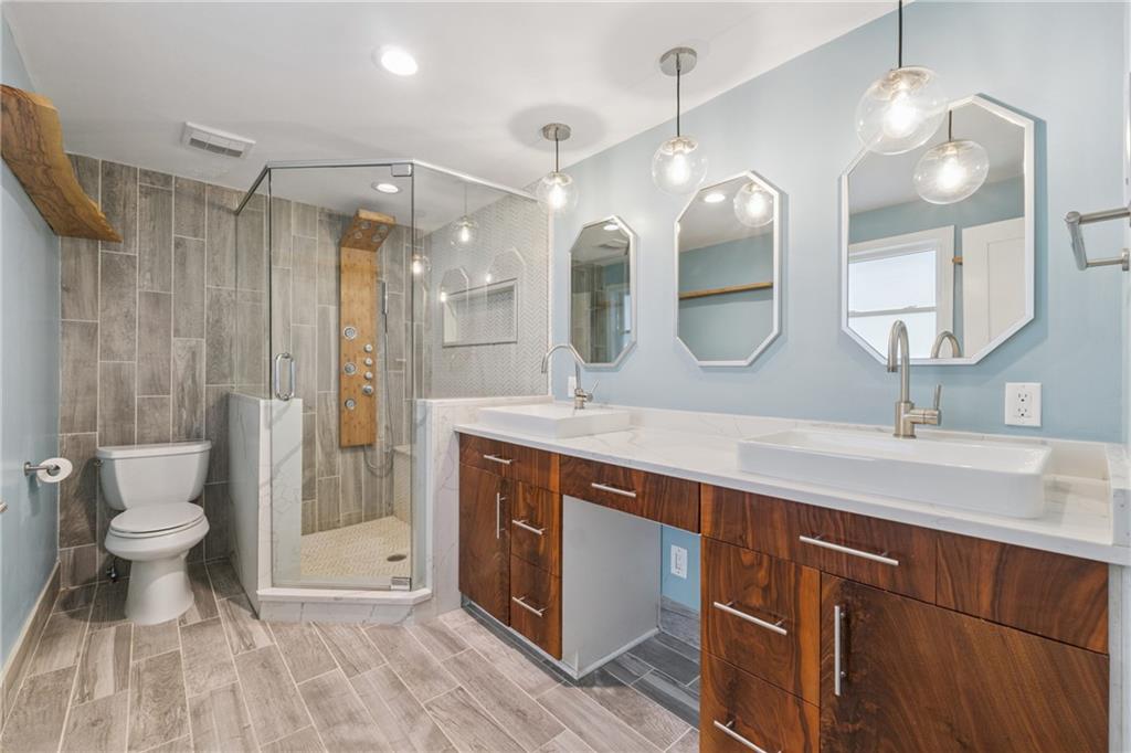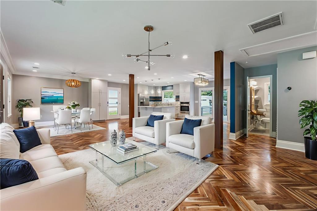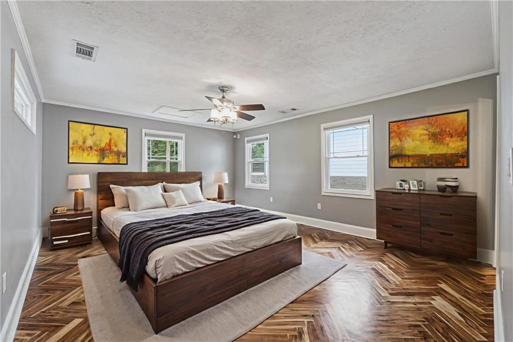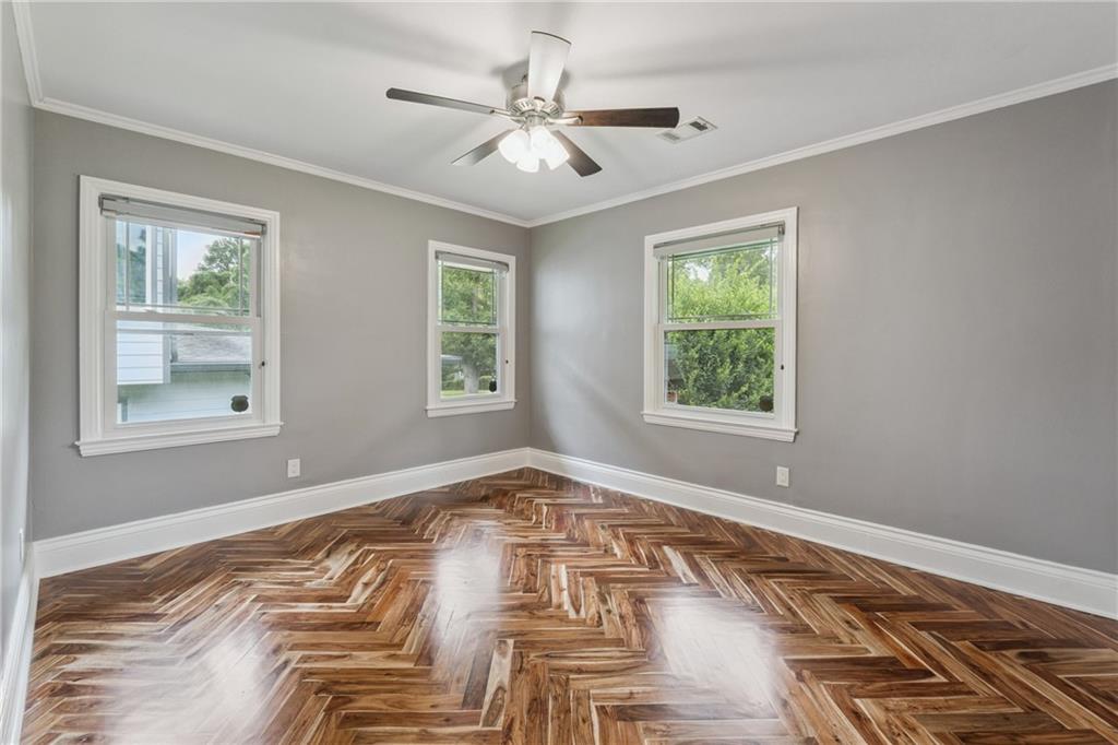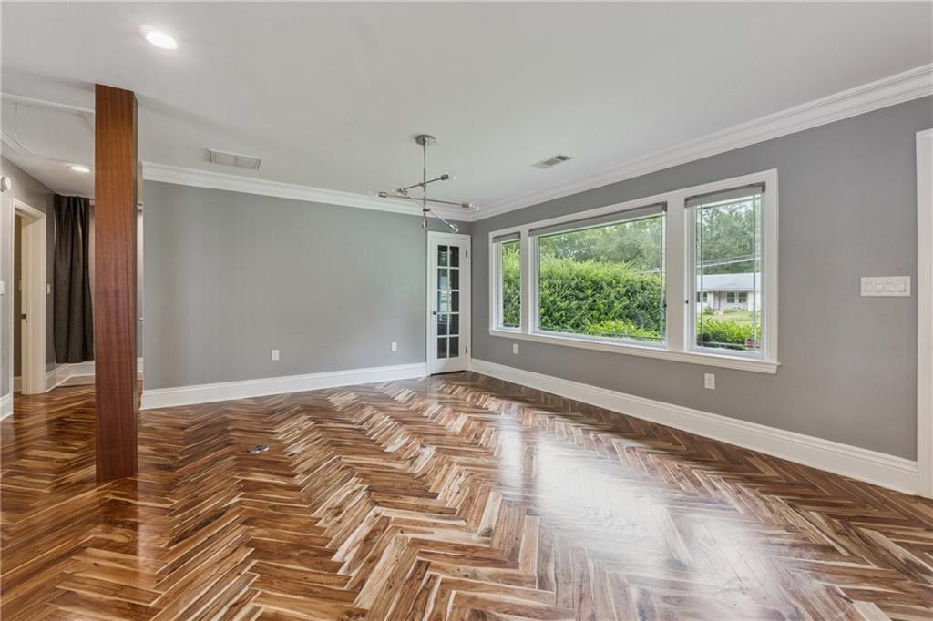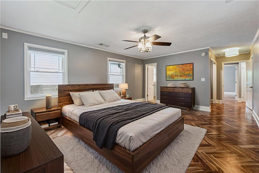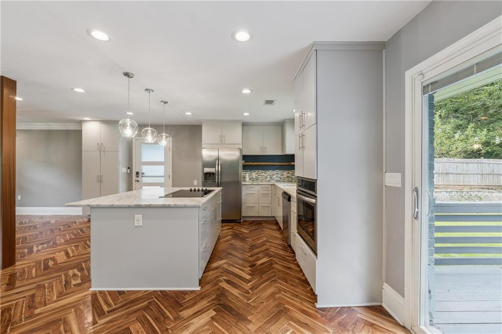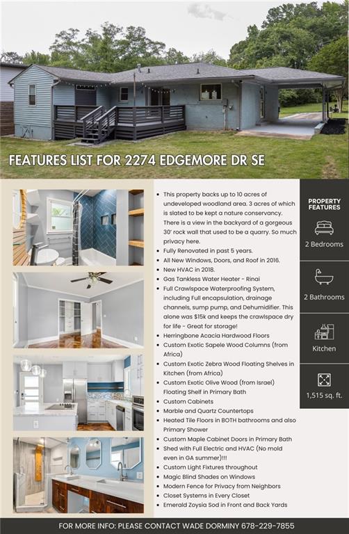 Tucked away on the peaceful edge of a 10-acre woodland reserve—just three-quarters of a mile from the heart of East Atlanta Village—this fully renovated mid-century ranch blends city convenience with rare, natural privacy. Behind the home, a stunning 30-foot rock wall from a former quarry creates a breathtaking backdrop, while 3 acres of the surrounding greenspace are protected as a permanent nature conservancy. Inside, nearly every detail has been thoughtfully upgraded over the past five years. The custom kitchen showcases exotic zebra wood floating shelves, rich custom cabinetry, and marble and quartz countertops. Both bathrooms are beautifully updated with heated tile floors, custom maple cabinet doors, and a floating olive wood shelf. The primary bath adds a spa-like touch with a heated shower floor. Throughout the home, herringbone-patterned acacia hardwood floors elevate the mid-century aesthetic, complemented by custom sapele wood columns and designer lighting. Major system updates—including new windows and doors with integrated Magic Blind Shades (2016), a new roof (2016), HVAC (2018), and a gas tankless water heater—offer true peace of mind. A professionally installed crawlspace waterproofing system completed with encapsulation, drainage channels, sump pump and dehumidifier, ensures a clean, dry, and usable storage area year-round. Outside, lush emerald zoysia sod frames the front and back yards, while a climate-controlled outbuilding provides the perfect workshop, studio, or additional storage space. With closet systems in every room, modern privacy fencing, and an unbeatable location near East Atlanta Village, Glenwood Park, and the BeltLine, this home delivers both lifestyle and longevity. Schedule your showing today and experience one of East Atlanta’s most unique and well-maintained properties.