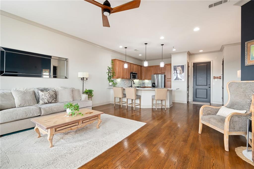 Woodstock Downtown Money Magazine voted TOP 50th Town to Live!!! Walkable to the best Restaurants, City Parks, Greenprint Trials, Boutiques, Shopping, Farmers Market, Elm Streets Art, New Amphitheater and much more. Stunning 1 Bedroom, 1 Full Bath (ON THE 4TH FLOOR -NO ONE ABOVE YOU) - BEATUIFUL Views off you oversized balcony - Open Floorplan- Master Bath with Soaking Tub and Shower. Gated Covered Parking Spot!!! THIS ONE WILL NOT LAST!!!!