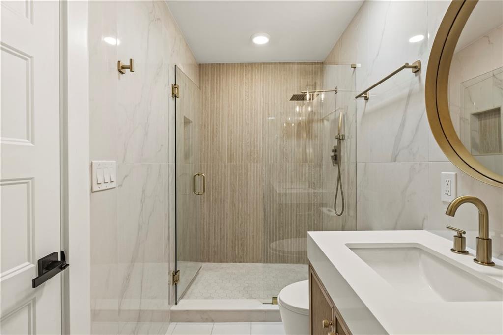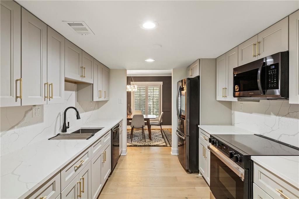 Welcome to your modern oasis in the heart of Buckhead! This stunning townhouse boasts three well-appointed bedrooms and three luxurious bathrooms, offering plush living with an elegant touch. Revel in the impressive updates and meticulous details that have transformed each space, ensuring top-tier comfort and style. Step into the expansive primary bedroom suite, a true retreat featuring walls clad entirely in tile for a splash of sophistication. The secondary bathrooms mirror this attention to detail, exuding unmatched luxury. The wide-plank rustic engineered hardwood floors throughout create a warm, inviting atmosphere, leading you into the remodeled kitchen. Here, no expense has been spared; from the countertops that gracefully flow up as backsplashes to the high-end appliances, meal preparation is both a pleasure and a statement. Entertain or unwind on your private patio bordered by serene woods, providing a tranquil backdrop to your urban living. Enjoy the warmth and charm of the custom stone floor-to-ceiling fireplace—an ideal spot for cozy gatherings or peaceful solitary moments. Storage is plentiful with large rooms filled with ample closet space to accommodate your every need. Custom handrails add a subtle, yet elegant, finishing touch to this impeccably designed home. Venture out and you’ll find yourself seconds away from eateries like Bartaco, satisfying any craving with ease. Plus, with a grocery superstar like Publix just a stone’s throw away, every convenience is at your fingertips.
