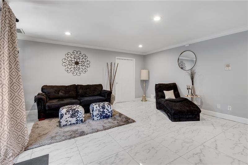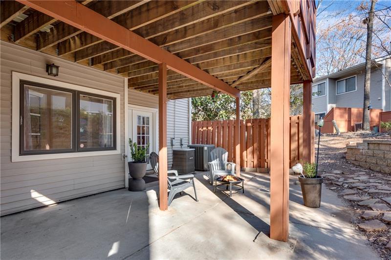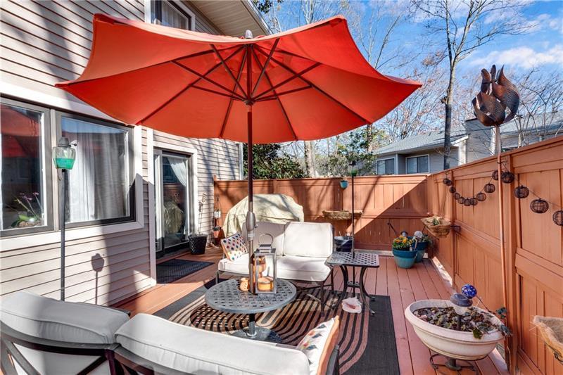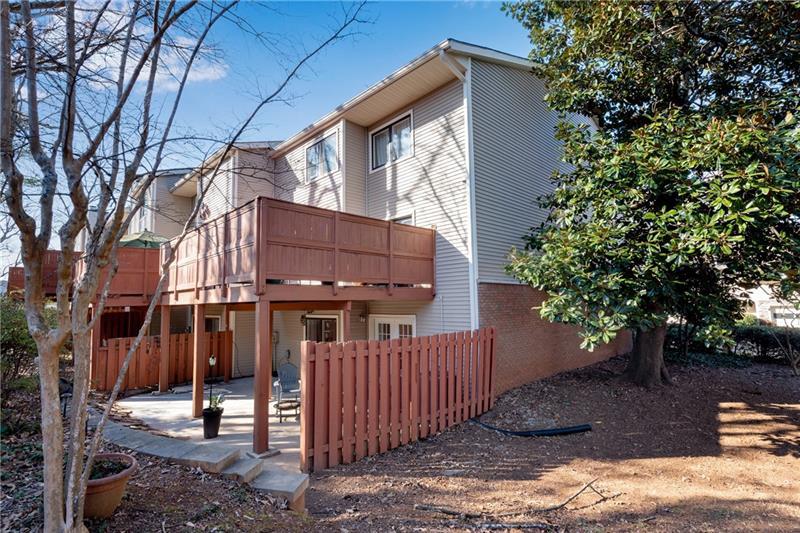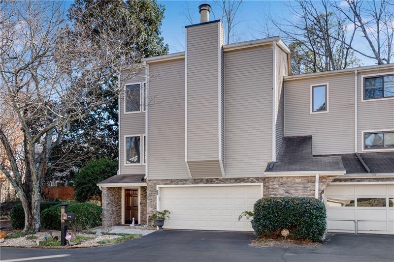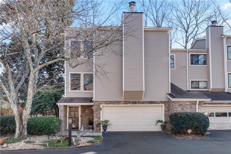 Striking Triple-Level End Unit is the Largest Floorplan in Lakeview! This Transitional Ultra-Chic Executive Residence in pristine, move-in condition. From the Hardwood Floors to the dramatic 3-story Atrium with floating staircase, every detail is refined. Stepless entries from front door & garage lead into the light-filled atrium and an expansive 4th BR/Studio/Media/Flex with Walk-In Closet, Full Tile Bath & Double French Doors leading to a Relaxing Shady Patio ideal for Outdoor Living. Ascend the Spectacular Staircase to the airy Living Rm featuring a Painted Brick FP, Luxe Wood trim, Recessed Lighting & a Seamless Flow into the Dining Rm. The Renovated Chef's Kitchen boasts Newer White Cabinetry with Upgraded Drawer Stacks, Granite Countertops & Stainless Steel Appliances including Built-In Oven/Microwave & Upscale French Door Refrigerator. The adjoining Den opens to an Ultra-Private Oversized Deck perfect for grilling, Alfresco Dining or Happy Hour. On the Upper BR Level, the King-Size Primary Suite offers a Renovated Carrara Marble Bath with a Split Stone Accent Wall behind the Soaking Tub. Two secondary bedrooms share a Stylish White & Gray Marble Bath. A Full-Size Laundry Rm is so convenient. Dunwoody Springs offers pool, tennis, fitness center, private lake & a park. You'll be minutes from everything, yet tucked away in a quiet, well-kept se6tting. Just 1 minute to Cox, Costco & Central Park offices; 2 minutes to Publix, Perimeter Mall & hundreds of shops and restaurants; 3 minutes to hospitals and GA400/I-285. Only 10 minutes to Buckhead & 30 mins to Airport. Low HOA covers many exterior expenses.