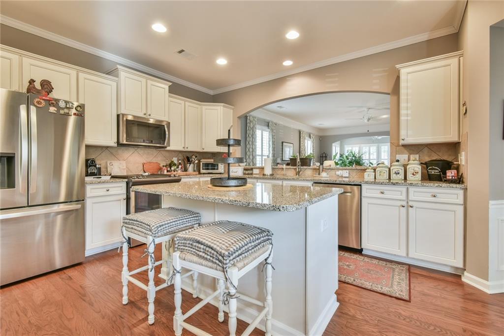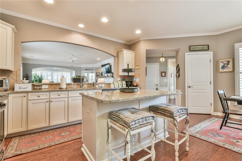 - KitchenBreakfast Bar, Eat-in Kitchen, Kitchen Island, Pantry, Stone Counters, View to Family Room