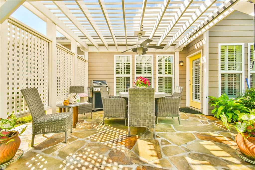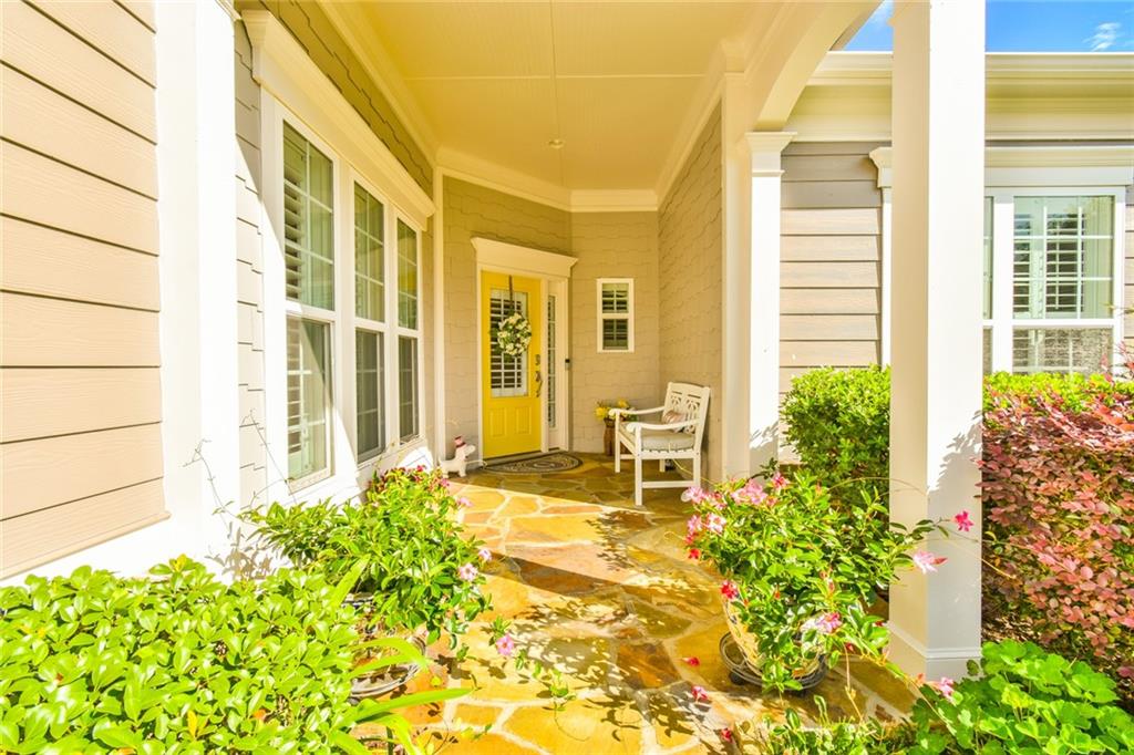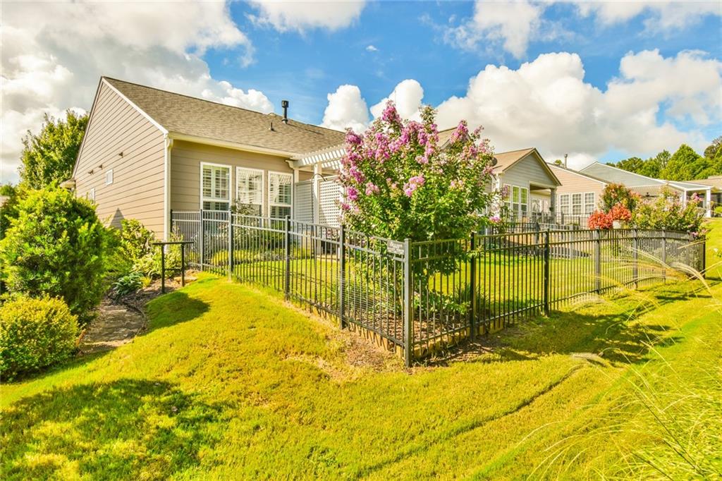 A Happy yellow front door greets you at this Bayberry gem. But that is not the only welcomed surprise - a wonderfully upgraded home with newer roof, HVAC and water heater. This Surrey Crest home is 2 beds and 2 baths with office, sunroom and a fabulous pergola covered patio. If you have a puppy or small grandkids, you might also appreciate the fenced yard! The kitchen is larger than most with an island and space for an 8 person table. The white cabinets throughout is a feature we home you like as much as we do!. Appliances are stainless and newer. The wood floor and fireplace surround have recently been upgraded. This open floorplan is perfect for gathering your family or hosting lively parties. Village at Deaton Creek is a energetic community were neighbors are neighbors and the activities and fun never end. The grounds are spectacular and the amenities are second to none. Please come see this home and discover your new retirement live. You won't be disappointed.