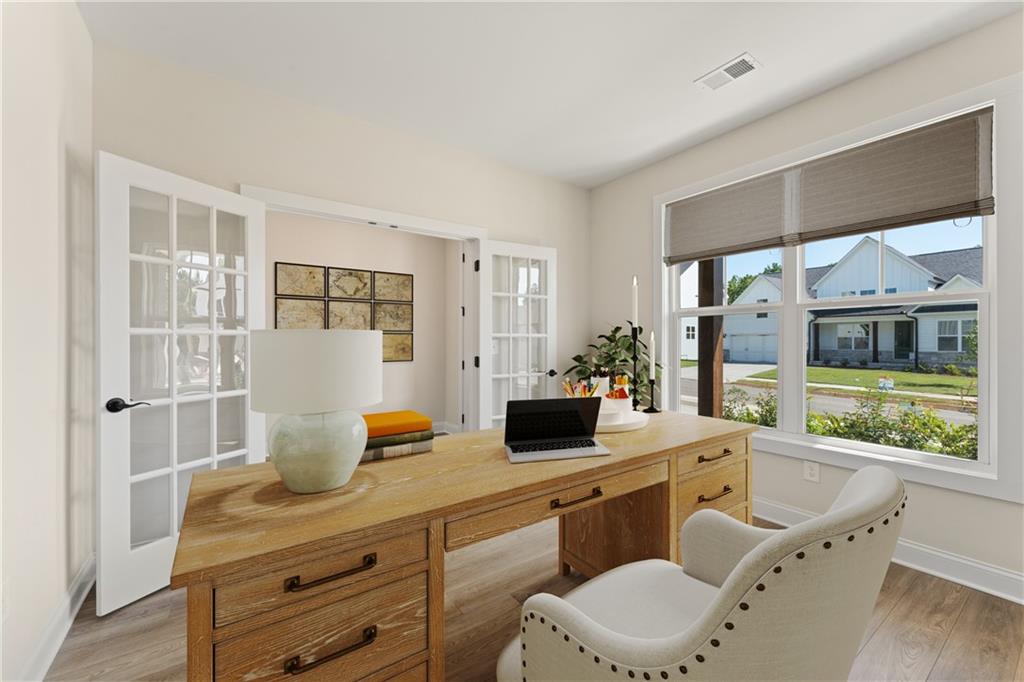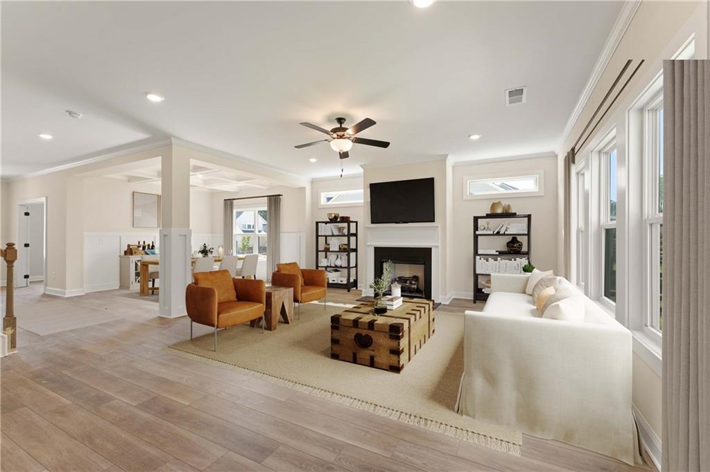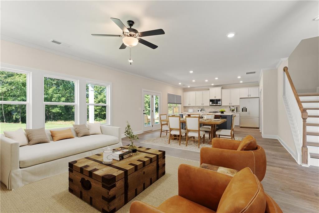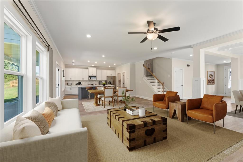 Brand-new Hartwell plan on Lot 1081—move-in ready late Oct/early Nov! This 2-story beauty offers a gourmet kitchen with under-cabinet lighting, stainless appliances, walk-in pantry, butler’s pantry, and a large island flowing into the great room with stone fireplace. Formal dining with coffered ceiling, main-level flex room, no carpet on main or stairs, and wrought iron spindles. Upstairs features a luxurious owner’s suite with spa bath, frameless shower, and walk-in closet, plus guest suite with private bath. Relax on the 10×20 covered patio with optional outdoor fireplace. Life at NatureWalk at Seven Hills in Dallas GA is a nonstop blend of fun, connection, and everyday adventure. Start your morning on wooded nature trails, cool off at the resort style waterpark or Olympic sized pool, challenge friends on the pickleball courts, then wind down at the clubhouse or toss a ball at the dog park. With a playground, sports fields, and a full time activities director planning year round events, this master planned community delivers a vacation inspired lifestyle every day.