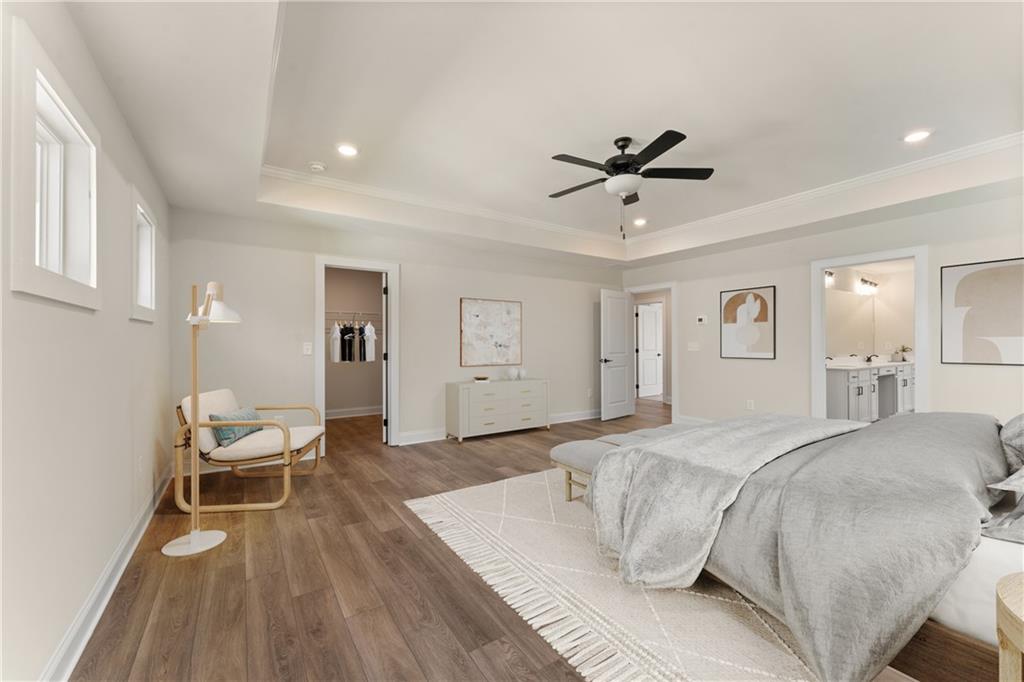 - FeaturesCoffered Ceiling(s), Crown Molding, Disappearing Attic Stairs, Double Vanity, Entrance Foyer, High Ceilings 9 ft Upper, Recessed Lighting, Walk-In Closet(s)