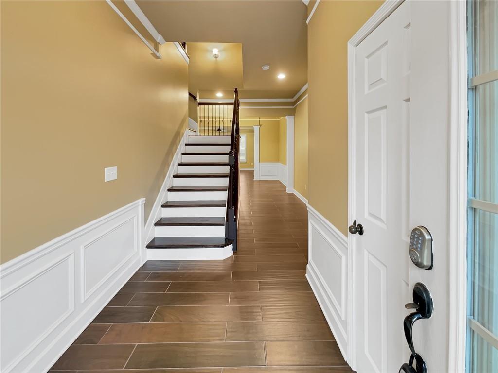 - FeaturesBookcases, Coffered Ceiling(s), Crown Molding, Entrance Foyer, Vaulted Ceiling(s)