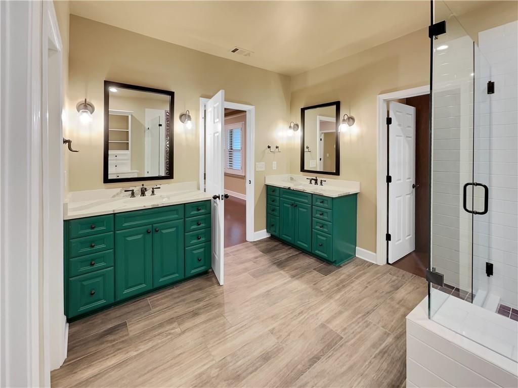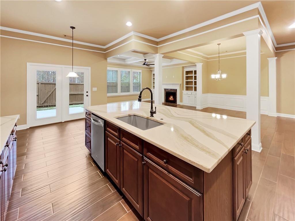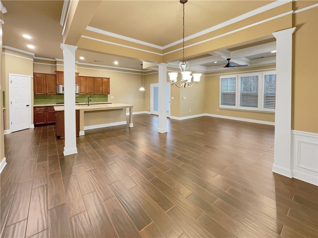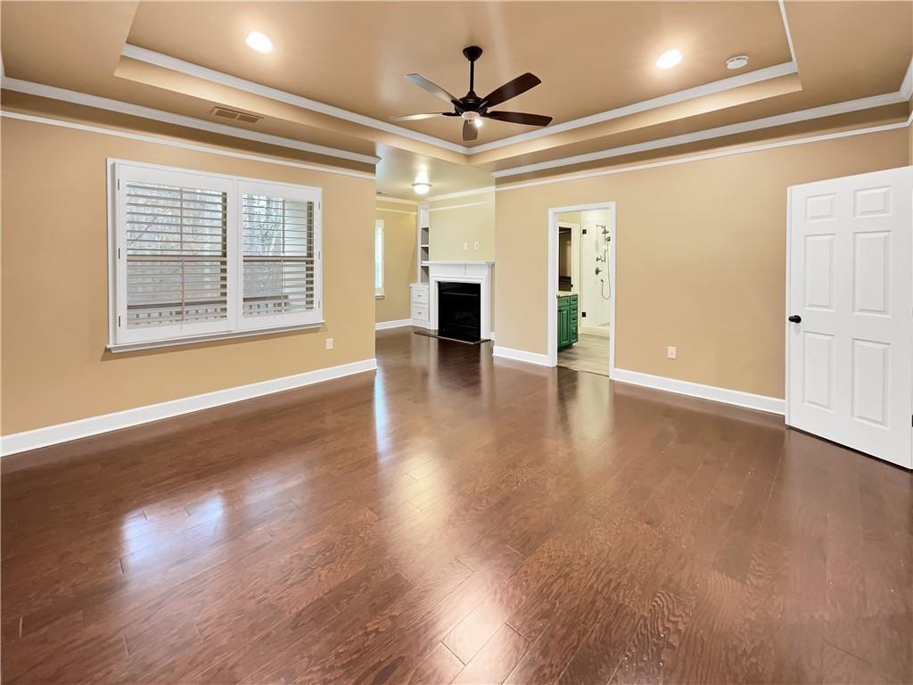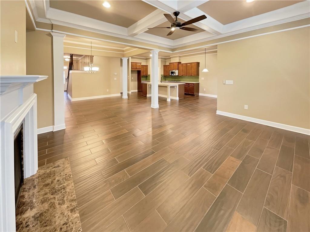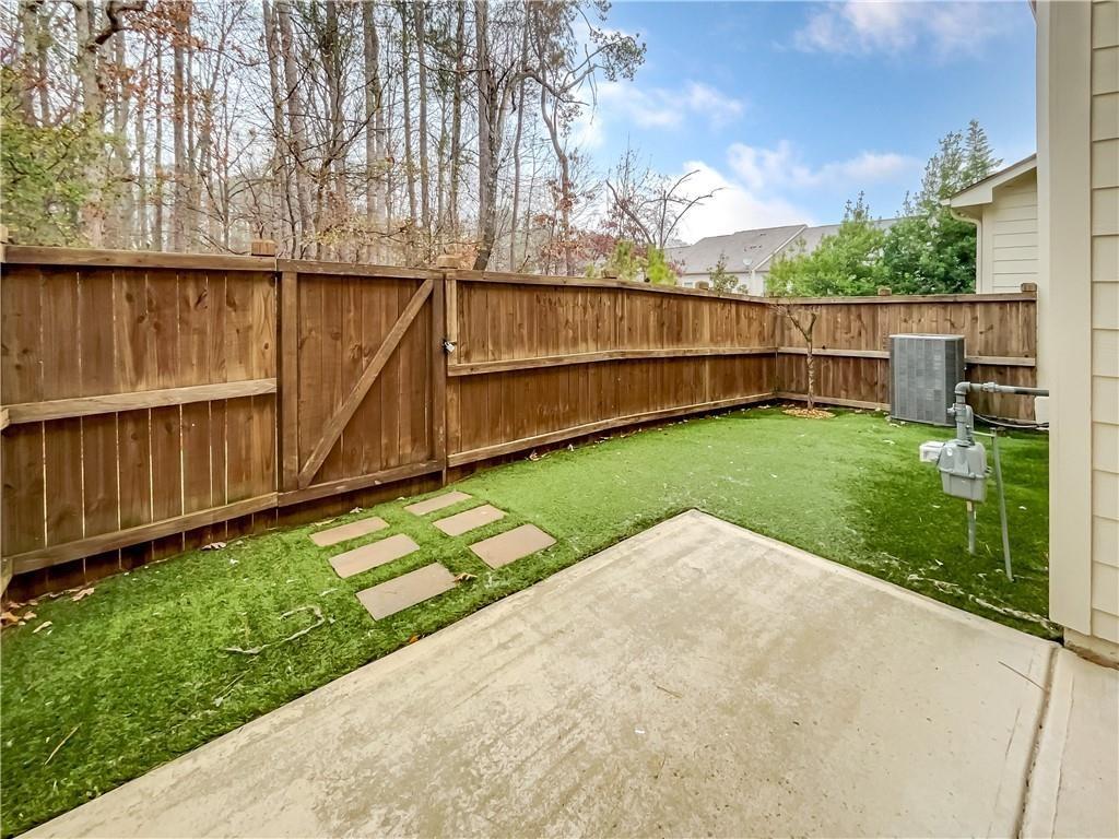 Step into this beautifully updated East-facing home, where fresh interior paint and thoughtfully placed windows create a warm, sun-filled ambiance. Anchored by a cozy fireplace, the bright and open living spaces make this home both inviting and functional. This is the most upgraded and recently renovated home in Vinings Crest, a gated community ideally located just minutes from The Battery, Vinings Jubilee, and top destinations like Buckhead (8 miles), Downtown Atlanta (12 miles). The gourmet kitchen is a true centerpiece, boasting a spacious quartzite center island, modern cabinetry, and a sleek designer backsplash—perfect for everyday meals or entertaining guests. The living room features coffered ceilings, a fireplace, custom built-in cabinets, and elegant trim and crown molding throughout. The adjacent open-concept dining area offers ample room for hosting and large gatherings. Retreat to the serene primary suite, complete with a private sitting area, its own fireplace, and access to a large walkout deck. The fully renovated spa-like primary bathroom includes a luxurious walk-in shower, double vanities, custom under-sink cabinetry, and his-and-hers walk-in closets with built-in wood shelving for optimal storage. Two additional bedrooms offer en suite bathrooms and flexible space for guests, home office, or hobbies. Enjoy outdoor living in the private, fenced backyard featuring a concrete patio—perfect for relaxing or letting pets roam. A rear gate opens to a large community green space, providing even more room for recreation or gatherings. Additional highlights include: Hardwood floors throughout – no carpet anywhere, New lighting/chandeliers, New plantation shutters (2023) for a refined and cohesive look. Recently upgraded systems and finishes, including: Full interior repaint (2024), Kitchen remodel with new center island (2023), Primary bathroom renovation including shower, vanities, lighting, closets and cabinetry (2024), New HVAC system (2024), New refrigerator (2023). HOA dues include: water, sewer, landscaping, gate maintenance, trash pickup, and termite control. Prime location with convenient access to major employers such as The Home Depot, Lockheed Martin, UPS, IBM Watson, and Wellstar Headquarters, as well as top-rated hospitals including Northside, Piedmont, and Emory.