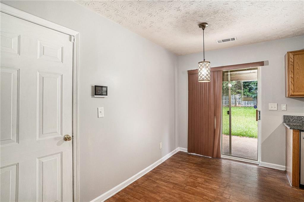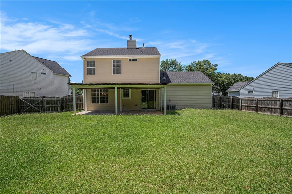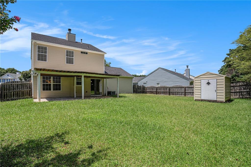 Beautifully maintained 3-bedroom, 2.5-bath home features a welcoming foyer, sunlit kitchen with a breakfast area, a spacious family room room with a cozy fireplace, and a separate dining room perfect for gatherings. Enjoy outdoor living in the large backyard with an extended brick patio—ideal for relaxing or entertaining. The expansive primary suite boasts his-and-hers closets, a garden tub, and a generous layout. Additional highlights include a 2-car garage with extra storage space and access to fantastic community amenities, including a pool, tennis courts, clubhouse, and playground. All of this just 3 minutes from I-20 and shopping centers - convenience meets comfort!