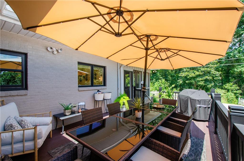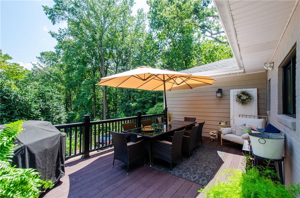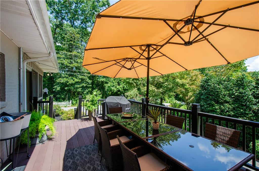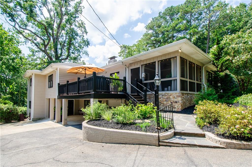Magazine Marvelous! Welcome to this beautifully remodeled 1950s ranch located just a short stroll from Downtown Canton. Nestled on a picturesque, tree-lined street in the historic district, this home combines timeless charm with thoughtful modern updates—perfect for buyers seeking character and convenience. From the moment you arrive, you’ll be drawn in by the curb appeal: freshly painted brick, professional landscaping, and newer windows that add both style and energy efficiency. This home was awarded the Cherokee County Historical Society Historic Home in 2018. Step inside to an inviting foyer and elegant formal living room with one of two fireplaces, ideal for relaxing or entertaining guests. The renovated kitchen is the heart of the home, featuring an island, Quartz countertops, subway tile backsplash, updated appliances, a coffee bar, and ample cabinet space. The adjacent breakfast nook includes beautiful custom shelving—perfect for displaying your favorite collections. Hosting dinners is a breeze in the spacious formal dining room, complete with built-in cabinetry for your china and serve-ware. Large picture windows throughout the home bring in natural light and showcase the mature trees that surround the property. The cozy family room offers built-in entertainment cabinetry and a cedar-lined closet, while the generous Owner’s Suite features a walk-in shower, custom laundry area with built-in sink, folding space, and plenty of storage—all beautifully designed. Additional highlights include: • Two spacious guest bedrooms with a shared full bath • Powder room conveniently located off the hallway • Gorgeous screened-in back porch and open deck—perfect for evening entertaining or weekend lounging • Finished terrace level with new LVP flooring, second family room with fireplace, two additional bedrooms, and a full bath featuring unique original 1950’s tile • Ample storage areas, ideal for a workshop or hobbies • One-car garage with automatic opener (tandem option for two cars) • Corner lot location for added privacy Enjoy being minutes from Downtown Canton’s shopping, dining, and entertainment—this home truly offers the best of both charm and convenience. Move-in ready and meticulously maintained—this one is a must-see!
