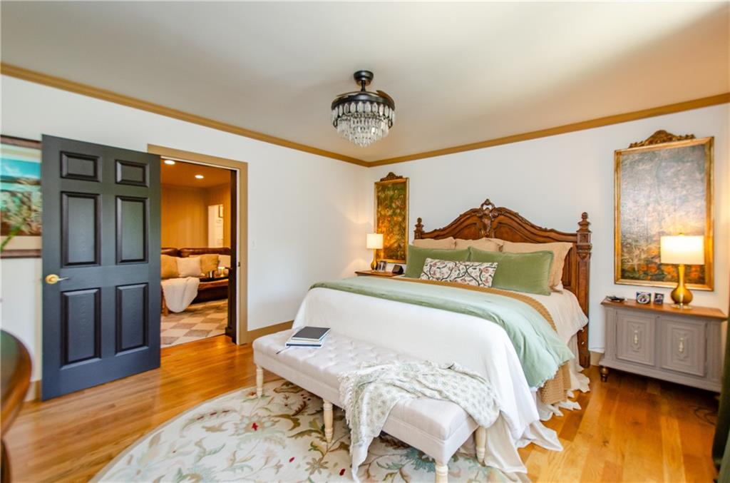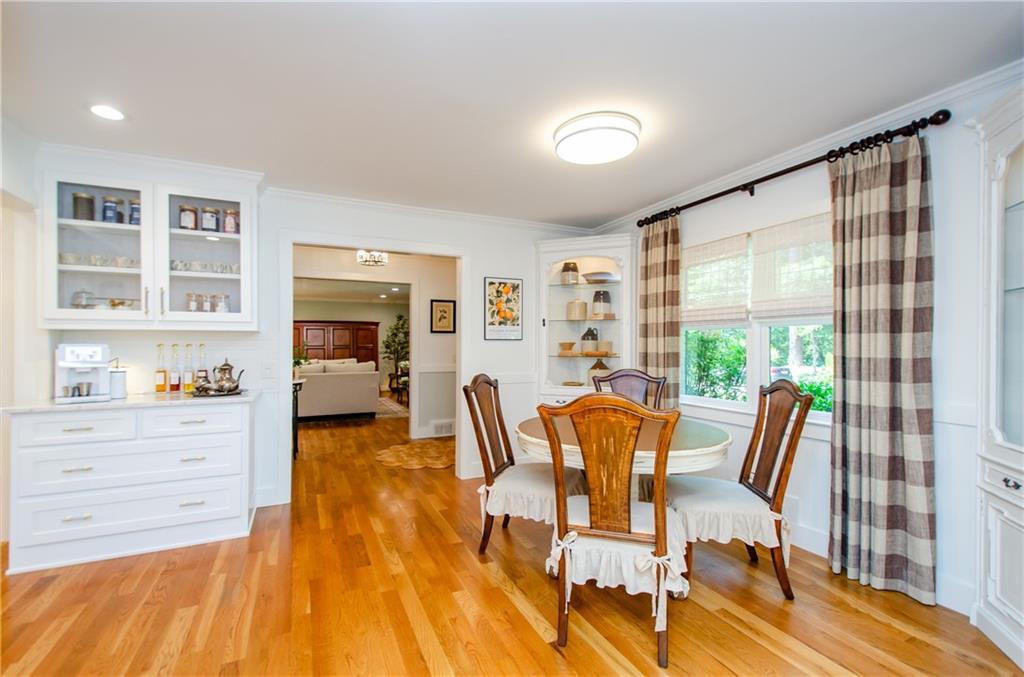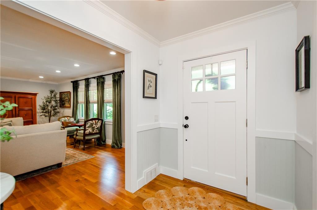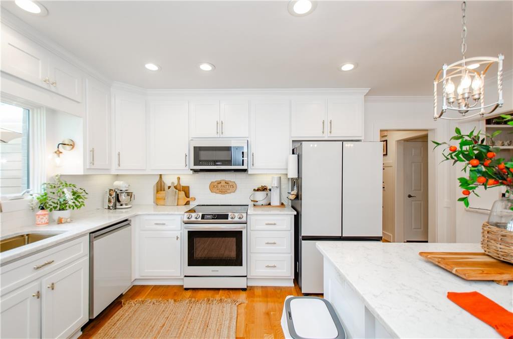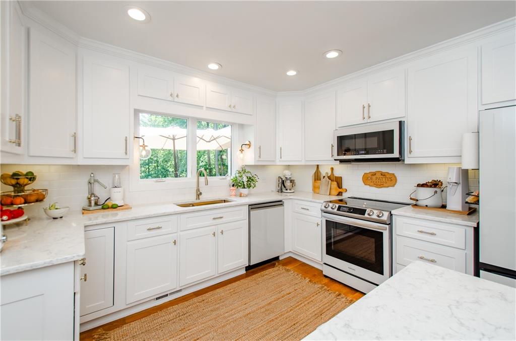 Magazine Marvelous! Welcome to this beautifully remodeled 1950s ranch located just a short stroll from Downtown Canton. Nestled on a picturesque, tree-lined street in the historic district, this home combines timeless charm with thoughtful modern updates—perfect for buyers seeking character and convenience. From the moment you arrive, you’ll be drawn in by the curb appeal: freshly painted brick, professional landscaping, and newer windows that add both style and energy efficiency. This home was awarded the Cherokee County Historical Society Historic Home in 2018. Step inside to an inviting foyer and elegant formal living room with one of two fireplaces, ideal for relaxing or entertaining guests. The renovated kitchen is the heart of the home, featuring an island, Quartz countertops, subway tile backsplash, updated appliances, a coffee bar, and ample cabinet space. The adjacent breakfast nook includes beautiful custom shelving—perfect for displaying your favorite collections. Hosting dinners is a breeze in the spacious formal dining room, complete with built-in cabinetry for your china and serve-ware. Large picture windows throughout the home bring in natural light and showcase the mature trees that surround the property. The cozy family room offers built-in entertainment cabinetry and a cedar-lined closet, while the generous Owner’s Suite features a walk-in shower, custom laundry area with built-in sink, folding space, and plenty of storage—all beautifully designed. Additional highlights include: • Two spacious guest bedrooms with a shared full bath • Powder room conveniently located off the hallway • Gorgeous screened-in back porch and open deck—perfect for evening entertaining or weekend lounging • Finished terrace level with new LVP flooring, second family room with fireplace, two additional bedrooms, and a full bath featuring unique original 1950’s tile • Ample storage areas, ideal for a workshop or hobbies • One-car garage with automatic opener (tandem option for two cars) • Corner lot location for added privacy Enjoy being minutes from Downtown Canton’s shopping, dining, and entertainment—this home truly offers the best of both charm and convenience. Move-in ready and meticulously maintained—this one is a must-see!