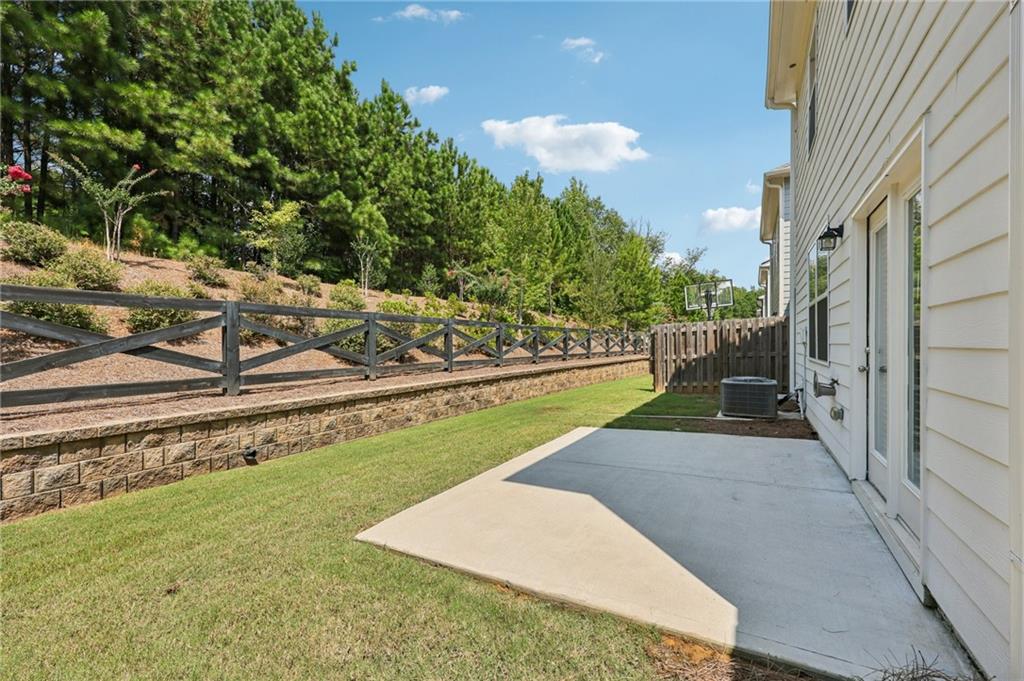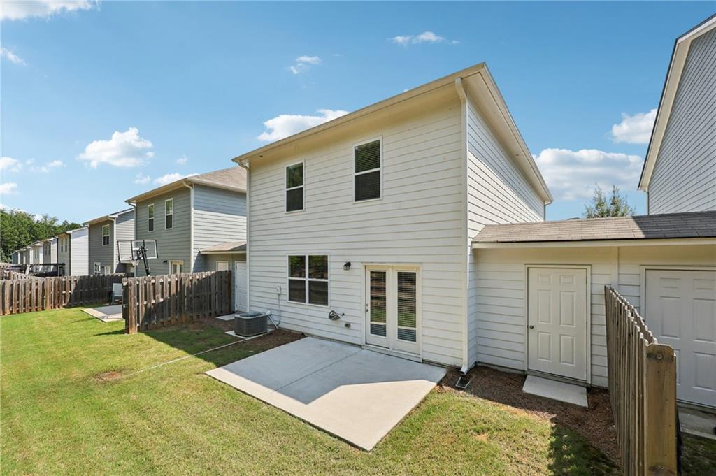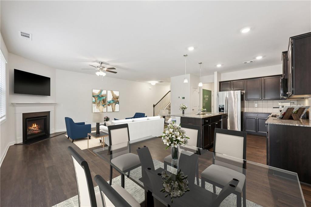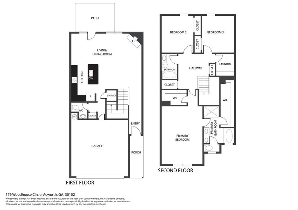 Move-in ready home with stylish updates and modern convenience! The first floor features beautiful, easy-to-maintain vinyl wood flooring throughout. A spacious, open-concept living room with abundant natural light and a cozy fireplace flows seamlessly into the on-trend kitchen, complete with a large island with seating, granite countertops, stainless steel appliances, and ample cabinet space. A convenient half bath completes the main level. Upstairs, the primary suite offers a tray ceiling, en-suite bath with dual sinks, soaking tub, separate glass shower, and two walk-in closets. Two additional bedrooms share a full hall bath, and the laundry room is conveniently located upstairs as well! Outside, enjoy a large patio perfect for grilling and entertaining, plus green space that backs to woods for added privacy. Two storage areas help keep everything organized! Updates include caulking replenished and pressure washed outside, all wood trim painted including fascia, soffit, gutters, and downspouts. Conveniently located near Hwy 92. Don't miss your opportunity - book your tour today!
