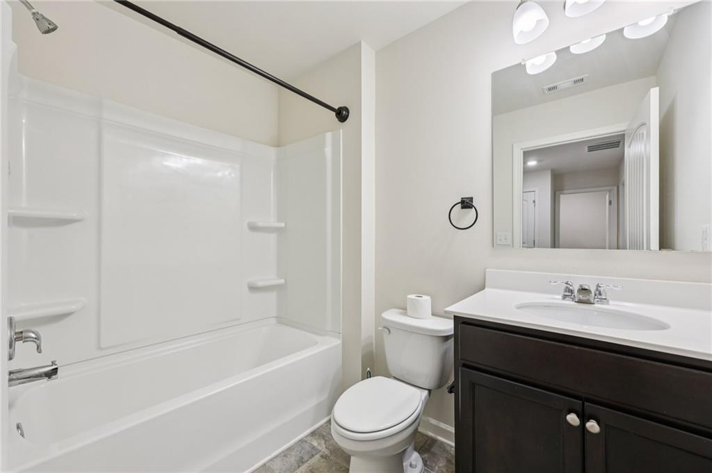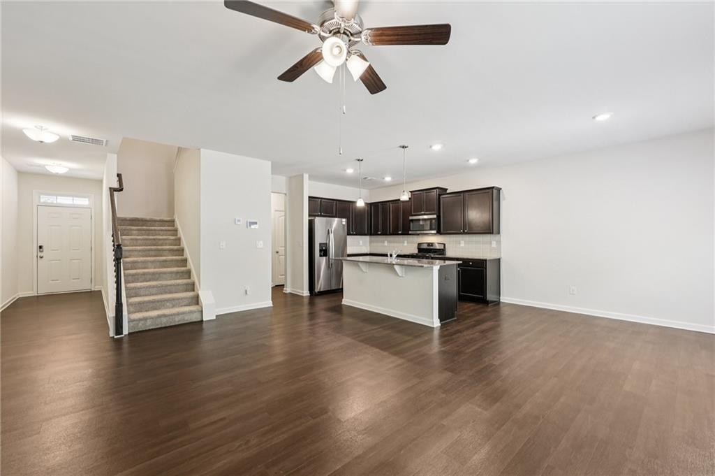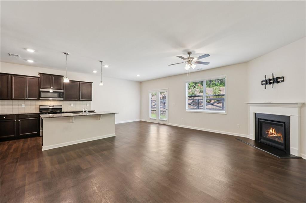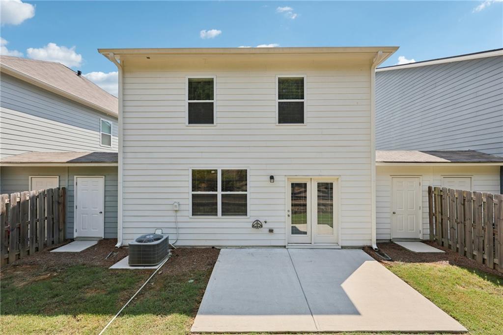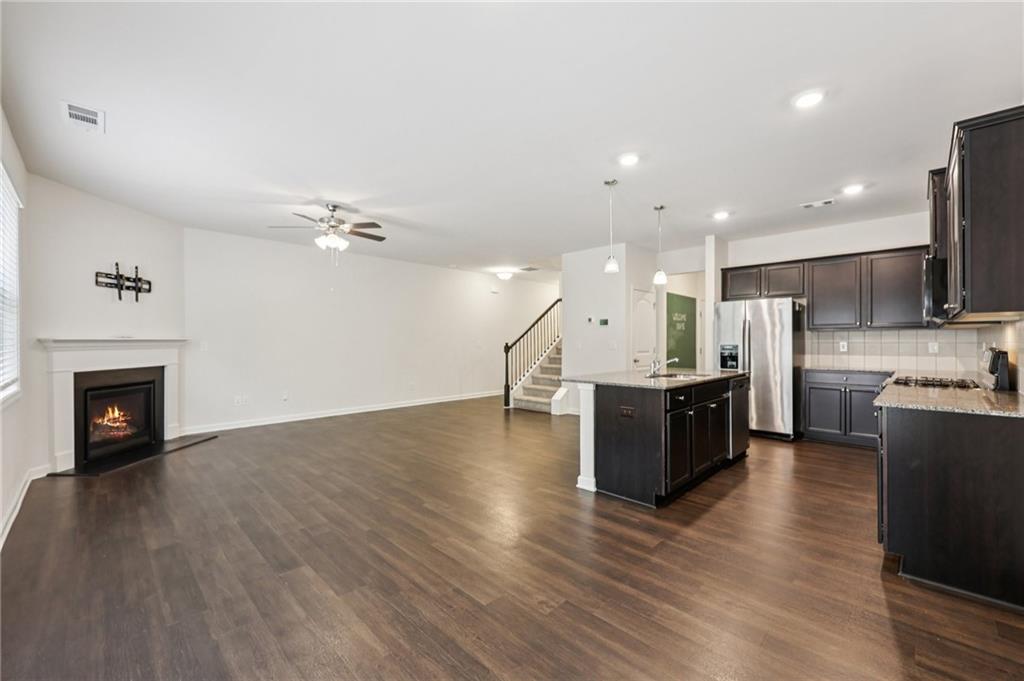 Move-in ready home with stylish updates and modern convenience! The first floor features beautiful, easy-to-maintain vinyl wood flooring throughout. A spacious, open-concept living room with abundant natural light and a cozy fireplace flows seamlessly into the on-trend kitchen, complete with a large island with seating, granite countertops, stainless steel appliances, and ample cabinet space. A convenient half bath completes the main level. Upstairs, the primary suite offers a tray ceiling, en-suite bath with dual sinks, soaking tub, separate glass shower, and two walk-in closets. Two additional bedrooms share a full hall bath, and the laundry room is conveniently located upstairs as well! Outside, enjoy a large patio perfect for grilling and entertaining, plus green space that backs to woods for added privacy. Two storage areas help keep everything organized! Updates include caulking replenished and pressure washed outside, all wood trim painted including fascia, soffit, gutters, and downspouts. Conveniently located near Hwy 92. Don't miss your opportunity - book your tour today!