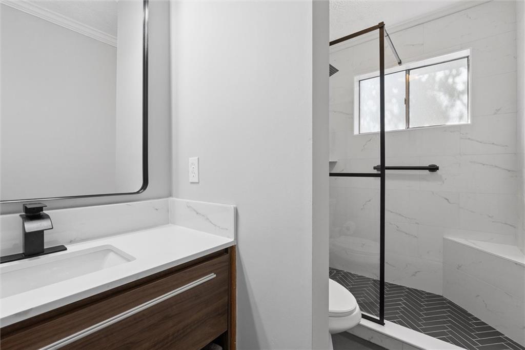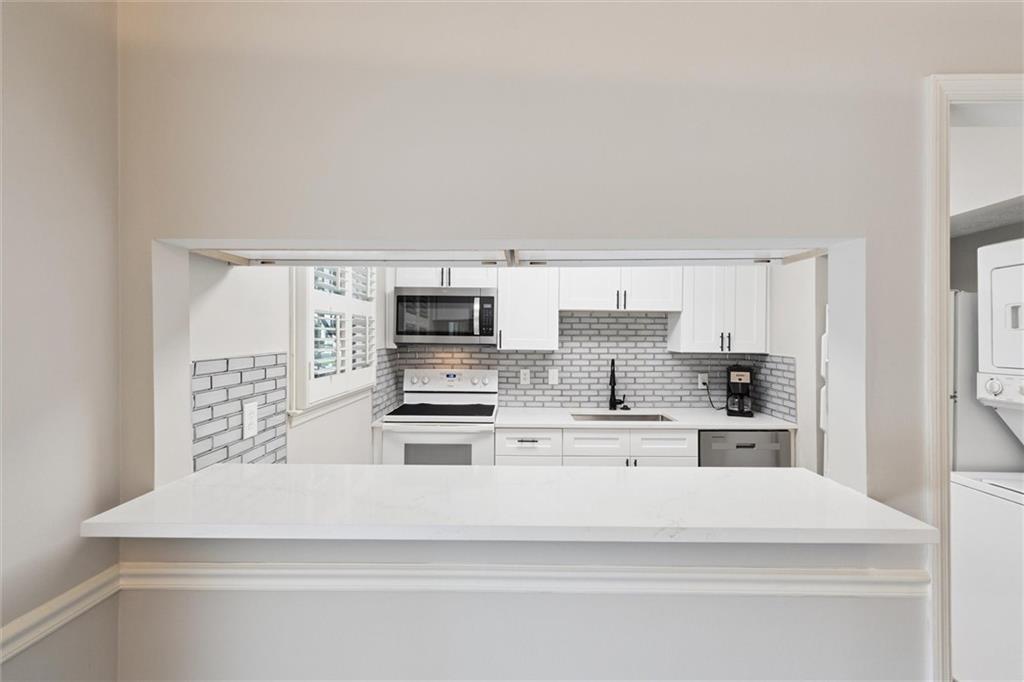 This beautifully upgraded and designed 2-bedroom, 2-bathroom condo in Atlanta is ready for its new owner! The windows and sliding door have been enhanced with Pella Custom brand windows, while the kitchen window features plantation shutters for optimal sunlight control. As you step inside, you are greeted by a spacious living room that offers ample room for hosting and entertaining guests. Just around the corner, the dining area is filled with natural light, creating a cheerful atmosphere that enhances every meal. The upgraded kitchen boasts quartz countertops and is equipped with brand-new stainless steel appliances, including a microwave and dishwasher, providing plenty of cabinet storage for preparing your favorite dishes. Both bedrooms are designed with comfort in mind, with the primary suite featuring a private bathroom for added convenience. Both bathrooms have been modernized with stylish shower and bath finishes. When warm weather returns, step out onto the cozy patio, perfect for enjoying your morning coffee or unwinding with a good book. Want to see this unit in person? Schedule a showing with your favorite agent today! All amenities—including water, pool, tennis, playground, and maintenance—are included with one of the lowest HOA fees in the area. You can easily walk to the gym, shops, and restaurants, and enjoy joining a league at the Sandy Springs Tennis and Pickleball Center, located just around the corner. This condo is conveniently situated near Highway 400 and I-285, with The Battery, Buckhead, Avalon, and Midtown all just minutes away. Plus, hop on MARTA for an easy train ride to the airport! This is a must-have purchase!