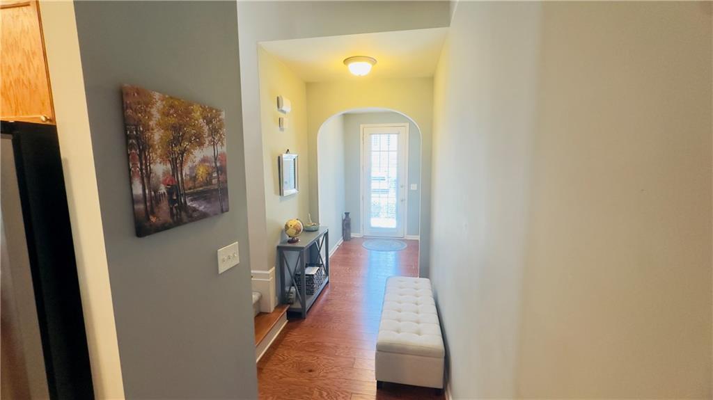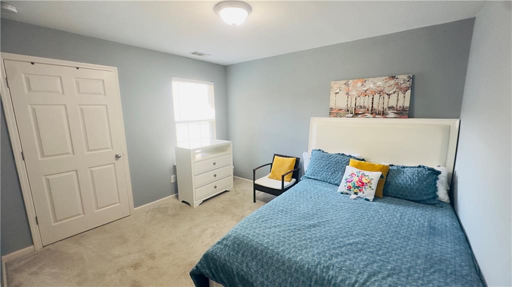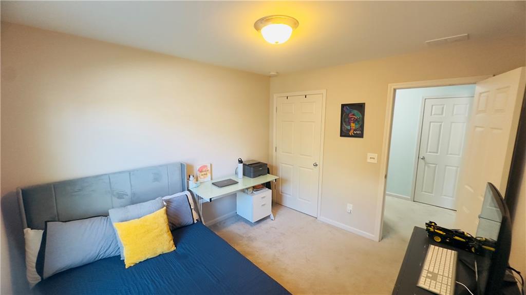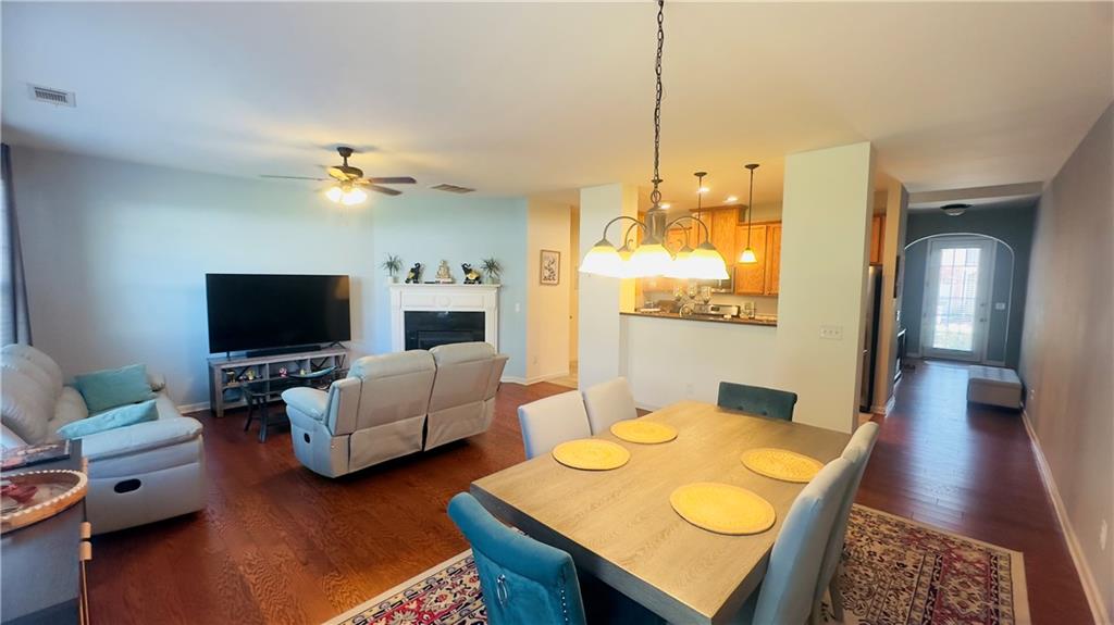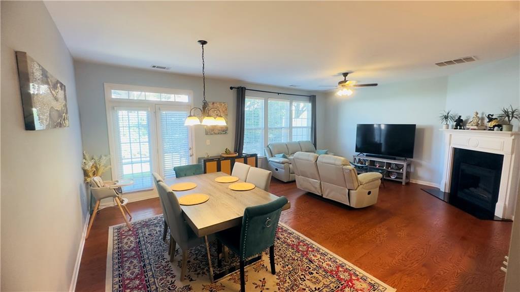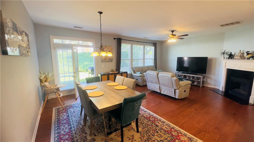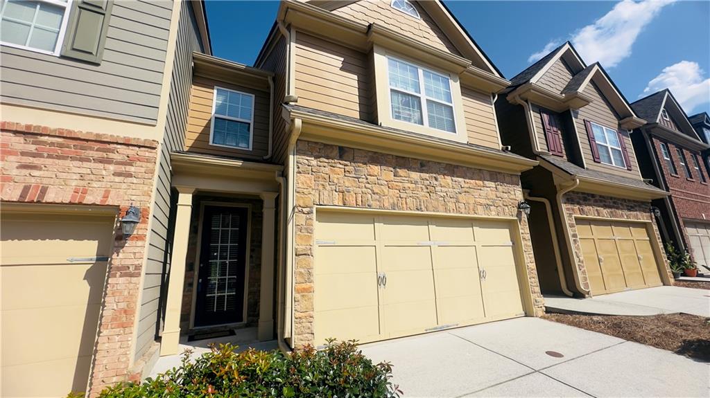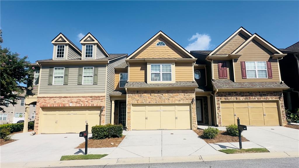 Welcome to this exceptional northeast facing 4-bedroom, 2.5-bathroom townhome in the highly sought-after Carlton at Hamilton Mills community. This spacious home is one of the largest in the neighborhood and boasts hardwood flooring throughout the main level. The open floor plan features a formal dining room and an inviting living area. The gourmet kitchen is equipped with stainless steel appliances, granite countertops, an eat-in area, and offers views of the family room, which is highlighted by a wall of windows and a cozy gas fireplace, the charming powder room completes the main level. Upstairs, you'll find a generously sized master suite with vaulted ceilings, an en-suite bath, and a walk-in closet. The master bath includes a separate shower, a garden tub, double vanities, and an enlarged walk-in closet. Three additional bedrooms and a full bathroom complete the upper level. The beautifully landscaped rear courtyard offers a serene and relaxing outdoor space. Carlton at Hamilton Mills offers an array of community amenities, including large swimming with splash areas for children, playgrounds, a beautiful clubhouse, and ALTA-level tennis courts. This home is ideally located just minutes to 85 and major shopping opportunities The HOA fee covers all amenities, as well as exterior building and lawn maintenance, trash removal, and termite control. This home is a must-see to fully appreciate its features and exceptional value. The loan can be assumed with3.9% interest rate this home also qualifies for a non payment grant of $5000 with preferred lender