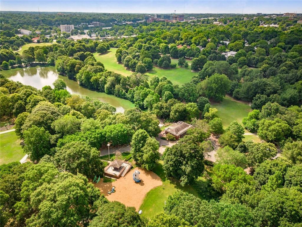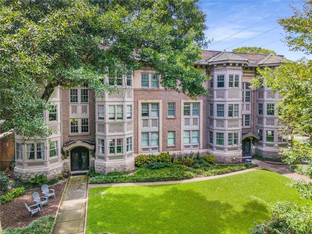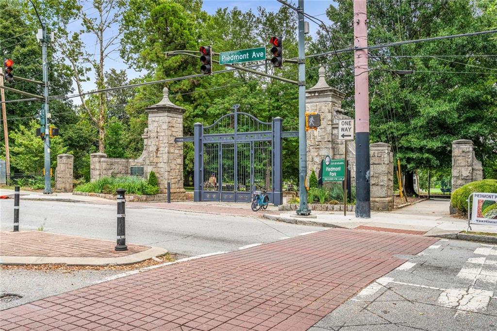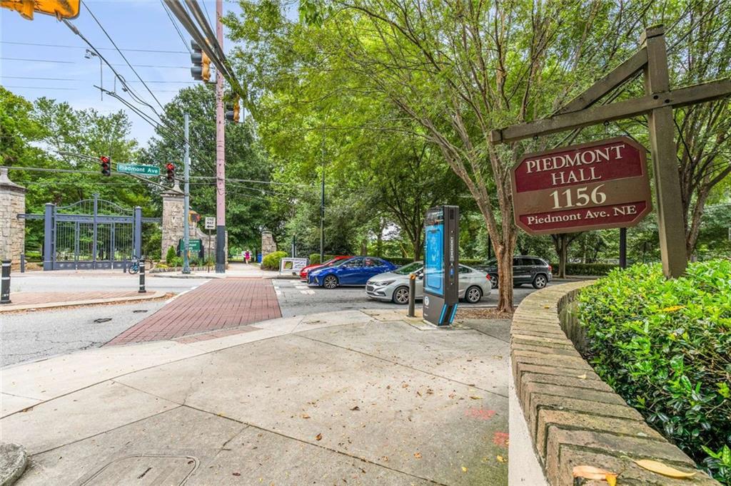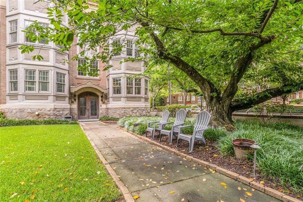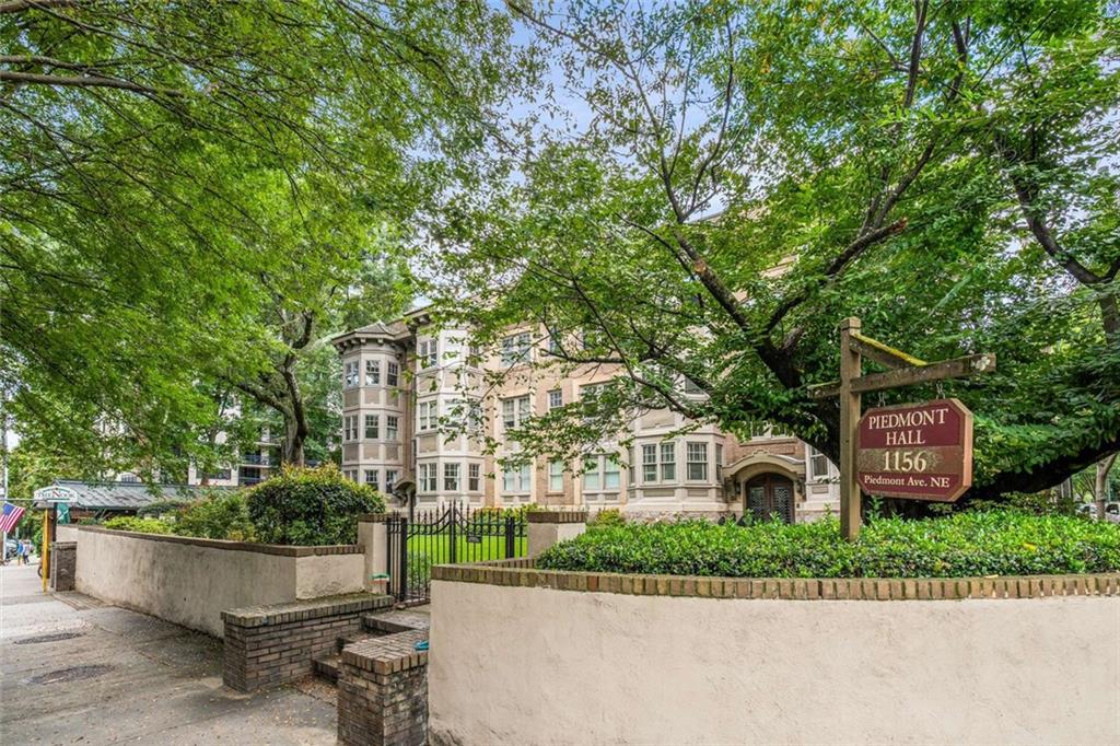 Welcome to Piedmont Hall, a beautiful building dating 1942. Sophisticated and lovely, this jewel overlooks the 14th Street entrance to Piedmont Park. Unit A4 has been very well maintained with gorgeous hardwood floors, very heavy trim/moulding throughout and high ceilings. There is a large Living Room that has a 'sunroom' with a view of the front lawn and the Piedmont Park entrance gates. Living room adjoins the generous sized dining room. The kitchen has stained cabinets, stainless steel appliances and stone countertops. 2 bedrooms and 2 full baths and an additional storage unit in the basement. 1 assigned parking space in the gated parking lot behind the building. This condominium is in an ideal location with everything that Midtown has to offer. Walkable to shopping, restaurants, the High Museum, the Atlanta Botanical Gardens, and of course Piedmont Park!
