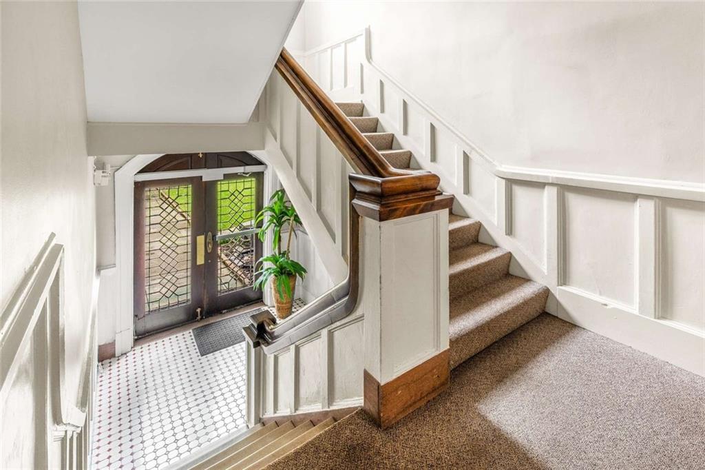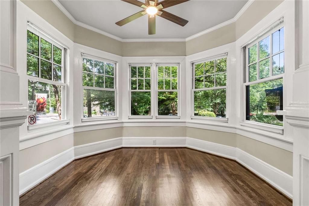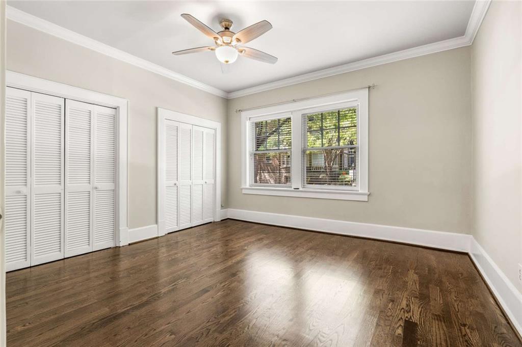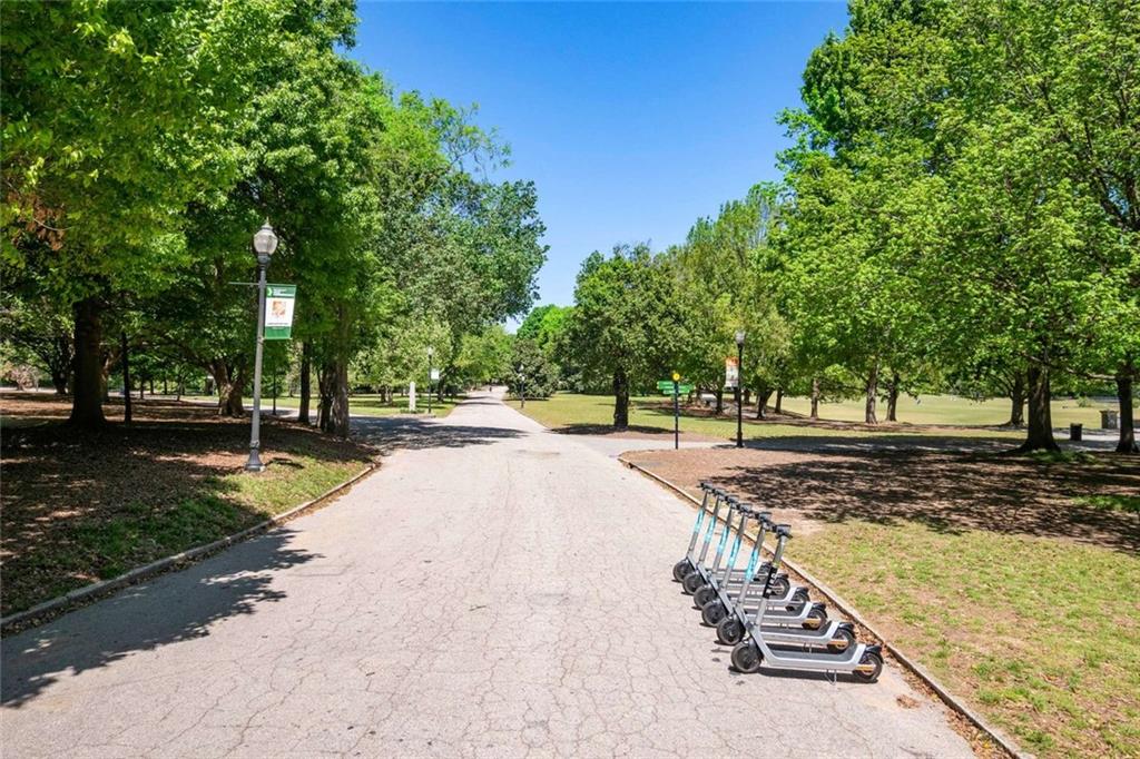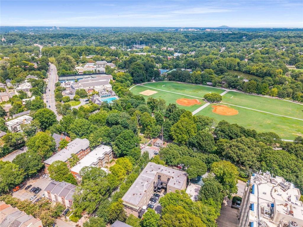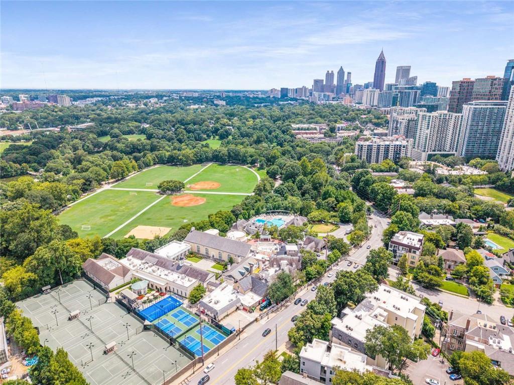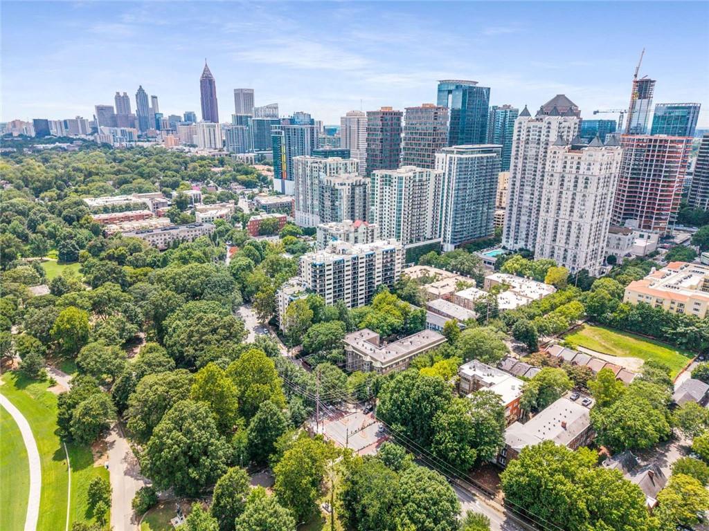 Welcome to Piedmont Hall, a beautiful building dating 1942. Sophisticated and lovely, this jewel overlooks the 14th Street entrance to Piedmont Park. Unit A4 has been very well maintained with gorgeous hardwood floors, very heavy trim/moulding throughout and high ceilings. There is a large Living Room that has a 'sunroom' with a view of the front lawn and the Piedmont Park entrance gates. Living room adjoins the generous sized dining room. The kitchen has stained cabinets, stainless steel appliances and stone countertops. 2 bedrooms and 2 full baths and an additional storage unit in the basement. 1 assigned parking space in the gated parking lot behind the building. This condominium is in an ideal location with everything that Midtown has to offer. Walkable to shopping, restaurants, the High Museum, the Atlanta Botanical Gardens, and of course Piedmont Park!