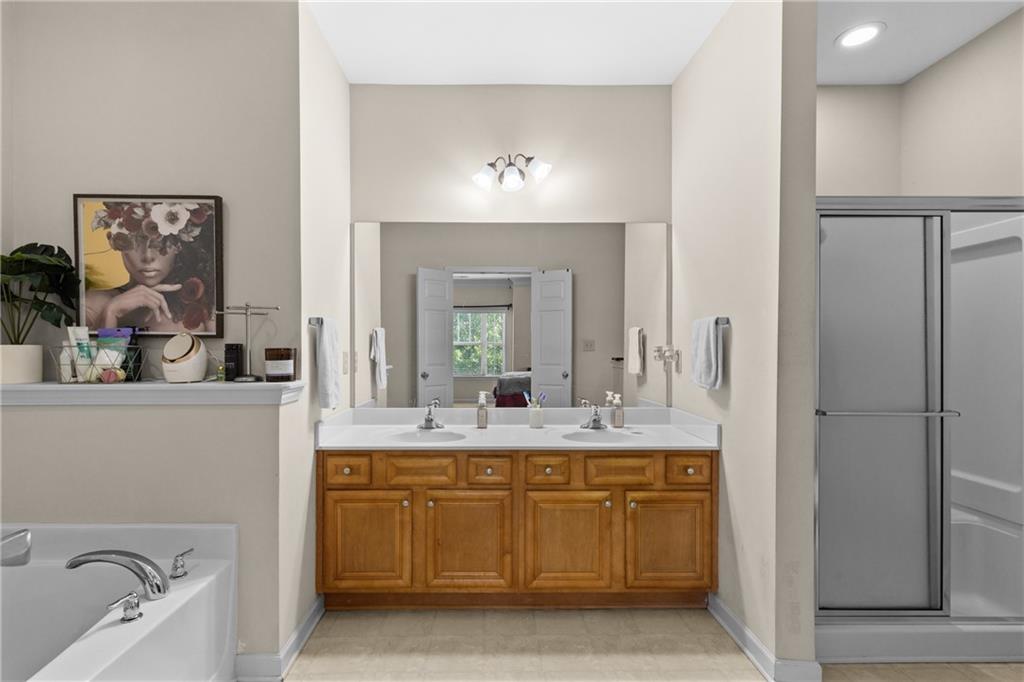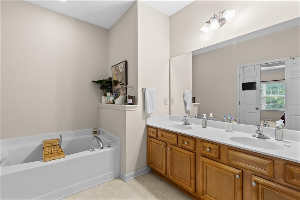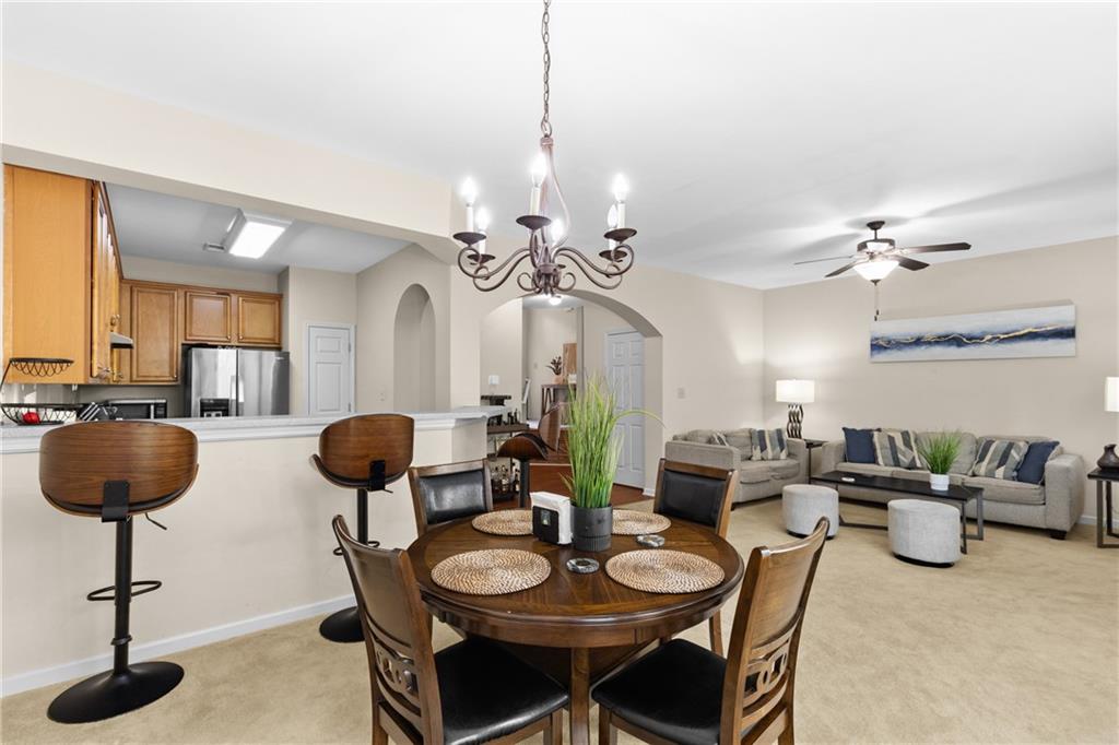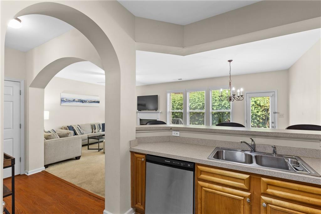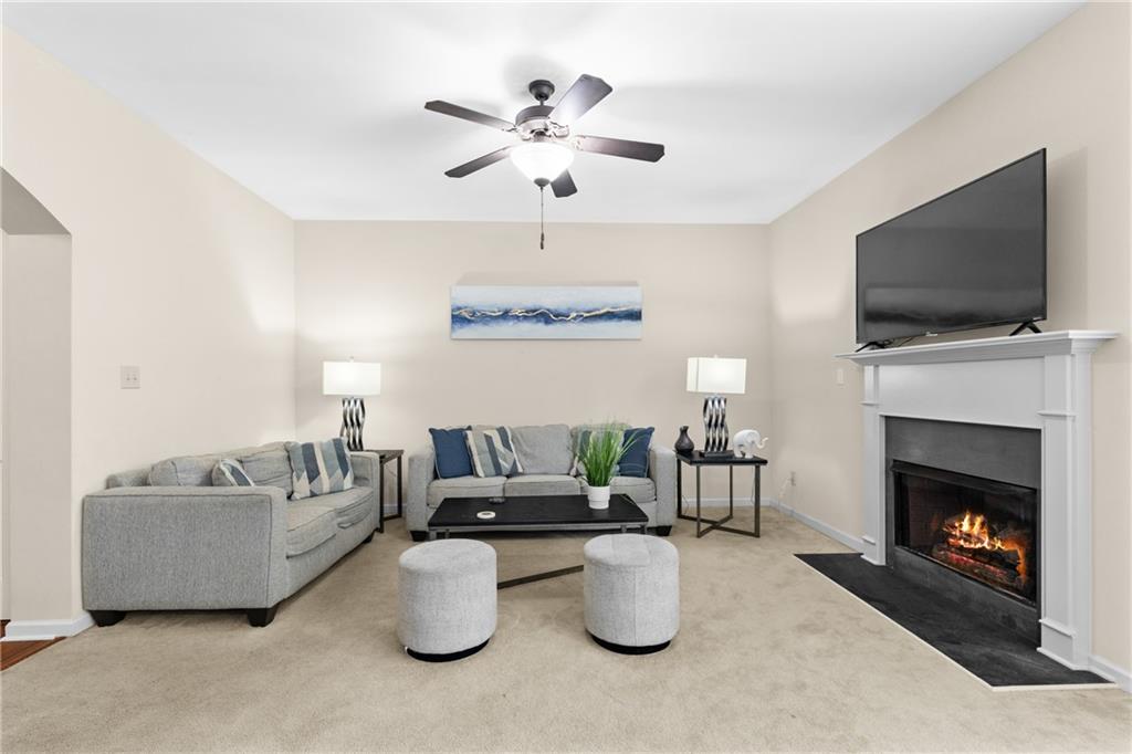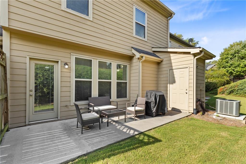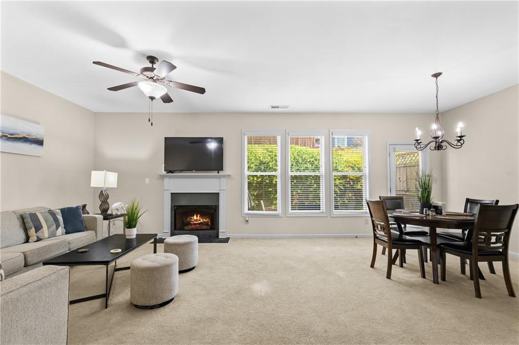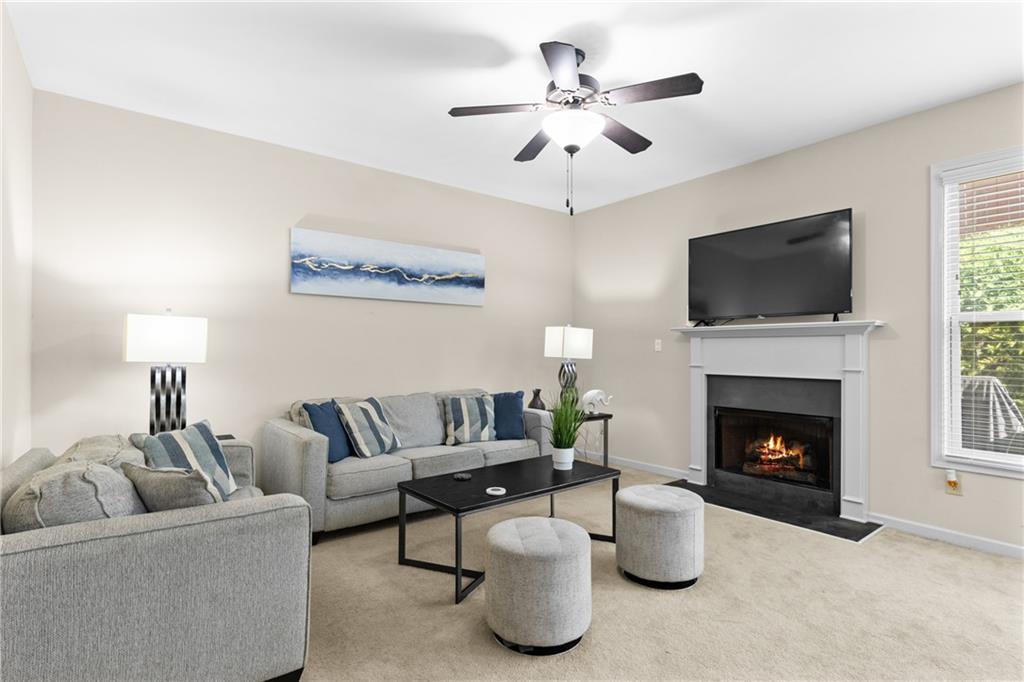 Welcome home to this charmingly designed townhome located in a gated community offering convenience, comfort, and style. With a private driveway and a two-car garage featuring separate doors, the exterior immediately impresses with cedar shaker, board and batten, and brick accents paired with a welcoming front stoop. Step inside to a two-story foyer where arched entryways lead to an open-concept dining and family room anchored by a cozy fireplace. Adjoining kitchen is complete with a breakfast bar, pantry, and stainless steel appliances. Direct access to the private patio from the heart of the home, perfect for entertaining or relaxing outdoors. Upstairs, you’ll find three generously sized bedrooms, including a primary suite with tray ceilings, double vanity, garden tub, walk-in shower, and a large walk-in closet. Two secondary bedrooms share an additional full bathroom, offering plenty of space for family or guests. Enjoy outdoor living on the patio, which includes a privacy partition and a convenient storage room for tools, equipment, or seasonal decor. The HOA provides exterior maintenance and trash service, ensuring low-maintenance living at its best. Community amenities also include a pool and gazebo. Ideally situated near Kennesaw Mountain National Battlefield Park, City Club of Marietta, The Battery, and minutes from downtown Marietta, this home also offers quick access to major highways, healthcare, reputable schools, shopping, dining, and year-round entertainment.