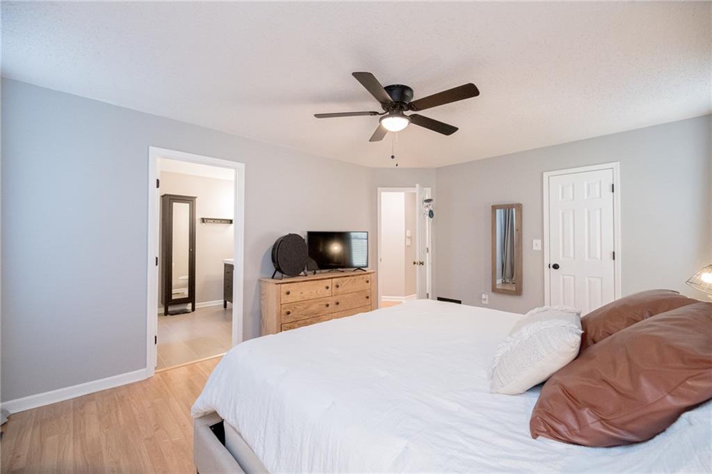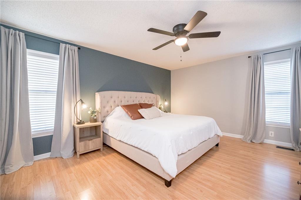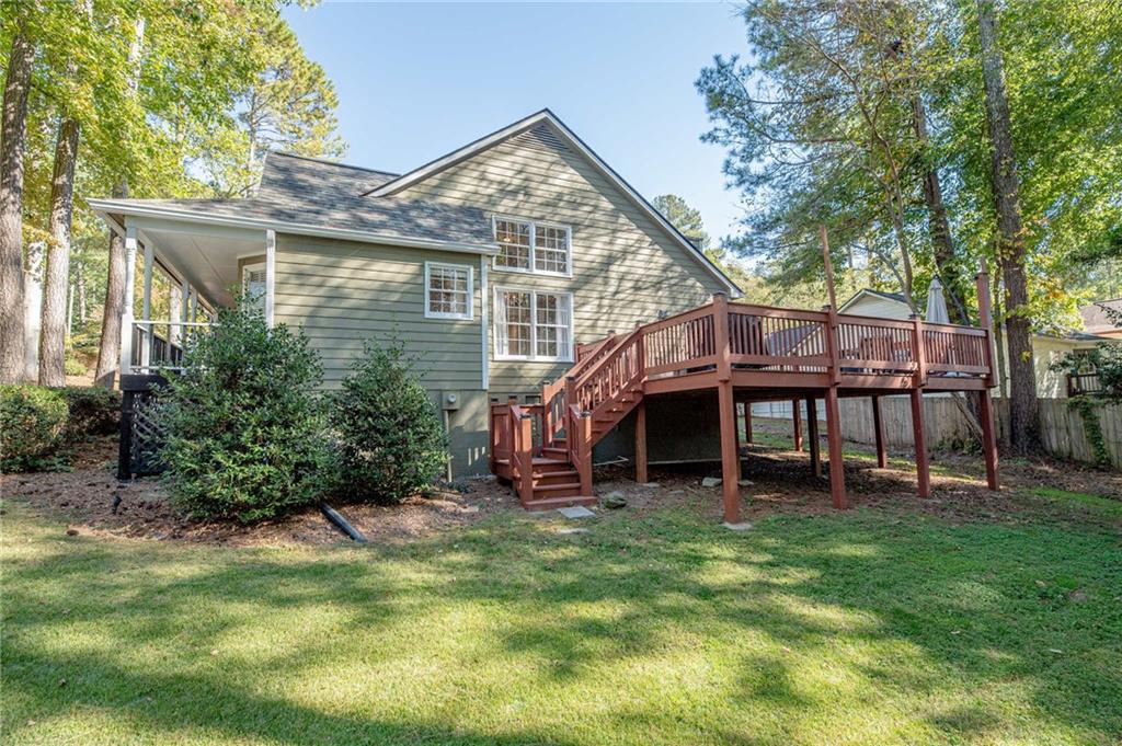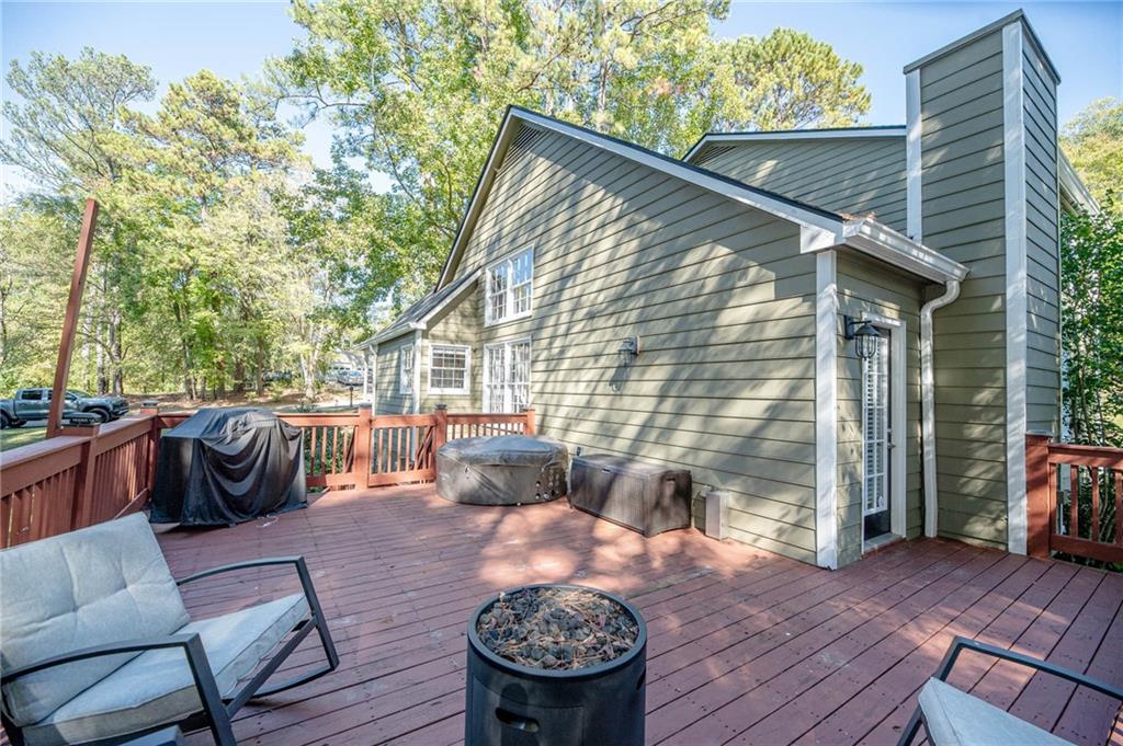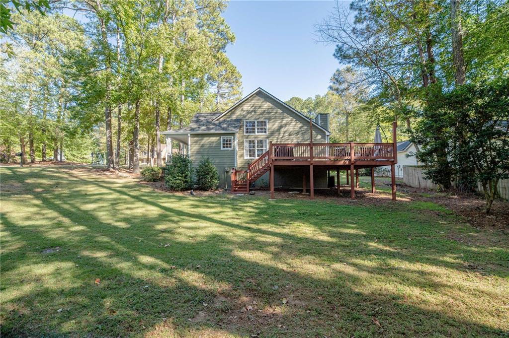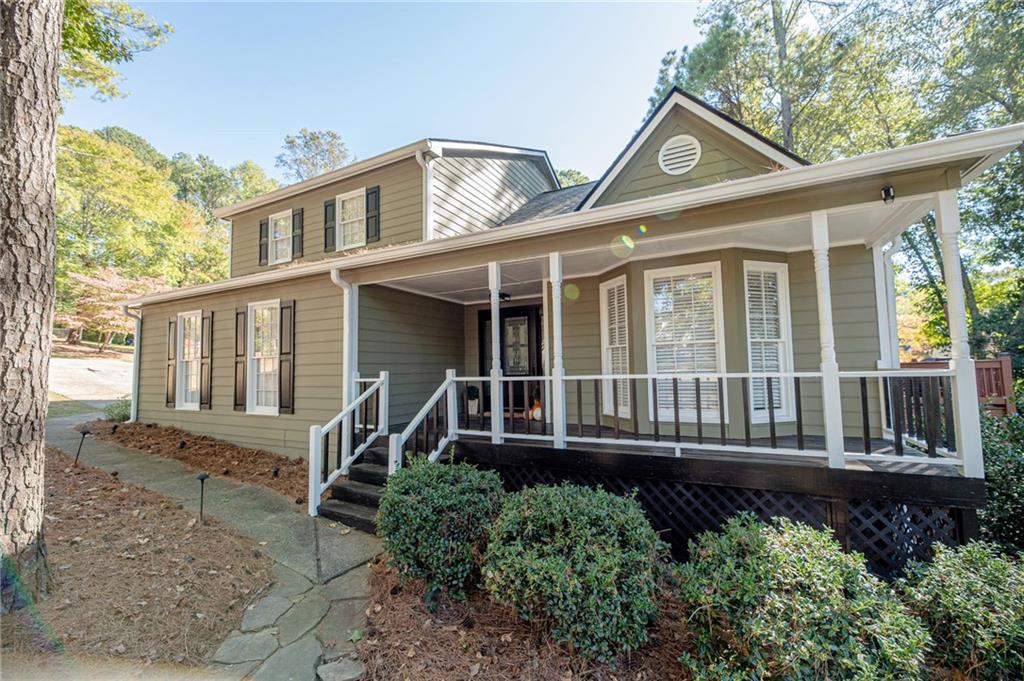Master on Main! Updated Home with 4 Bedrooms and 2.5 Baths. The Corner Lot and Large Covered Front Porch Welcomes you. Open Concept Floor Plan with Solid Floors on Main Level. Spacious Family Room with Beautiful Shiplap Accent Wall and Fireplace. Kitchen features Stainless Appliances, Granite Counters & Tile Backsplash. Separate Dining Room with Great Natural Light. Primary Suite on Main Level with Large Walk-in Closet. Private Master Bath has Updated Vanity and Mirror with Separate Tub/Shower. Upstairs has 3 Additional Bedrooms including an Oversized 4th Bedroom/Flex Space Perfect for Home Office, Gaming, etc. Very Large Corner Lot with Ample Space to Play for Kids/Pets. HUGE Back/Side Deck for Entertaining Guests on Cool Fall Evenings. Brand New Exterior Paint. Two Car Garage. Great West Cobb Location in the Highly Sought After Harrison School District.