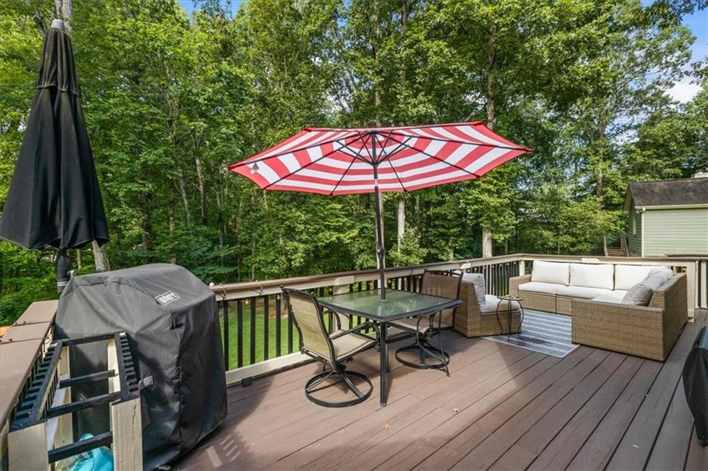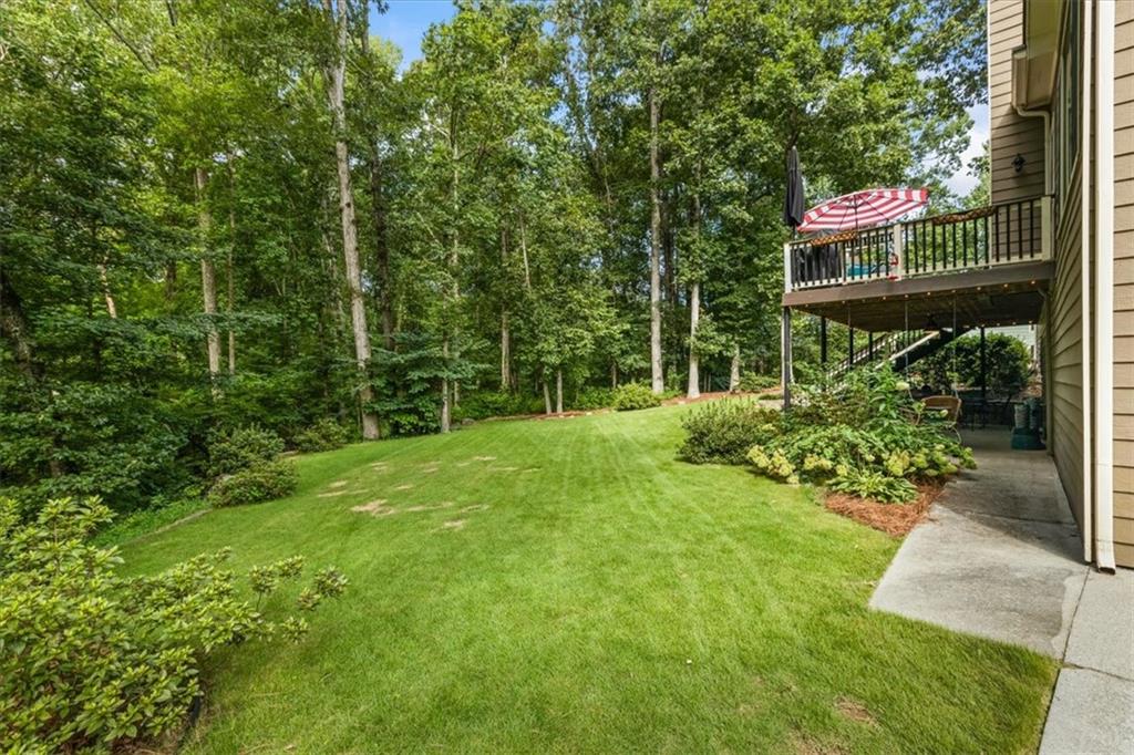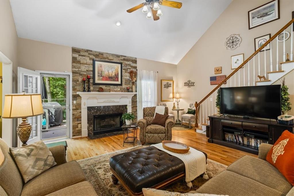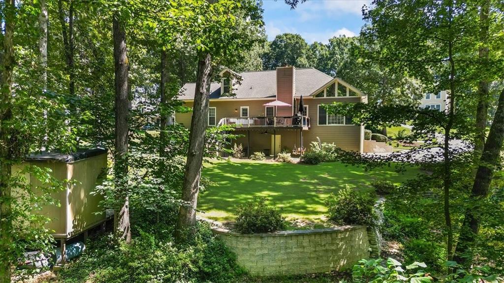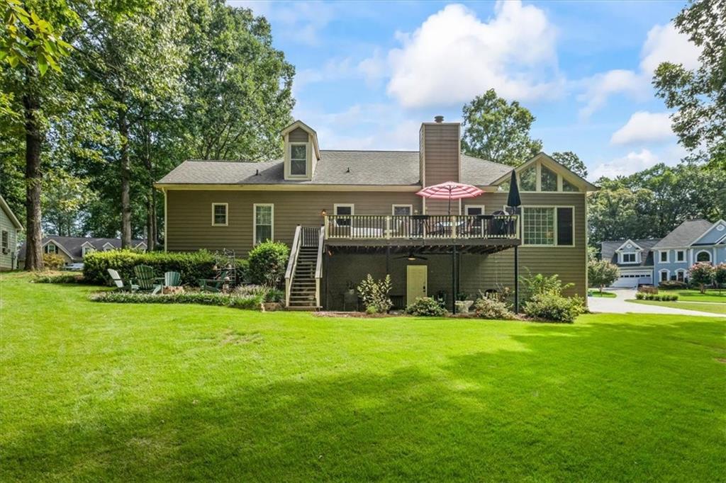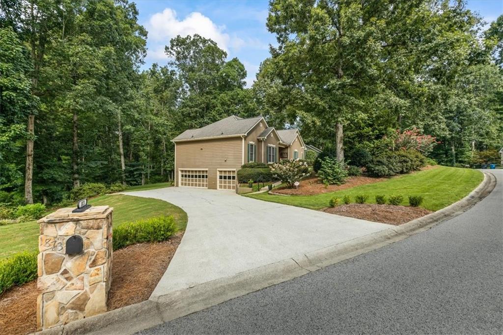 Immaculate 3 bdrm/4 bath home with bonus room. Kitchen features breakfast bar, granite countertops, and stainless steel appliances, Bosch dishwasher(2023). Separate dining room. Great room with gas logs, hardwood floors. Spacious owners suite on the main floor, features his and her walk-in closets, as well as separate shower and tub, marble countertops. Ample laundry room is equipped with electric and gas dryer connection, as well as extra storage units. The basement den is complete with refreshment area. Home features a 3 car garage. Step onto the newly painted deck overlooking a lush Zoysia backyard with creek. The terrace level patio offers a serene escape. This home is a treasure trove of versatile living and abundant storage throughout. Nestled in a swim/tennis community, enjoy the community lake, clubhouse and playground. Plus, the neighborhood boasts a swim team. Enjoy easy access to dining and shopping