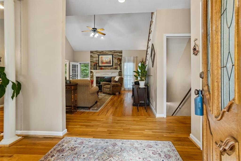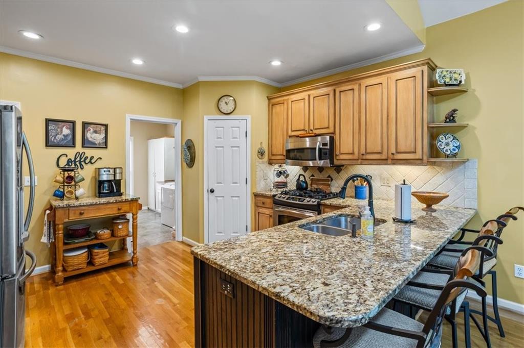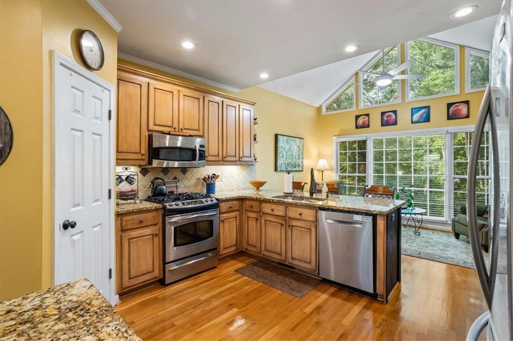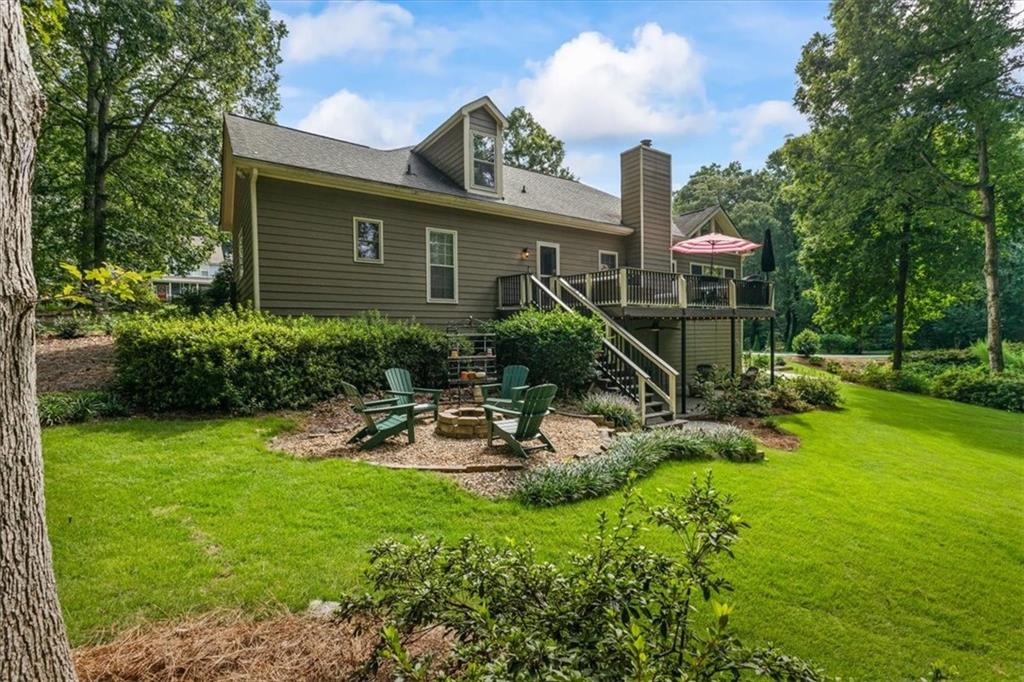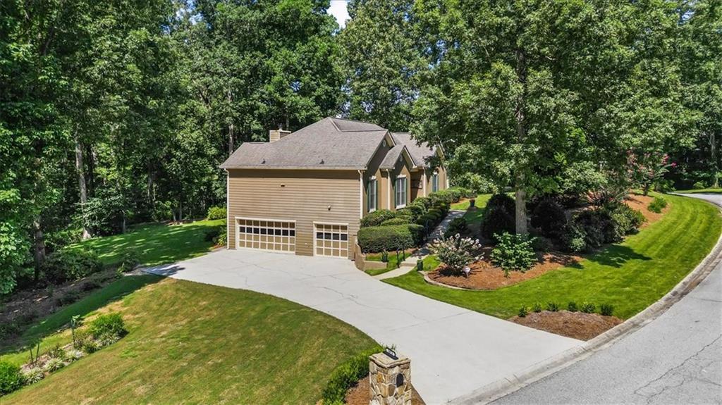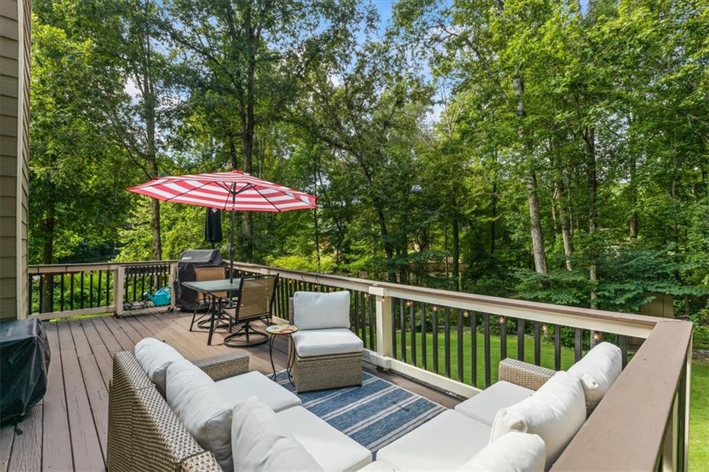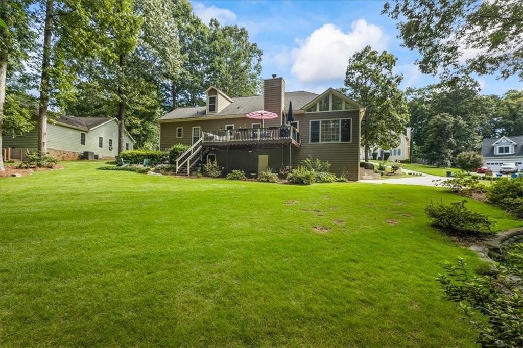 Immaculate 3 bdrm/4 bath home with bonus room. Kitchen features breakfast bar, granite countertops, and stainless steel appliances, Bosch dishwasher(2023). Separate dining room. Great room with gas logs, hardwood floors. Spacious owners suite on the main floor, features his and her walk-in closets, as well as separate shower and tub, marble countertops. Ample laundry room is equipped with electric and gas dryer connection, as well as extra storage units. The basement den is complete with refreshment area. Home features a 3 car garage. Step onto the newly painted deck overlooking a lush Zoysia backyard with creek. The terrace level patio offers a serene escape. This home is a treasure trove of versatile living and abundant storage throughout. Nestled in a swim/tennis community, enjoy the community lake, clubhouse and playground. Plus, the neighborhood boasts a swim team. Enjoy easy access to dining and shopping