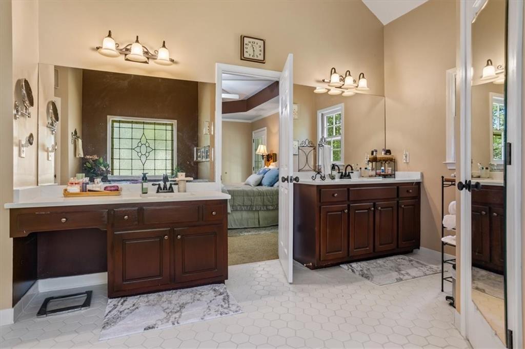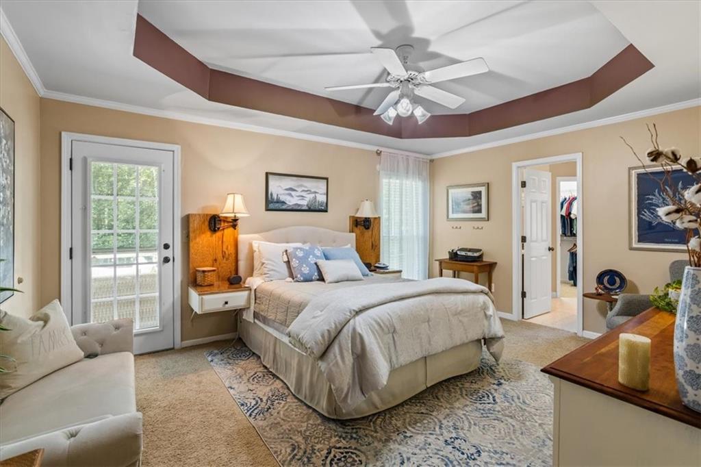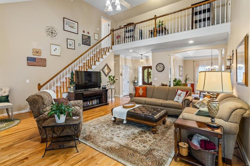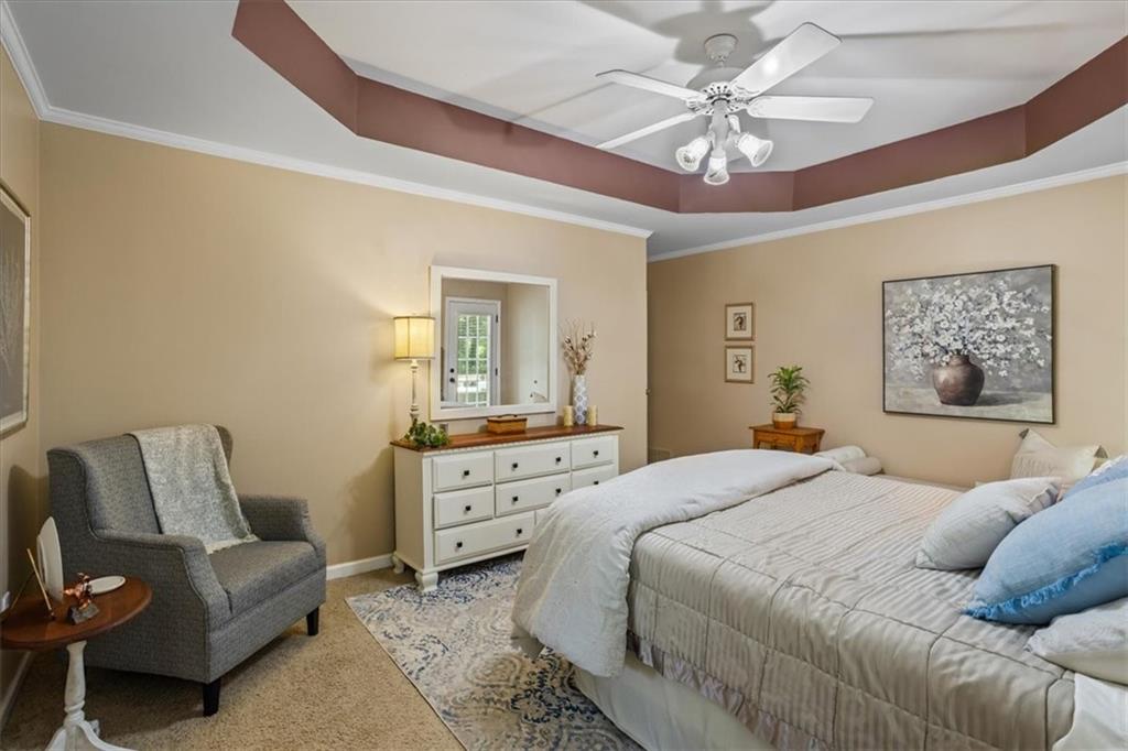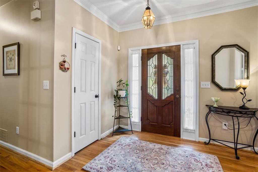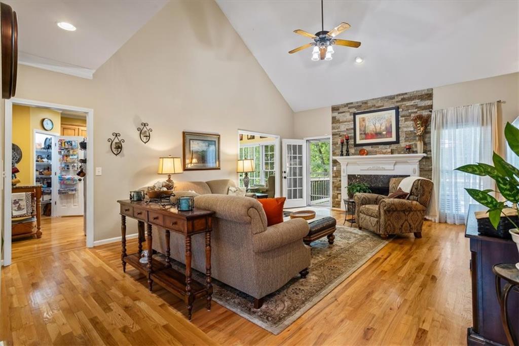 Immaculate 3 bdrm/4 bath home with bonus room. Kitchen features breakfast bar, granite countertops, and stainless steel appliances, Bosch dishwasher(2023). Separate dining room. Great room with gas logs, hardwood floors. Spacious owners suite on the main floor, features his and her walk-in closets, as well as separate shower and tub, marble countertops. Ample laundry room is equipped with electric and gas dryer connection, as well as extra storage units. The basement den is complete with refreshment area. Home features a 3 car garage. Step onto the newly painted deck overlooking a lush Zoysia backyard with creek. The terrace level patio offers a serene escape. This home is a treasure trove of versatile living and abundant storage throughout. Nestled in a swim/tennis community, enjoy the community lake, clubhouse and playground. Plus, the neighborhood boasts a swim team. Enjoy easy access to dining and shopping