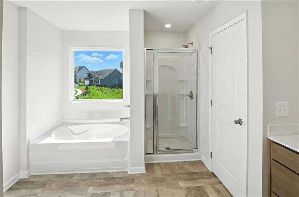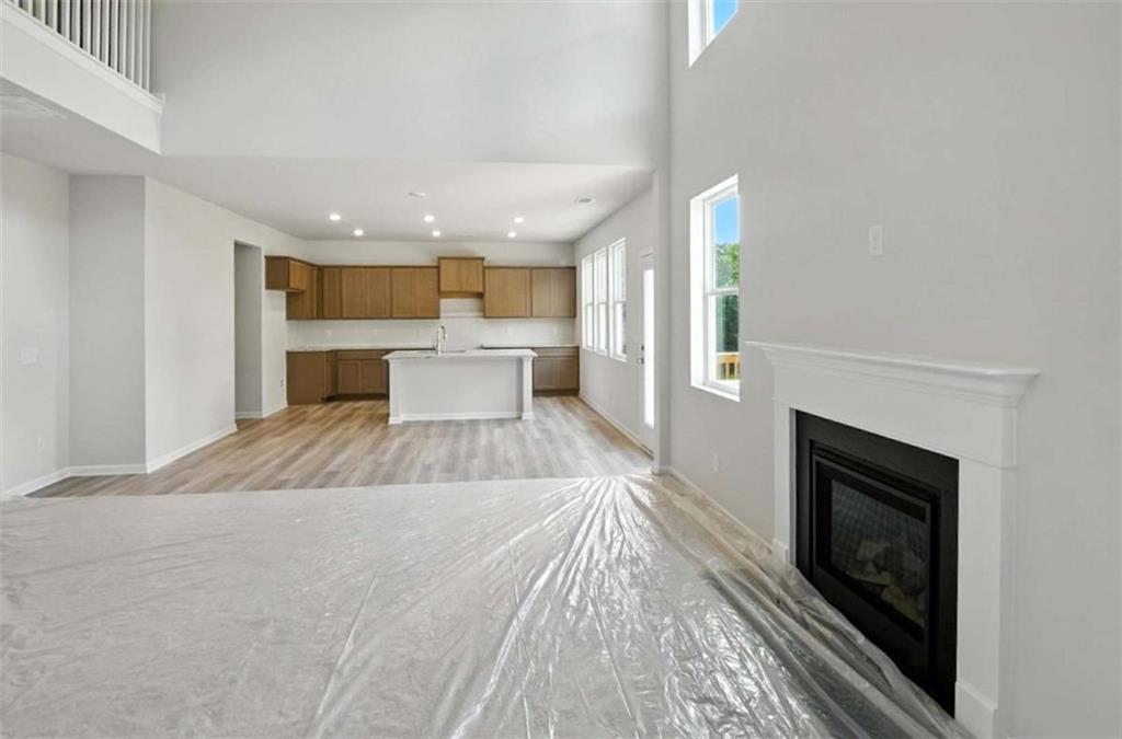 Introducing the Woodbridge Plan BSMT - A Stunning New Listing Welcome to the timeless charm of the Woodbridge Plan. From the moment you arrive, the spacious front porch invites you to relax and take in the beauty of the neighborhood surroundings. Inside, a guest bedroom on the main level is thoughtfully positioned next to a full bath-perfect for overnight visitors or extended family. A dramatic two-story foyer sets the tone, gracefully opening to formal living and dining spaces, enhanced by an elegant upgraded chandelier. The chef's kitchen combines beauty with function, featuring a central island crowned with a striking granite countertop, a deep single-basin sink, and ample seating for casual dining. Rich 36-inch Fawn cabinetry is tastefully paired with the stone accents of the countertop, creating a warm yet refined atmosphere. The family room is a showpiece, highlighted by an 18-foot vaulted ceiling, a sleek slate fireplace, and wood open railings that extend to the second-floor catwalk-lending both openness and architectural sophistication. Upstairs, convenience meets luxury with a centrally located laundry room adjacent to the owner's suite. The owner's retreat offers a private sitting area and a spa-inspired bath with dual vanities, a spacious tile shower framed by a half wall and glass enclosure, and a generous walk-in closet. A raised-height vanity and linen closet in the hall bath provide thoughtful comfort for the additional bedrooms. Blending elegance, comfort, and thoughtful design, the Woodbridge Plan is more than a home-it's a lifestyle.