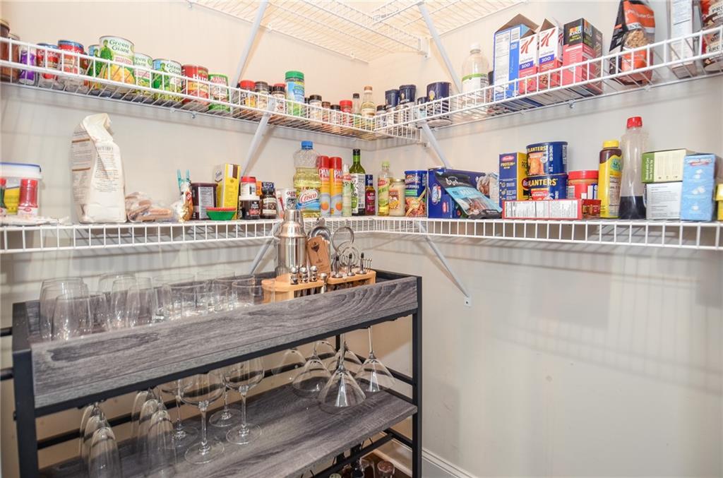 - KitchenCabinets White, Eat-in Kitchen, Kitchen Island, Pantry, Pantry Walk-In, Stone Counters, View to Family Room
