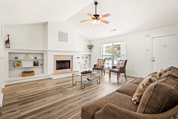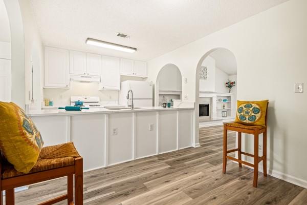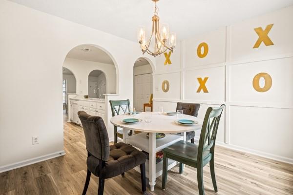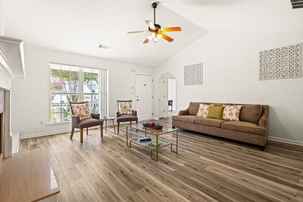 Charming ranch-style home with 3 bedrooms, 2 full baths and an inviting front porch! High ceilings and arched doorways enhance the spacious fireside family room, complete with built-in bookcases. The bright white kitchen is a dream for any home chef and opens beautifully to the living area. Relax in the large primary suite featuring a tray ceiling and walk-in closet. Step outside to a patio overlooking the level backyard — perfect for outdoor enjoyment!