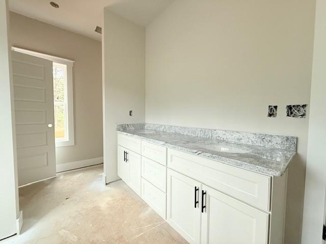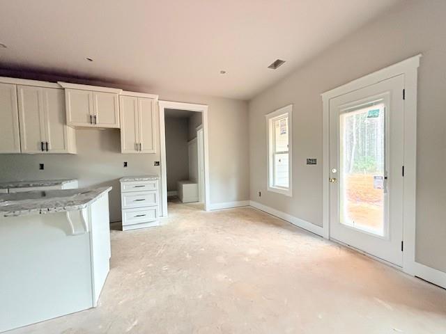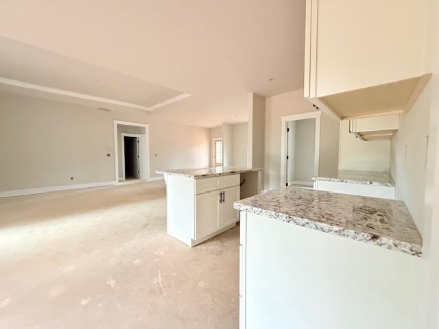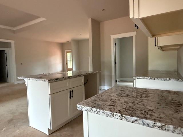 - KitchenBreakfast Bar, Cabinets White, Pantry Walk-In, Solid Surface Counters, View to Family Room