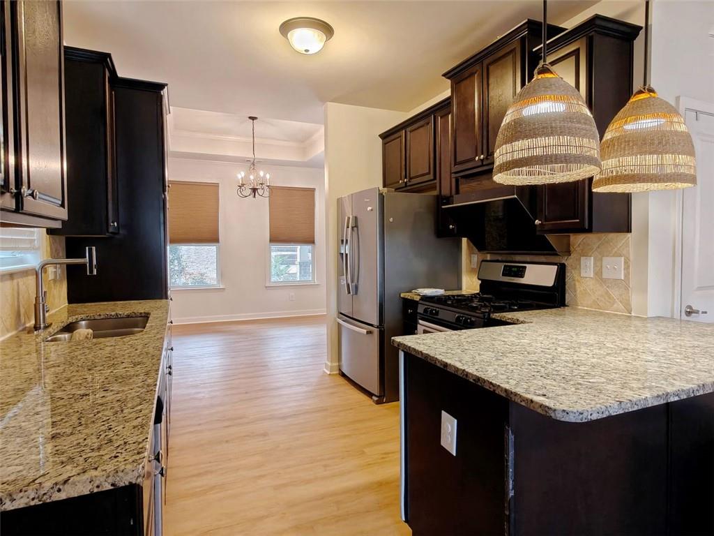Location! Location! Desired North Gwinnett school district near the heat of downtown Suwanee. This amazing 3 bedroom 3 1/2 bath home offers everything if you are looking for move in ready. The owners have installed all new laminate waterproof flooring throughout the home, and it is has a freshly painted interior so nothing for you to do but move in. As you enter from the amazing rocking chair front porch the home opens up to a bright formal dining room with crown molding and upgraded trim. This opens into your chefs kitchen with granite counters, stained cabinetry, vented hood, tumbled stone backsplash, and all stainless appliances, including the fridge that stays with the home. The kitchen ajoins the great room with a cozy fireplace for those chilly evenings. There are 2 primary bedrooms one up and one down. The baths feature beautiful tile, with granite counters, double sinks and large walk-in closets. The 3rd bedroom has its own private bath perfect for guests or an older child. The back patio off the upper primary bedroom is covered and is perfect for relaxing and watching the kids play in the fenced backyard. No need to worry about yardwork as that is all included in your HOA fees along with community pool, trash and tennis. The home has so many other features which include the walkability to Suwanee Town Center, Playtown Suwanee Park, eateries, shopping, outdoor concerts, festivals, plus much more and its a short 8 min walk from your home. Schedule your appointment to see this home while it lasts.