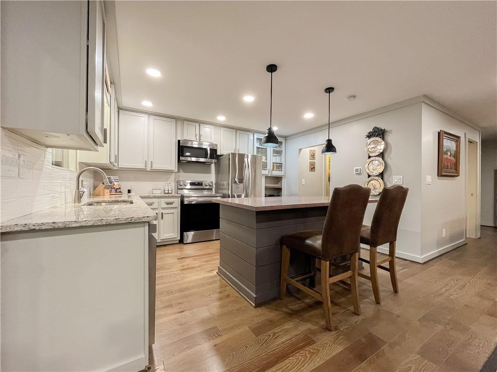 - KitchenBreakfast Bar, Cabinets Other, Kitchen Island, Other Surface Counters, Solid Surface Counters, View to Family Room