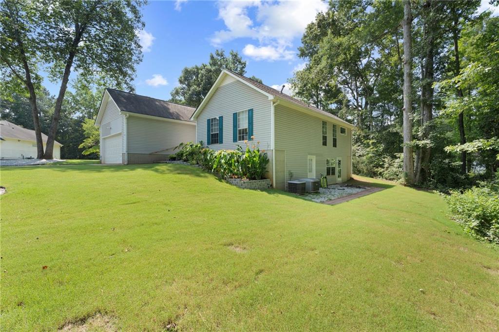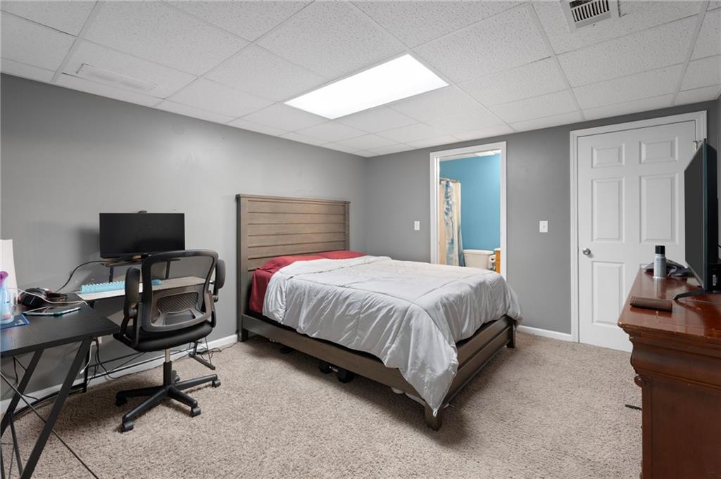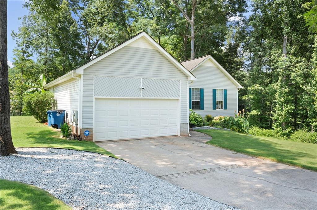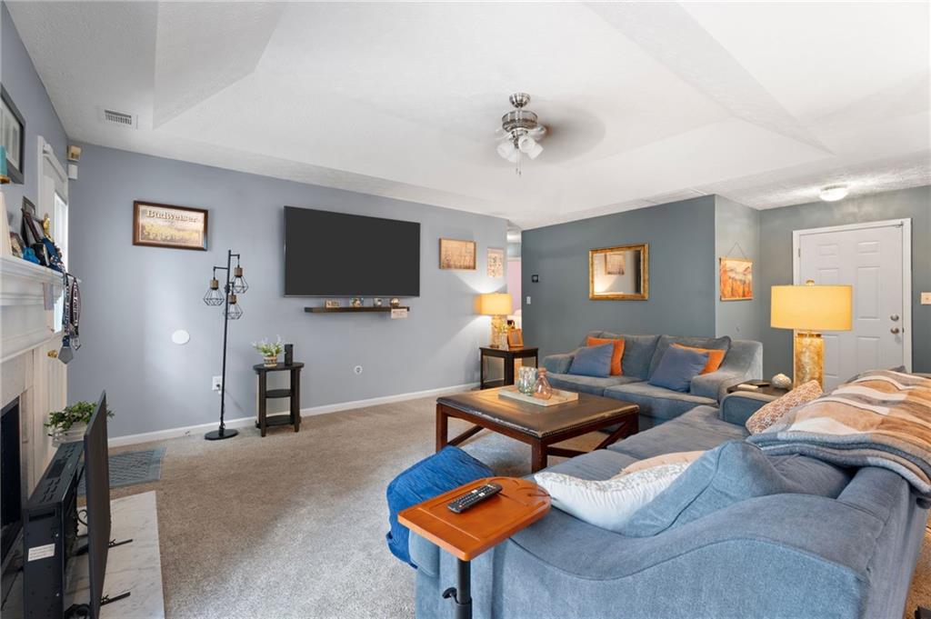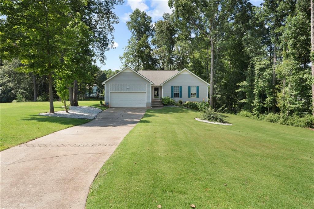 Step into this charming, well-maintained ranch-style home with a spacious two-car garage, perfectly situated on a quiet cul-de-sac with both privacy and streetlights. The welcoming foyer leads into a cozy fireside family room with elegant tray ceilings, seamlessly connected to a bright eat-in kitchen and a formal dining room. The main level offers three comfortable bedrooms, including a master suite with a tray ceiling, walk-in closet, and a private bath featuring a relaxing garden tub and separate shower. A second full bath is also conveniently located on the main floor. Downstairs, the partially finished full basement offers an inviting in-law suite complete with a living/kitchen combo (including stove and refrigerator), one bedroom, one full bath, and a private exterior entrance ideal for guests or extended family.Outdoors, enjoy nearly three-quarters of an acre of lush, sodded Bermuda lawn framed by mature hardwood trees. A double-deck patio provides the perfect space for relaxing, entertaining, or gardening. Recent upgrades include new HVAC ductwork (2024), two AC units (main level and basement), a high-efficiency water heater (2025), upgraded plumbing fixtures, and an ADT security system (2024) with cameras, sensors, and smoke/carbon monoxide detectors-just add monitoring.
