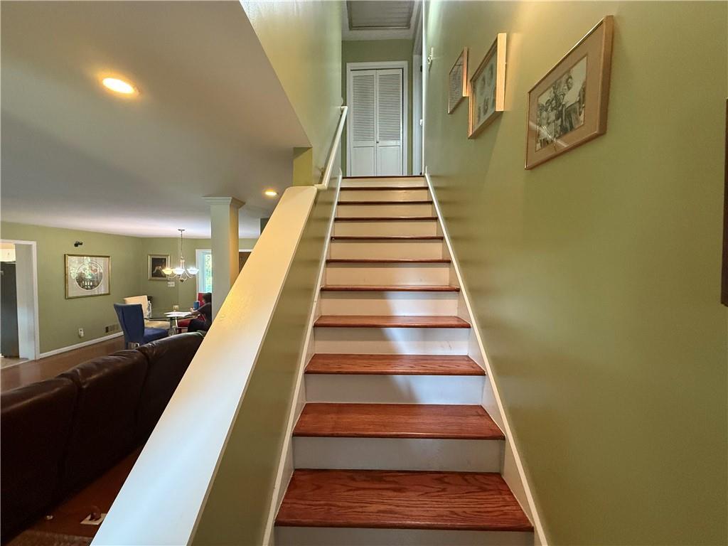 Wonderfully maintained and perfectly located, this 4 bedroom, 2.5 bathroom home sits in a highly desirable Conyers golf, swim, and tennis community. Just minutes to I-20 and Old Town Conyers shopping, dining, and festivals, the location offers both convenience and charm. Step inside to find a spacious family/great room with a beautiful fireplace that flows into the dining area. The bright kitchen features abundant natural light, white cabinetry, an island with a smooth-top electric cooktop, and easy access to the large laundry/mud room just off the kitchen. The owner’s suite is located on the main floor and includes a spa-like en suite with double vanities and a wonderful tiled shower. Upstairs, you’ll find luxury vinyl flooring, larger-than-average secondary bedrooms, a beautifully finished tile bathroom with a new vanity, and a versatile bonus room perfect for an exercise area, playroom, or home office. Enjoy indoor-outdoor living with a sunroom extending from the dining area and a smaller screened porch housing a recessed hot tub. A new back deck overlooks the backyard and a spacious garage/barn, providing plenty of room for storage or hobbies. Other highlights include tile bathrooms, wood flooring in main living areas, and thoughtful updates throughout. This home is move-in ready and located in one of Conyers’ most convenient and amenity-rich communities—perfect for relaxing or entertaining!