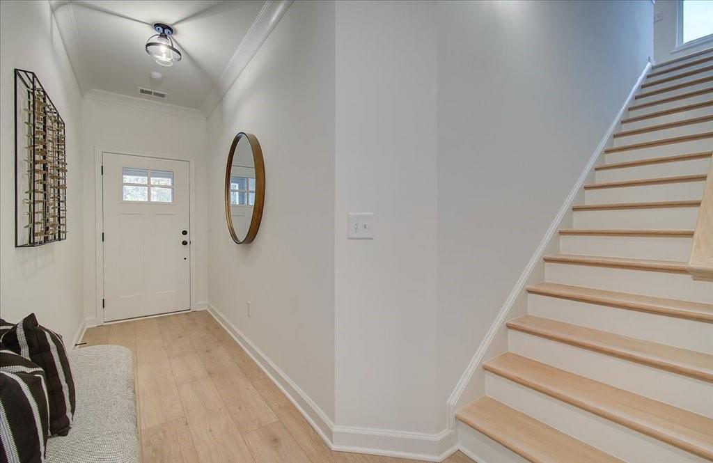 - FeaturesCrown Molding, Disappearing Attic Stairs, Double Vanity, Entrance Foyer, High Ceilings 9 ft Main, Walk-In Closet(s)