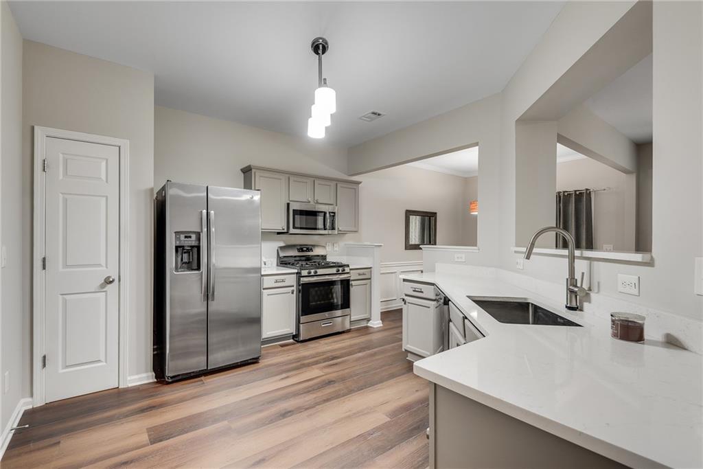 MOTIVATED SELLER! Bring your clients and bring your offers to this beautiful, renovated townhome close to all things Kennesaw. This home has been thoughtfully maintained and recently updated: new LVP hardwoods throughout, new carpet in the bedrooms, and new paint through the entire home. Even better: NEW roof as of 2020, NEW water heater in 2019, and NEW HVAC as 2023, making this a reliable home to settle into! And a beautiful one at that: multiple cosmetic upgrades have been made including painted cabinetry, custom french doors, custom lighting, and granite countertops -- this home is ready for you to make it yours - without needing a single thing! With three bedrooms and two full bathrooms, this home is great for a family or a roommate plan -- especially with its proximity to KSU (5 minutes!). Investors welcome, as there is no rental restriction in this neighborhood and the Seller has had it rented for many years.