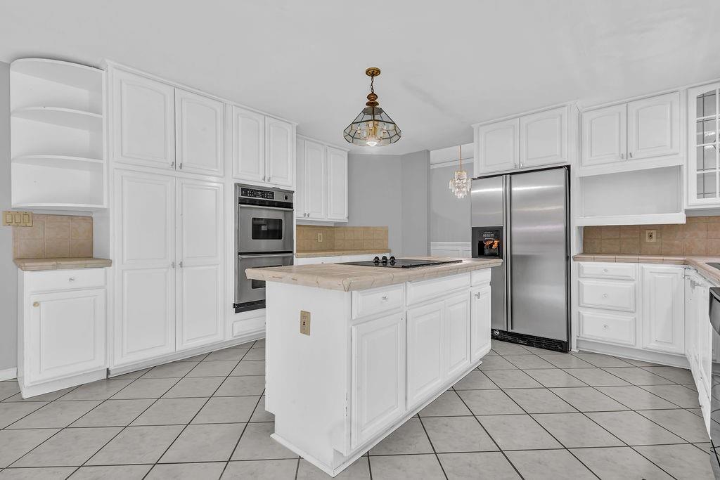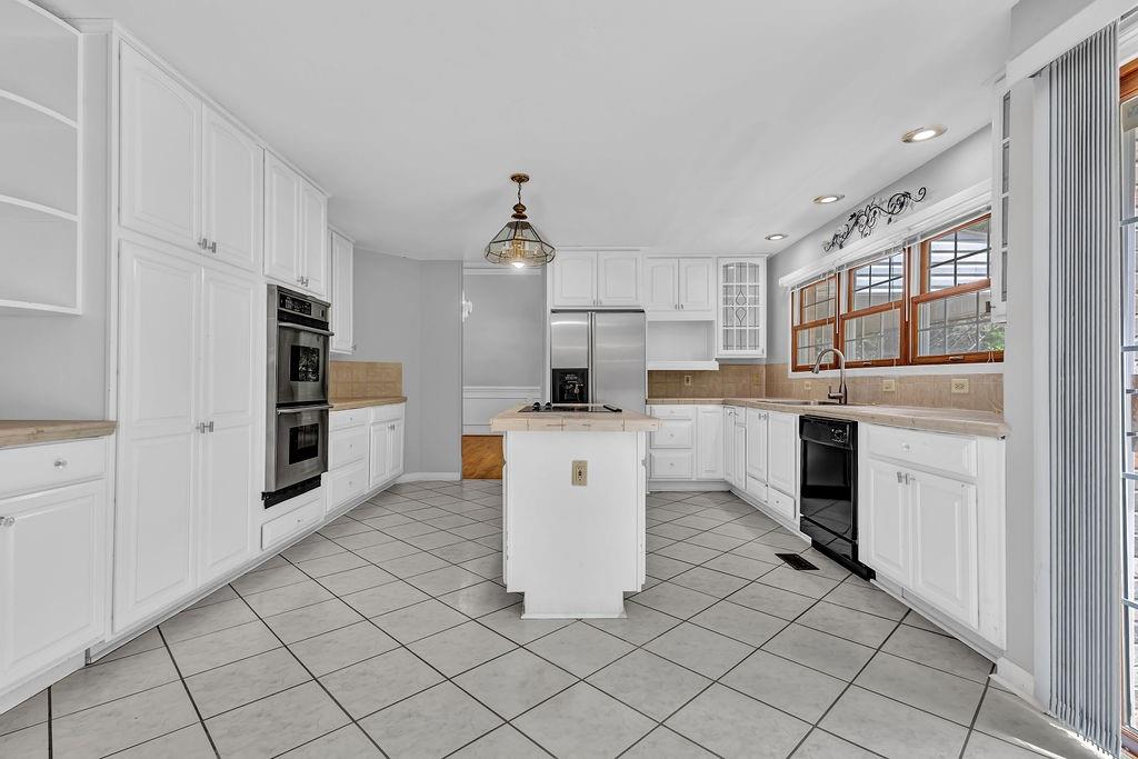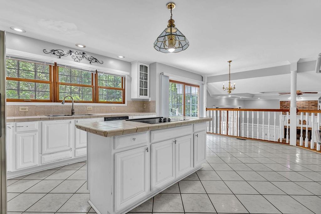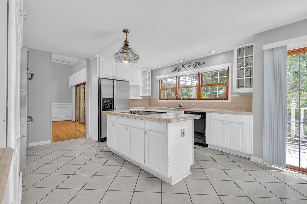 - KitchenCabinets White, Eat-in Kitchen, Kitchen Island, Other Surface Counters, Pantry, View to Family Room