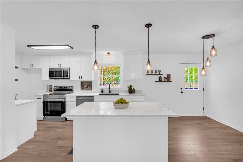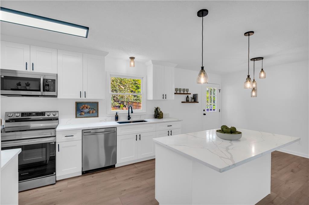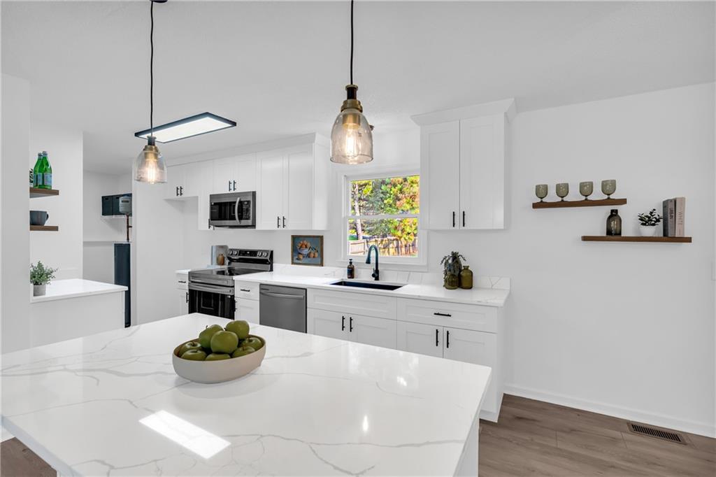 This is a home that was legitimately renovated top to bottom! The floor plan was completely opened and, in many areas, taken down to the studs. Brand new and remodeled kitchen with oversized cabinets, an expansive island, sparkling quartz counters, new appliances and fixtures. Bathrooms as well; new vanities, resurfaced tub and shower, and new plumbing and electrical fixtures. Throughout the home you'll find high quality LVP, new hardware, new lighting, and even new switches and outlets. Additionally this home has a brand-new architectural roof, new gutters, new HVAC and ducts, new water heater, new designer front and rear doors, new garage door, and resurfaced front and rear decks. The backyard is fenced with plenty of open, flat space. The water meter, main water line, PRV, and main shut off are new. This is the rare situation where "must see" really means must see. This home is move in ready, all of the heavy lifting has been completed and it's just waiting for your personal decorating touches. Find out about the many loan incentives available with this home, including first time buyer incentives, zero down loans and more. The sound you hear is opportunity knocking!