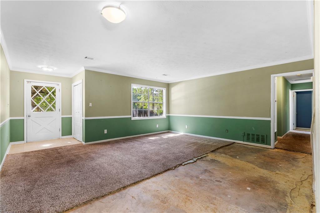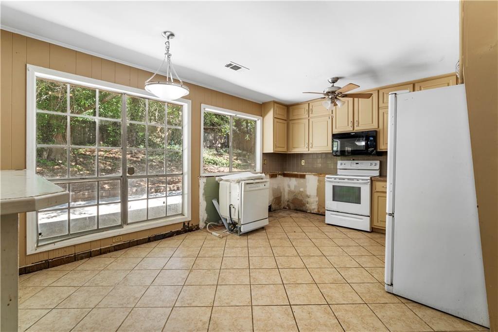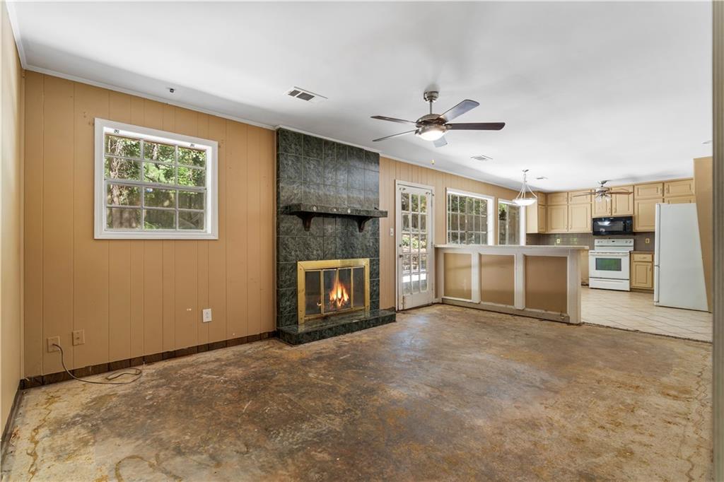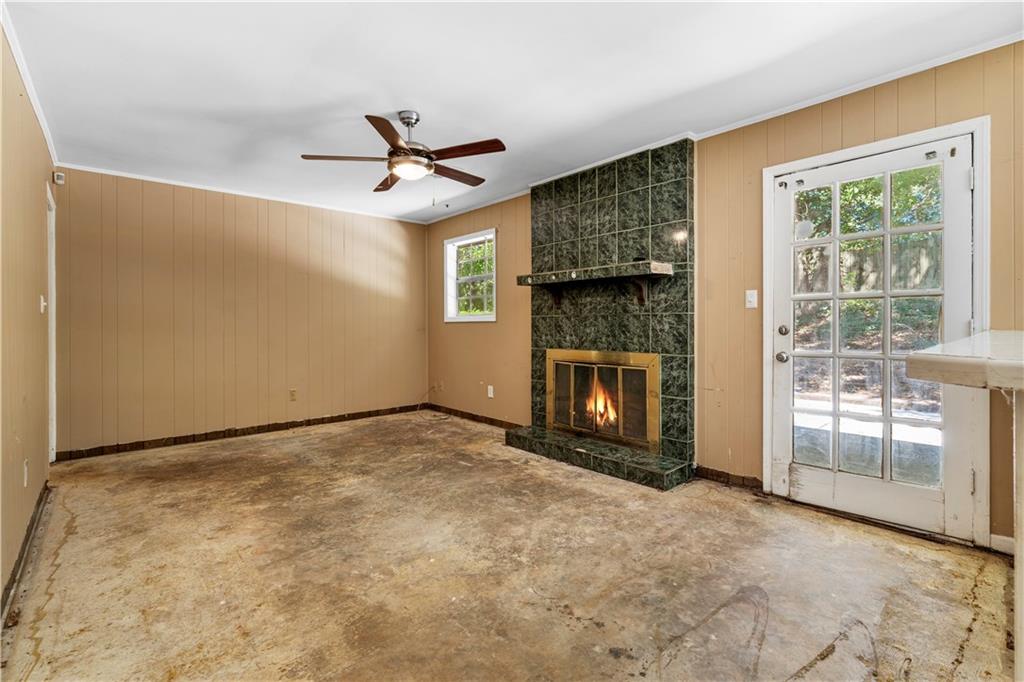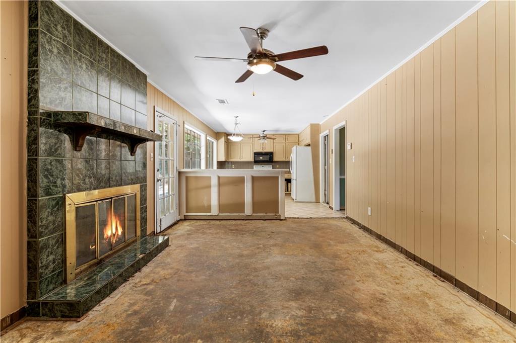 Investor opportunity in Lithonia! This 3-bed, 2-bath ranch needs some TLC but would make a great flip, rental, or home for someone willing to do a bit of work. The living area is spacious and includes both a living room and den, complete with a fireplace. The kitchen has a good footprint with potential to expand. Other highlights include a two-car garage, back patio, and wooded backyard.