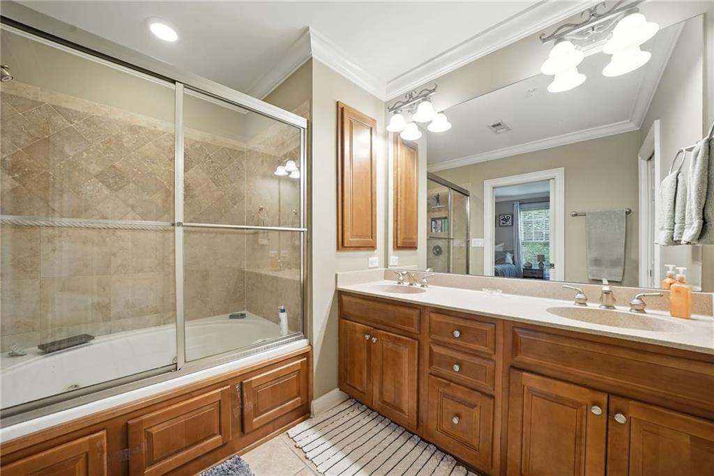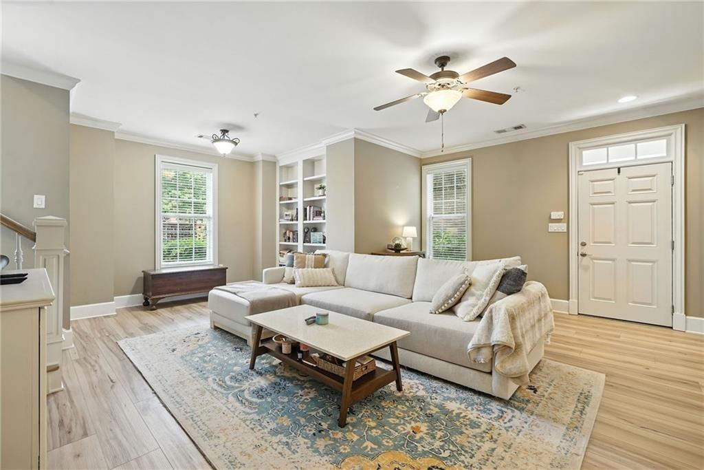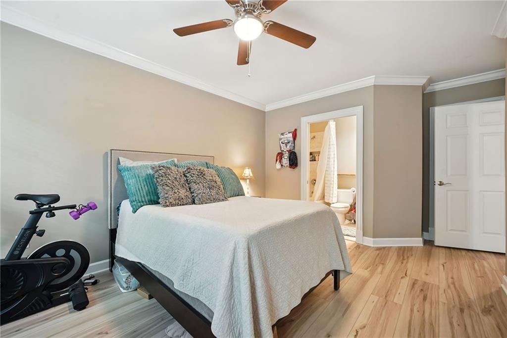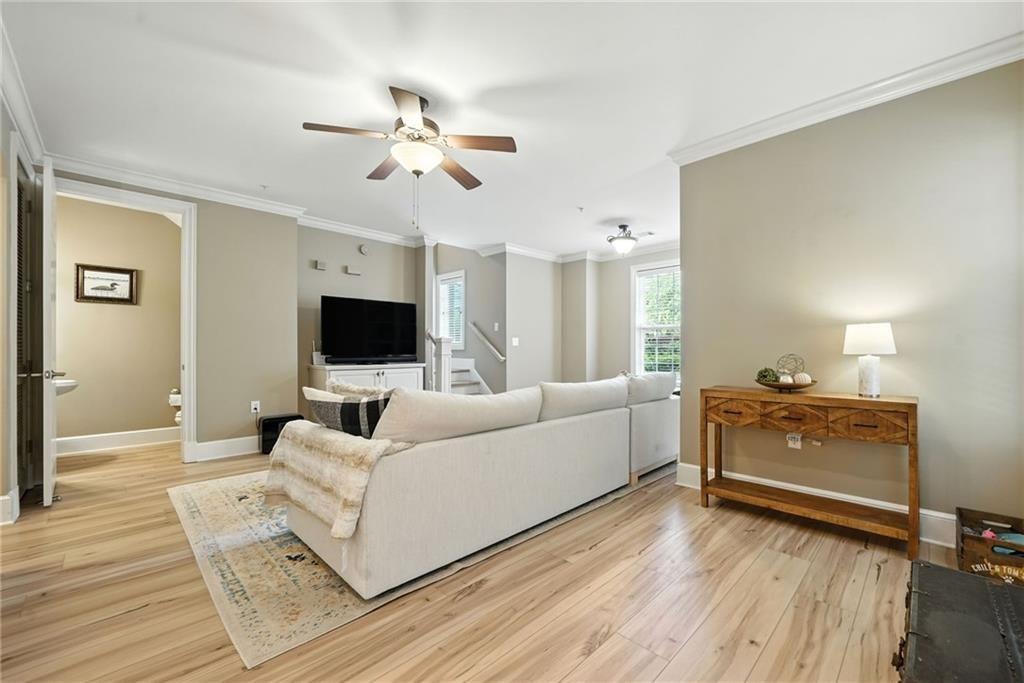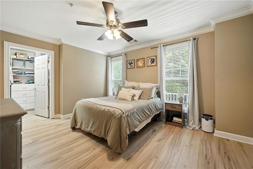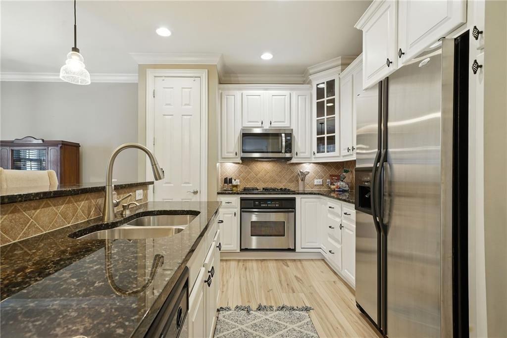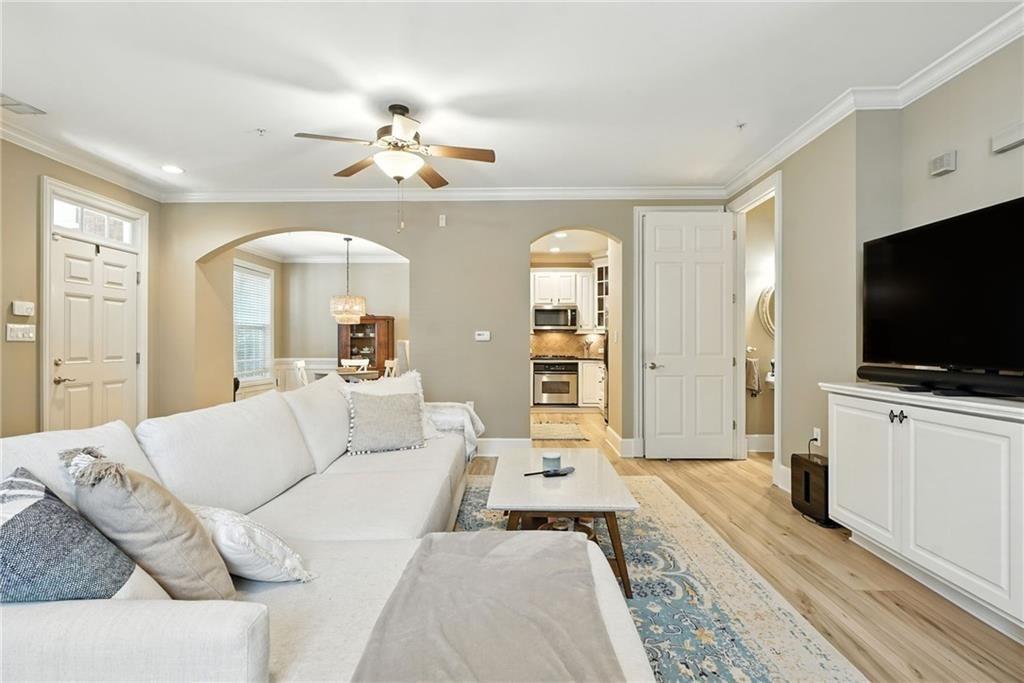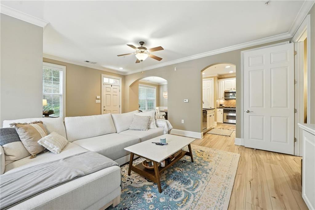 A rare opportunity to own a PRIVATE GATED COURTYARD END UNIT in one of Vinings’ most desirable communities! This Manor at Olde Ivy home features 9’ ceilings, abundant natural light, and LVP flooring throughout. The kitchen shines with a breakfast bar, freshly painted cabinets, granite countertops, and stainless steel appliances, opening seamlessly to the dining and living areas. The oversized primary suite includes a walk-in closet, double vanity, and shower/whirlpool tub combo. Secure gated garage entry provides assigned parking plus a climate-controlled storage unit. Community amenities include beautifully landscaped grounds, clubhouse, fitness center, pool, and walking trails. Ideally located near Vinings Village, The Battery, and the new Silver Comet Connector Trail. Walk to nearby restaurants or visit the Vinings Village farmers market each Thursday. The active HOA hosts socials, book club, and game nights—adding to the vibrant lifestyle.