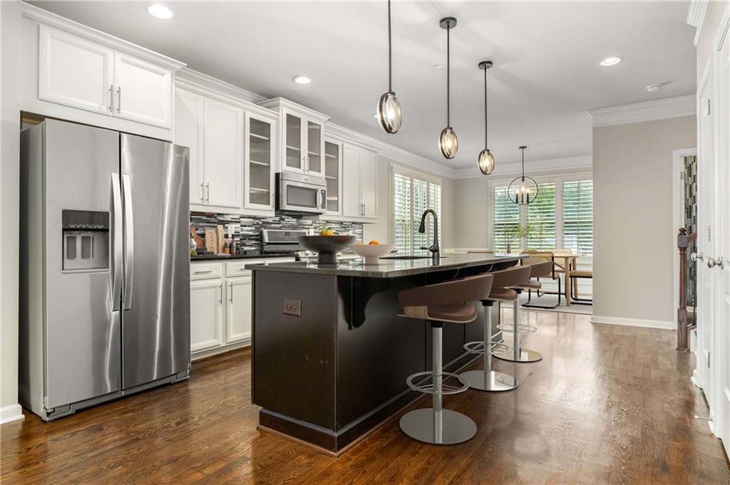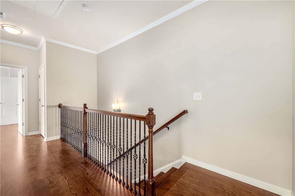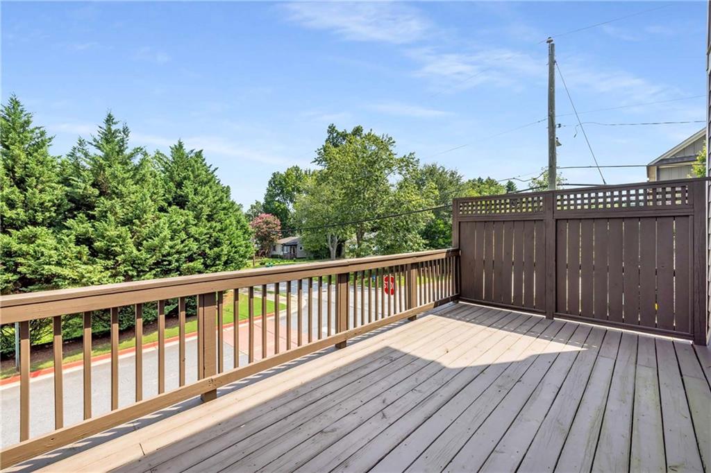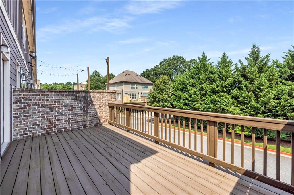 Prime Location, Luxury Finishes, and an Exceptional Floor Plan! Welcome to this stunning three-level end-unit townhouse located in the heart of Smyrna! Perfectly combining luxury, comfort, and convenience, this move-in-ready home is just steps from Downtown Smyrna, with easy access to I-75 and I-285. Featuring extensive upgrades and executive-style details, this home shines with fresh paint, gleaming hardwood floors, plantation shutters throughout, and custom closets in the Owner's Suite. An open-concept main level offers ideal space for entertaining, with a chef's kitchen featuring glass cabinet accents and a large breakfast bar, flowing into a cozy family room with a gas fireplace flanked by built-ins. Step out onto your private wood deck for a breath of fresh air or evening gatherings. The spacious Owner's Suite boasts a coffered ceiling, luxurious oversized shower with a built-in bench, and refined finishes throughout. Each secondary bedroom includes a private ensuite, and a stylish half bath is conveniently located on the main level. Additional highlights include enhanced security features, beautiful custom window treatments, and sidewalk access to Smyrna Village shops, dining, and the Farmer's Market. Plus, you're just 2.5 miles from The Battery and Truist Park! Please note some of the listing pictures have been virtually staged.
